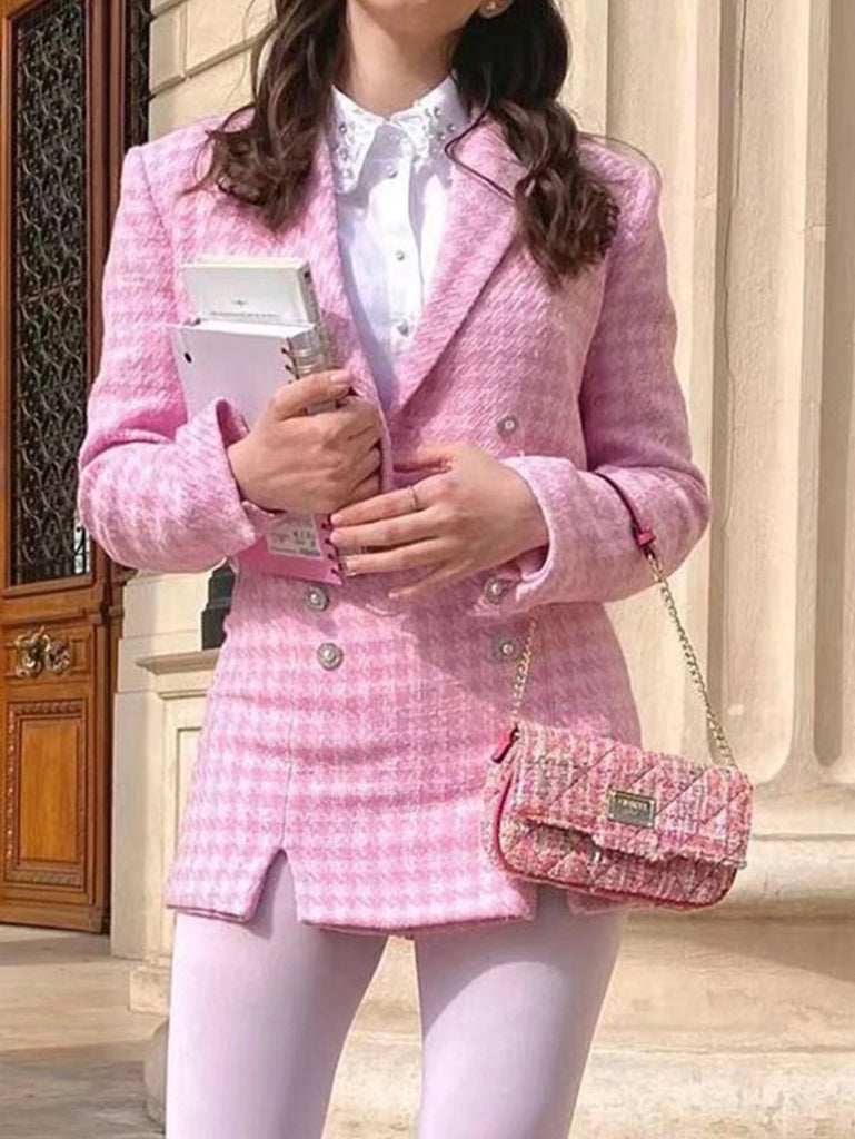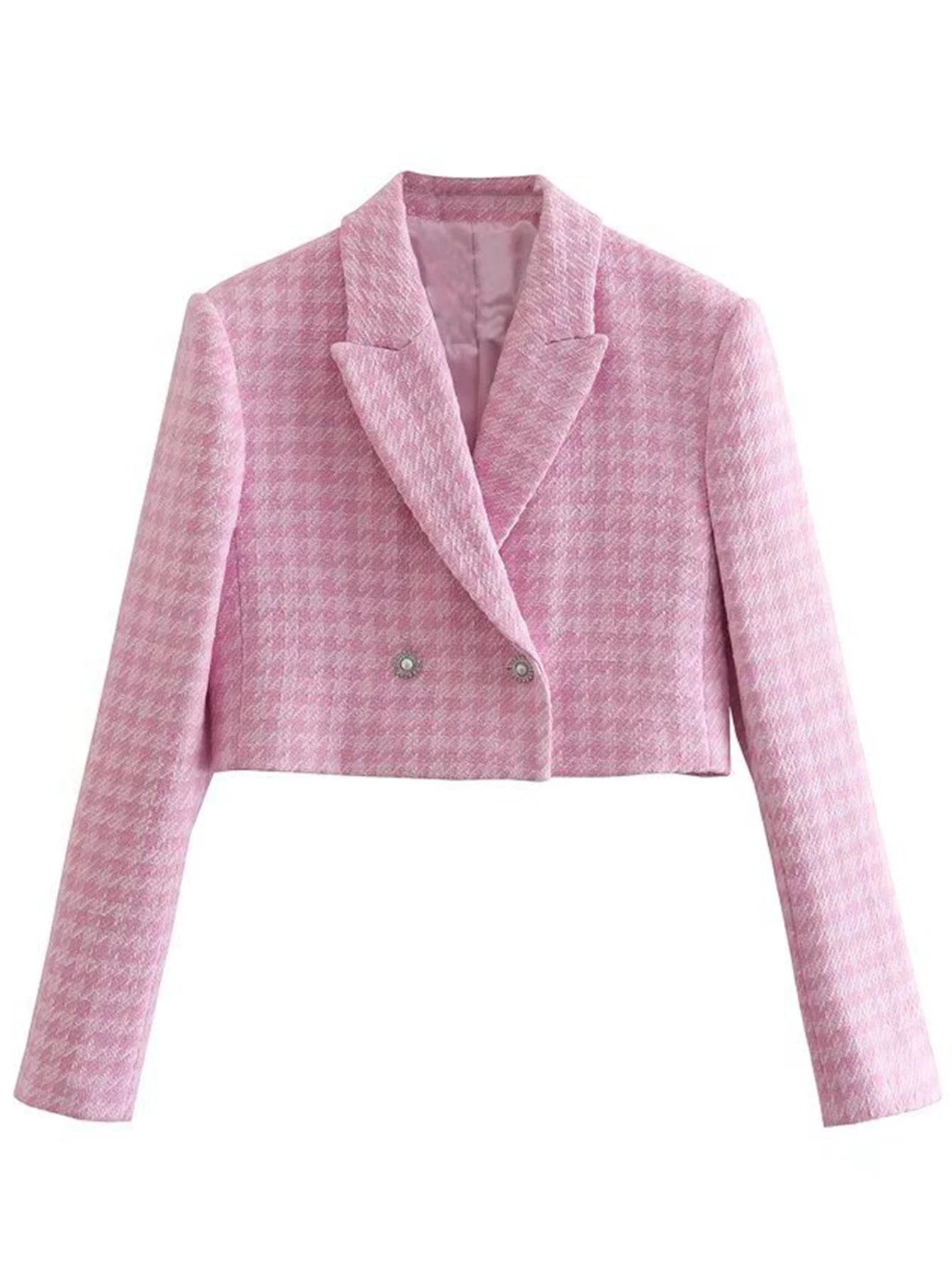 Purpdrank Autumn Women's Blazers Basics Cute Solid Color Double Breasted Cropped Long Sleeve Lapel Daily Blazers