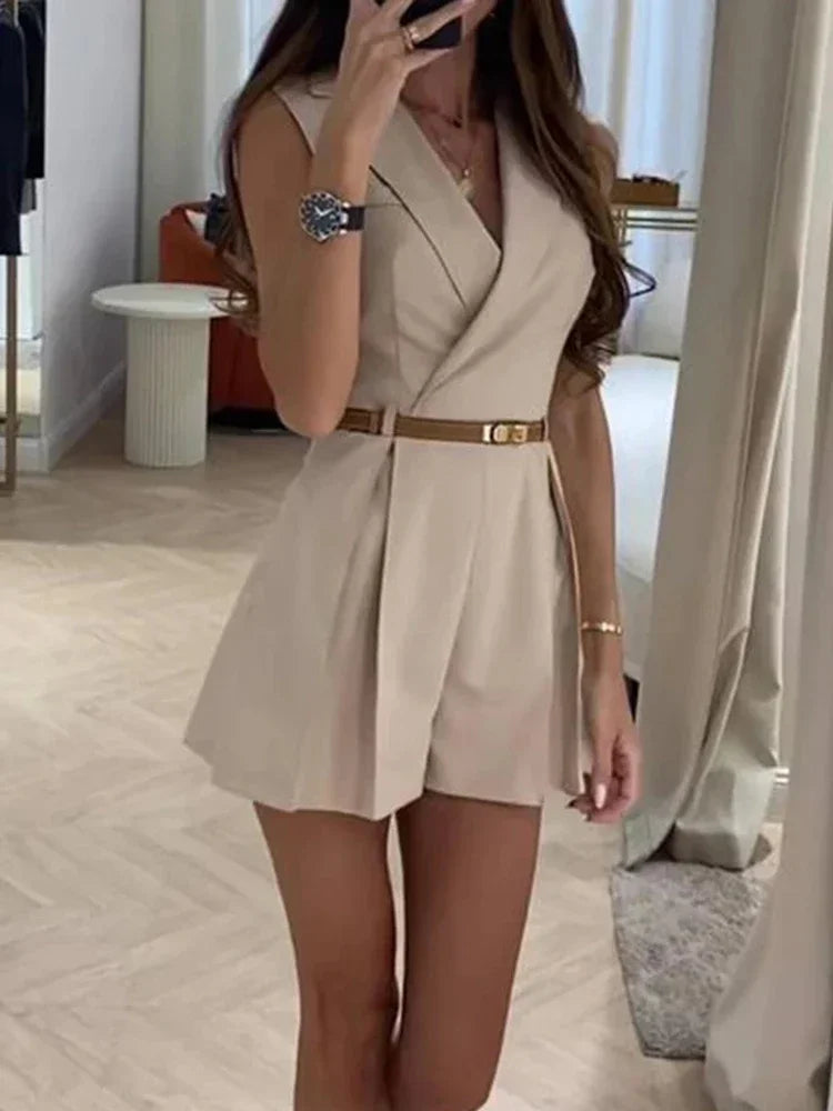 Purpdrank Elegant Lady Turn-Down Collar Blazer Jumpsuit Summer Casual Solid Waist Shorts Romper Slim Playsuits Fashion Women's Jumpsuit