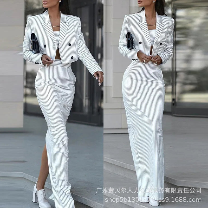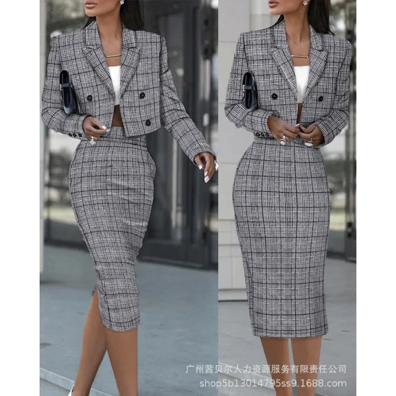 Purpdrank Elegant Women's Plaid Two-Piece Skirt Set with Long Sleeve Lapel Blazer And Tight Skirt Lady Tracksuit for 2025