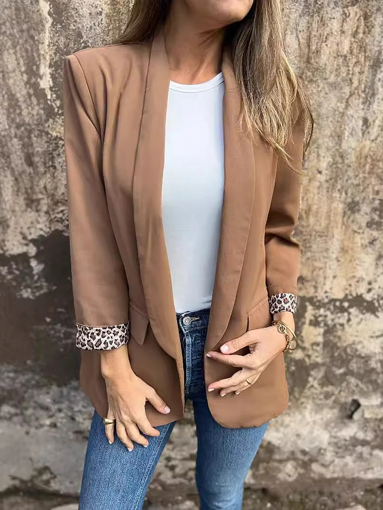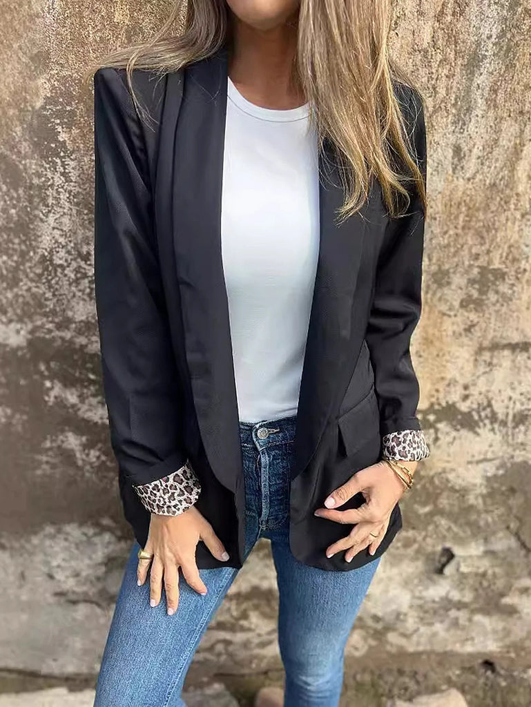 Purpdrank Women's Autumn Winter 2025 Blazers Daily Basic Solid Color Long Sleeve Trim Print Lapel Regular Fit Blazers