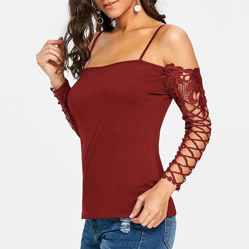 | Summer Women Lace Patchwork Bandage Hollow Long Sleeve T-shirts Casual Women Blouse Slim Tops | ||||