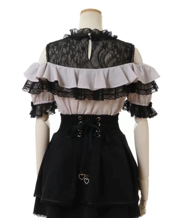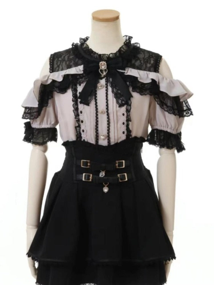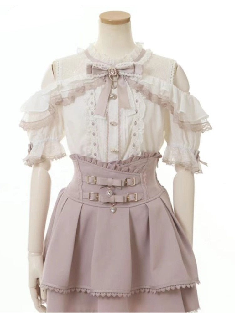 Purpdrank - Japanese Style Kawaii Cute Ruffled Blouse and Shirt 2023 Summer New Sweet Slimming Lace Off-Shoulder Tops Ladies Blusa Feminina