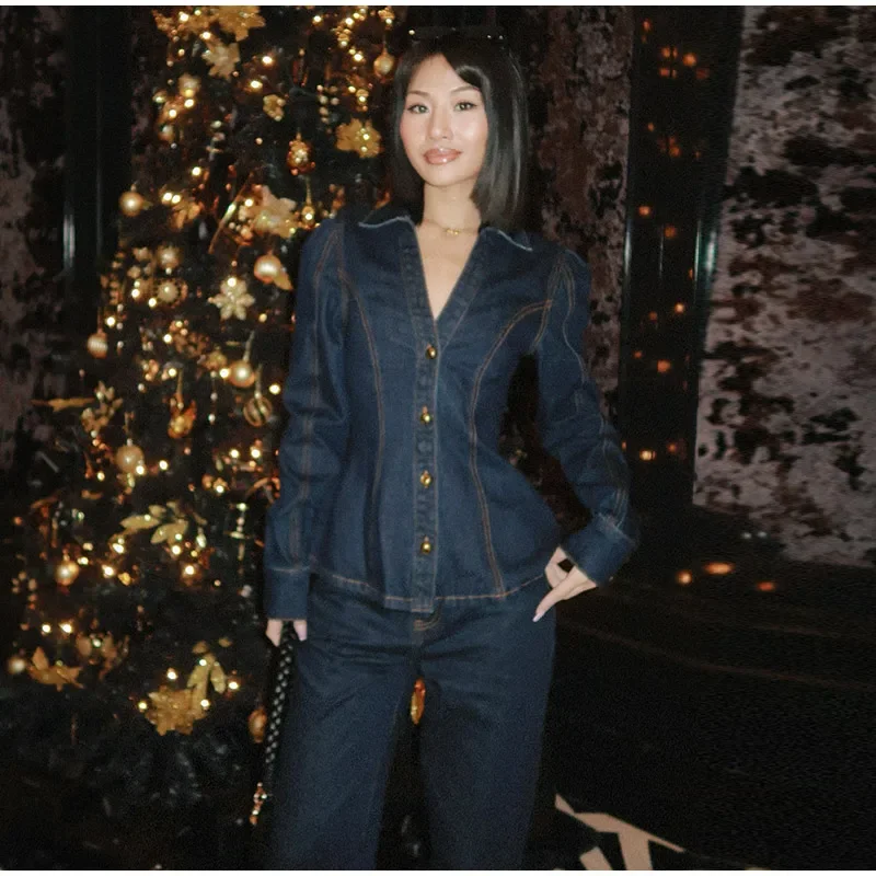 Purpdrank Fashion Turn Down Jeans Shirts Jacket For Women Retro Denim Chic Long Sleeve Single Breasted Blouse Female Street Lady Chic Tops