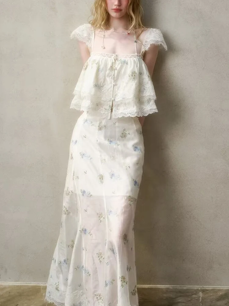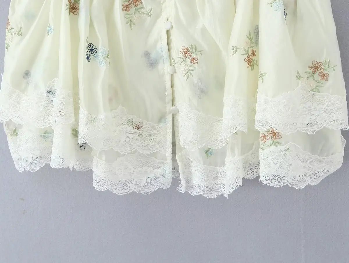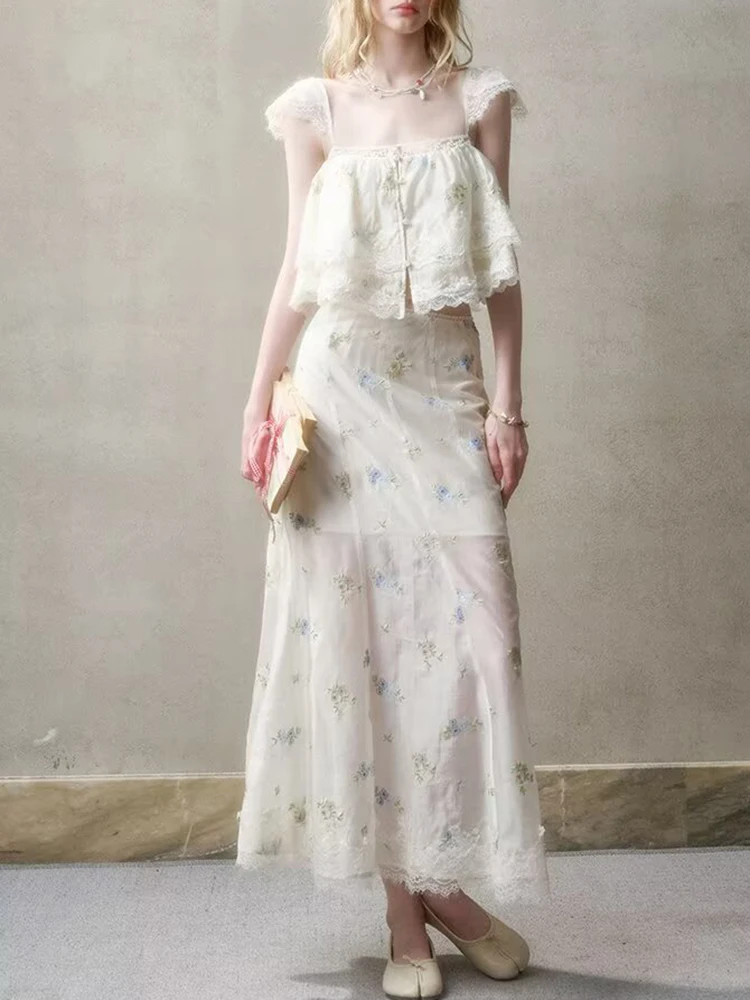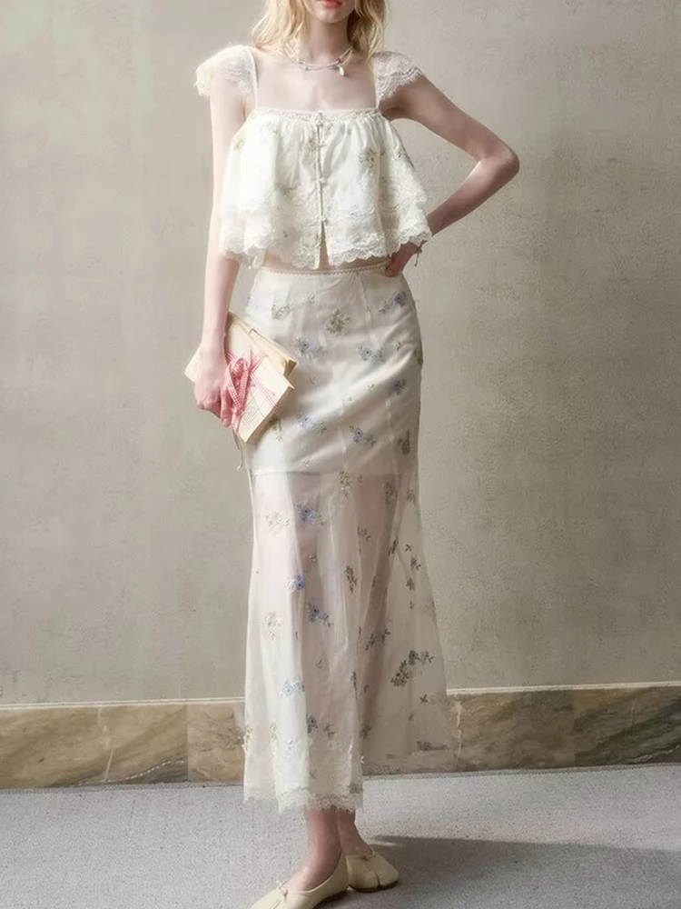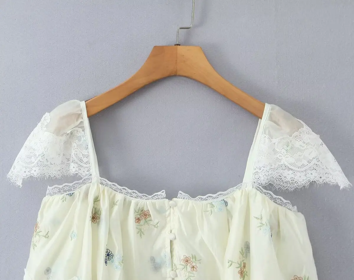 Purpdrank French Style Floral Embroidery Cropped Blouse Shirt Women Beige Lace Lyocell Summer Vocation Casual Sexy Ladies Y2K Tops New