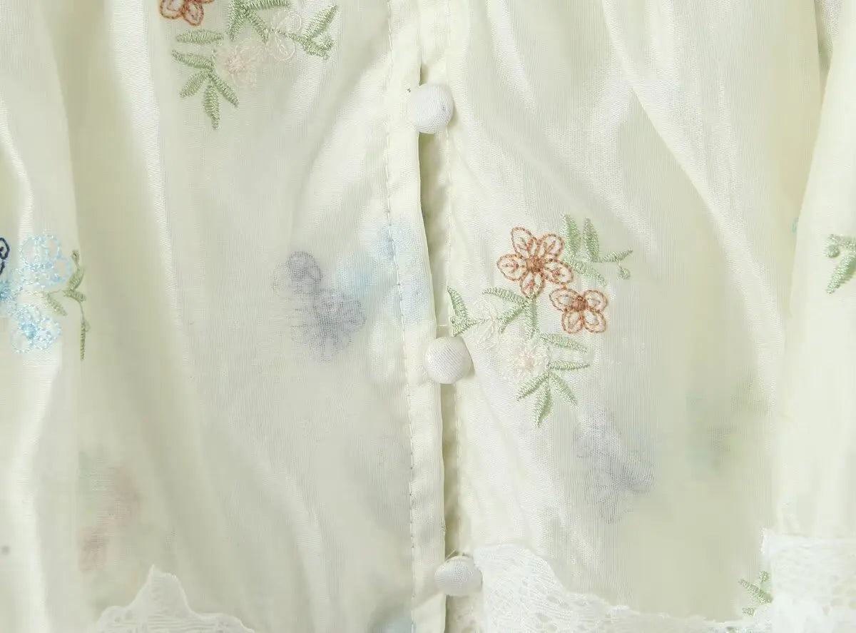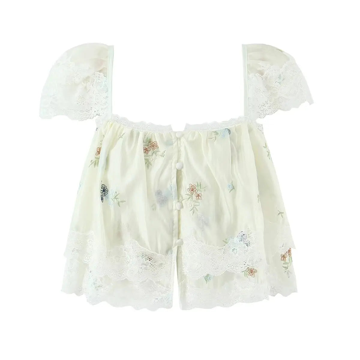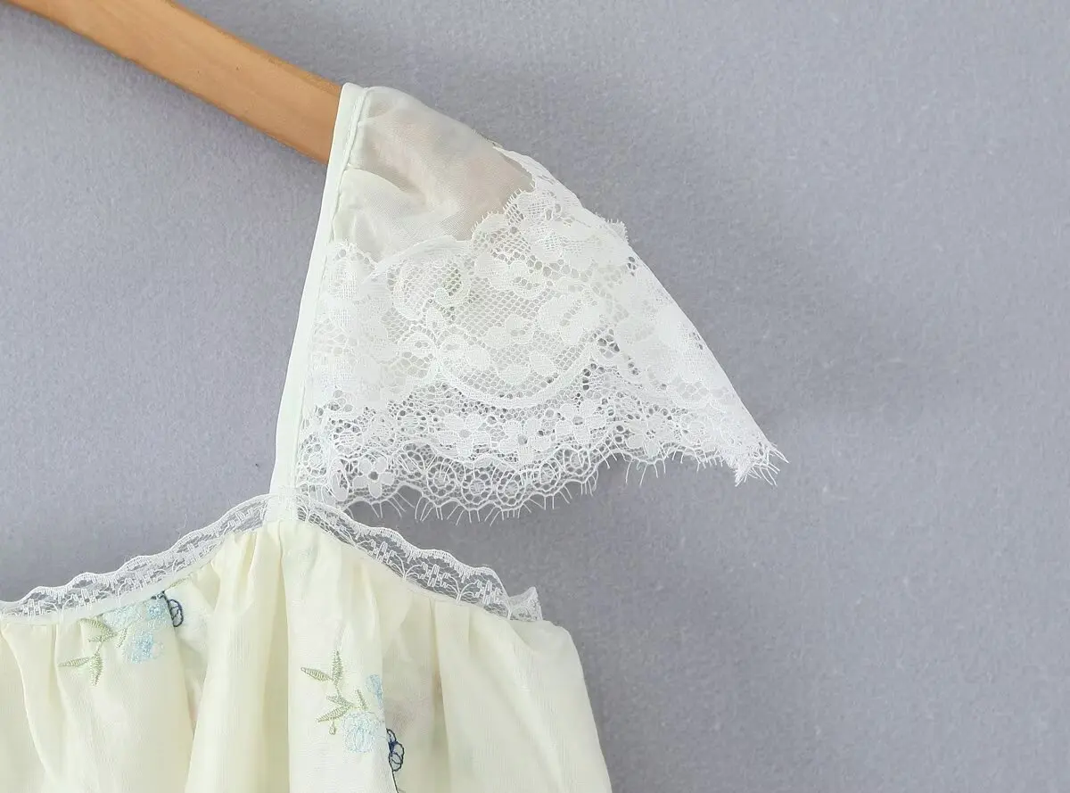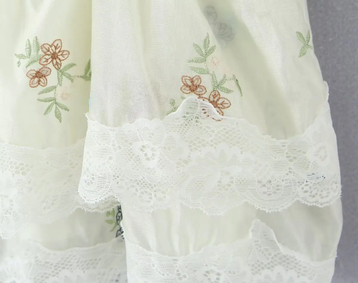 Purpdrank French Style Floral Embroidery Cropped Blouse Shirt Women Beige Lace Lyocell Summer Vocation Casual Sexy Ladies Y2K Tops New