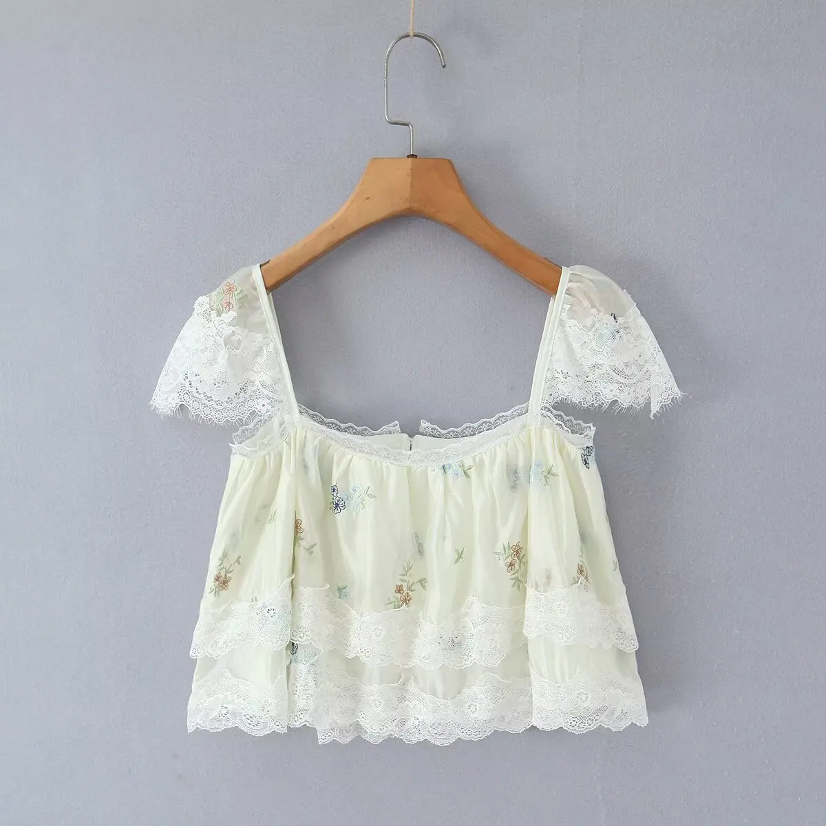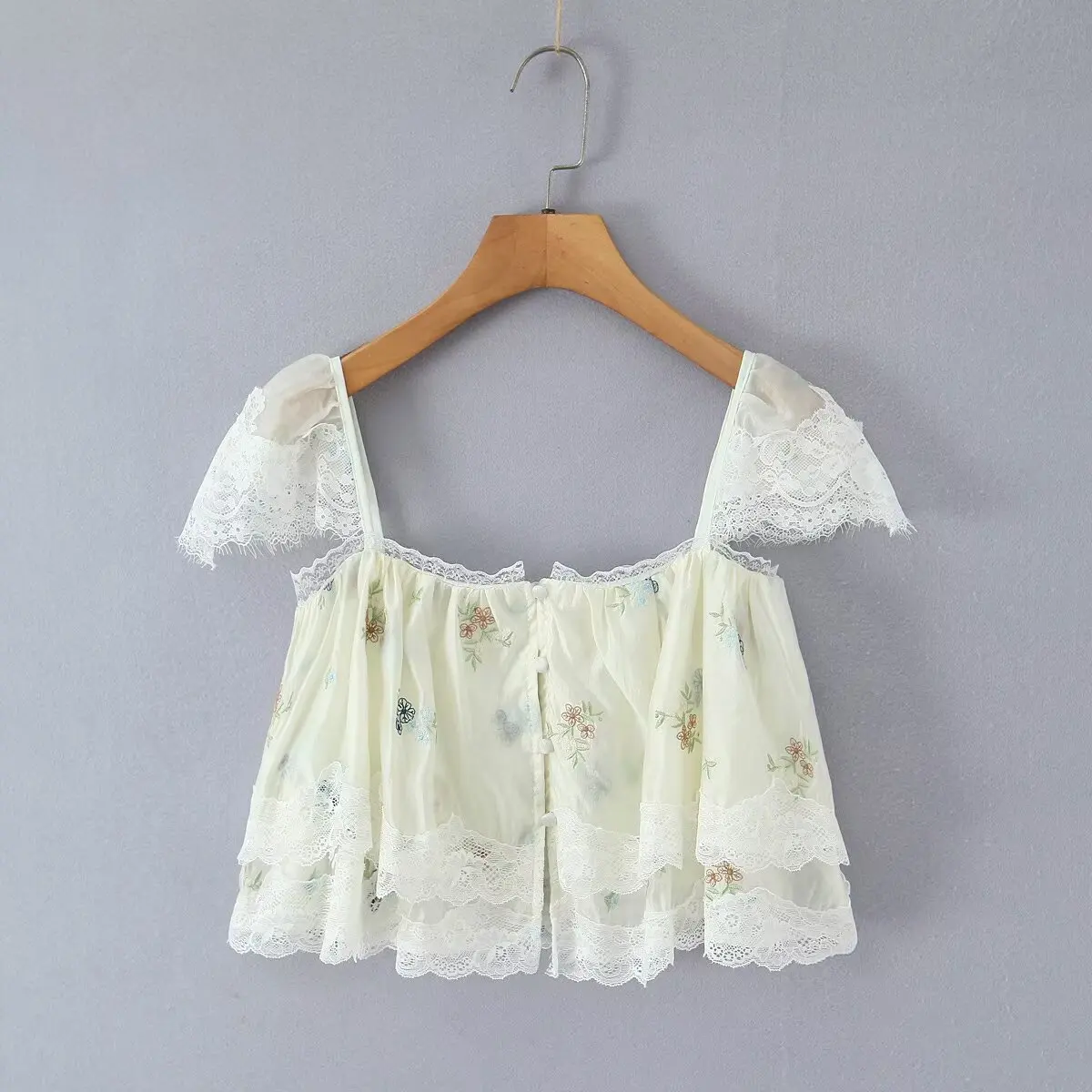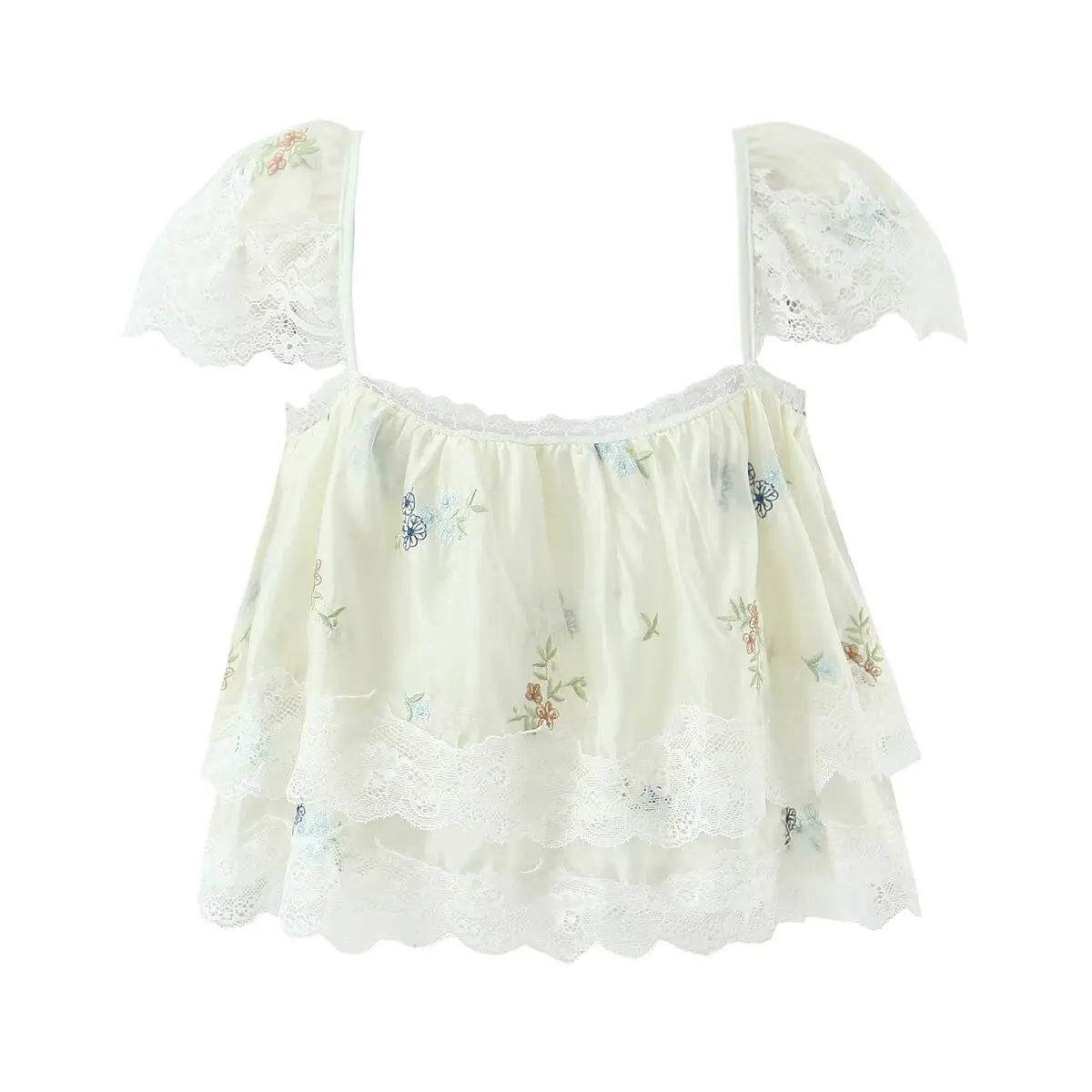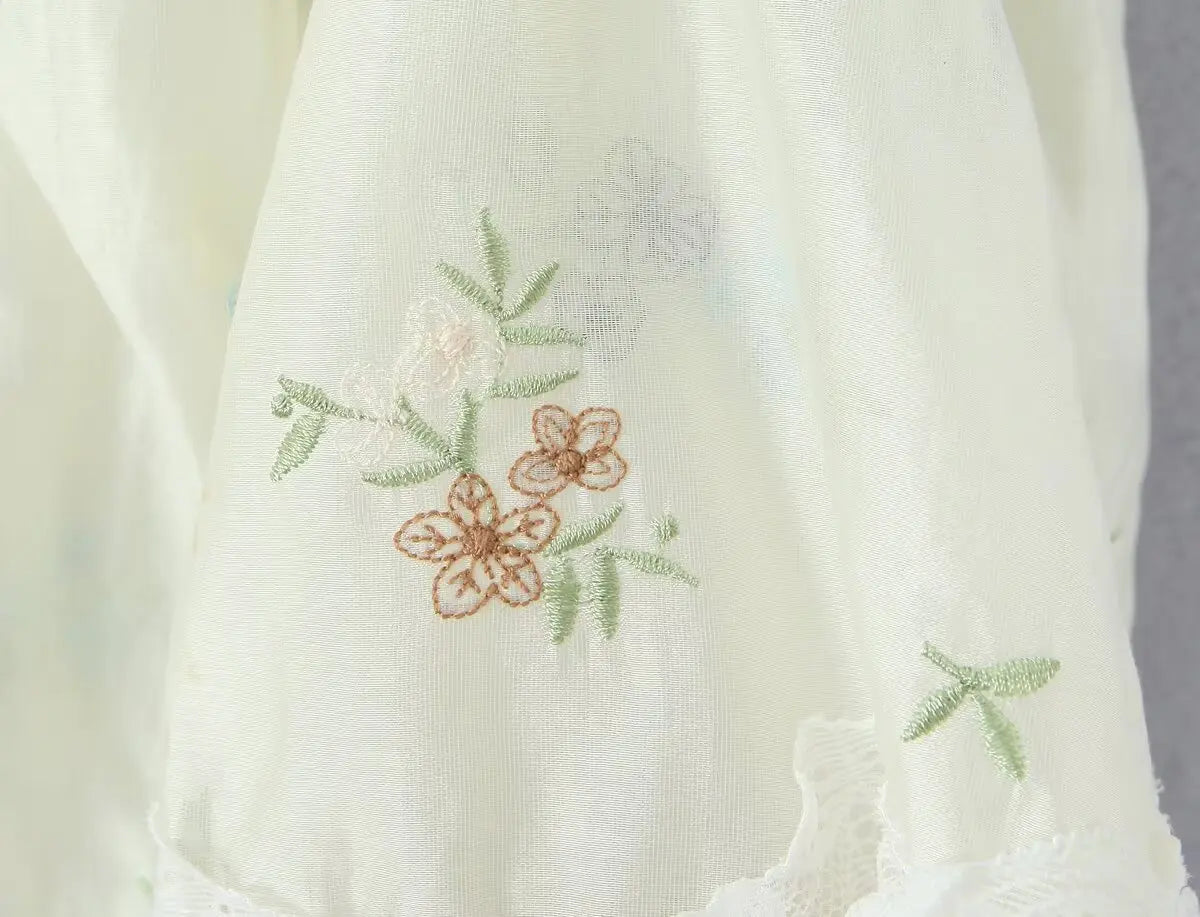 Purpdrank French Style Floral Embroidery Cropped Blouse Shirt Women Beige Lace Lyocell Summer Vocation Casual Sexy Ladies Y2K Tops New