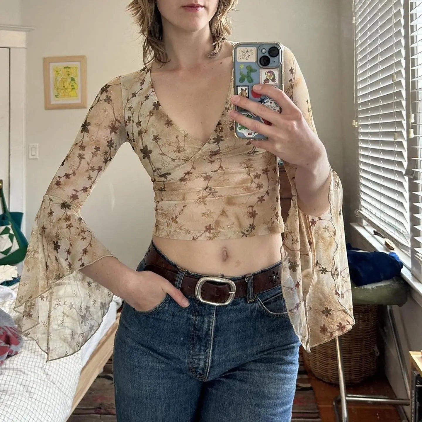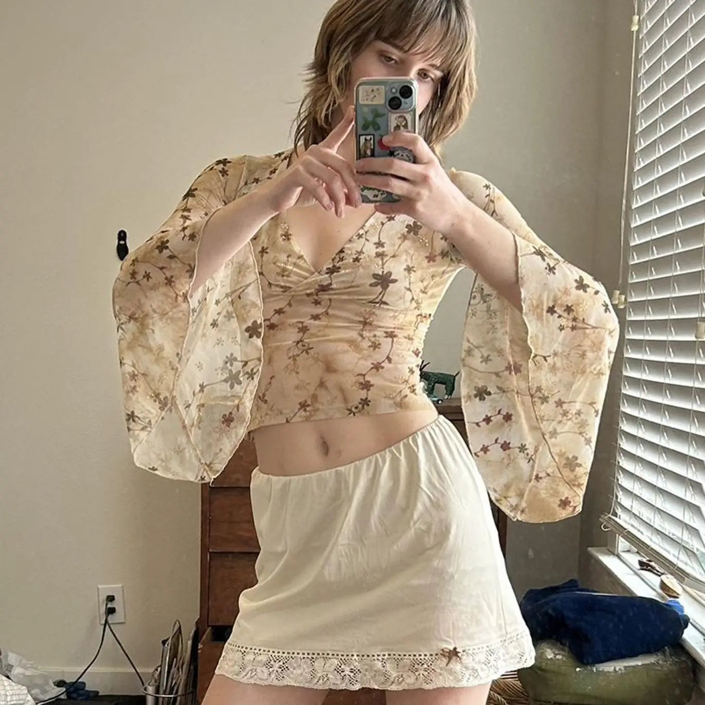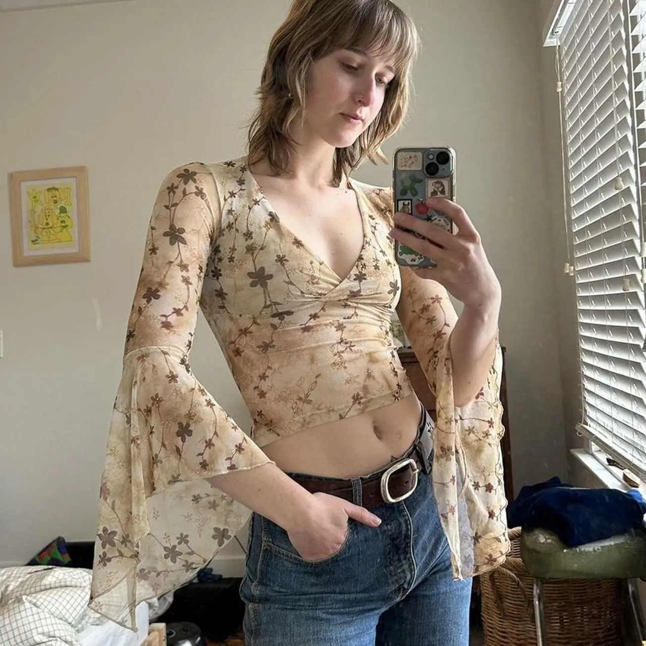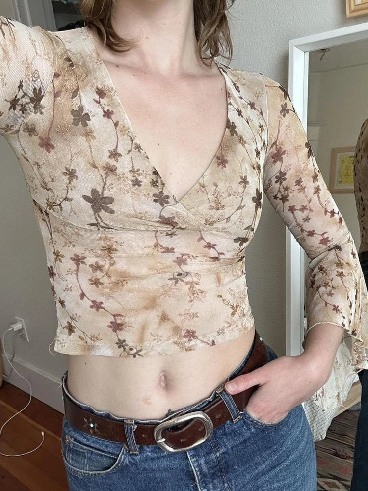 Purpdrank French Style Y2k Vintage Summer V Neck Three Quarter Sleeve Flower Print Slim Women Blouse
