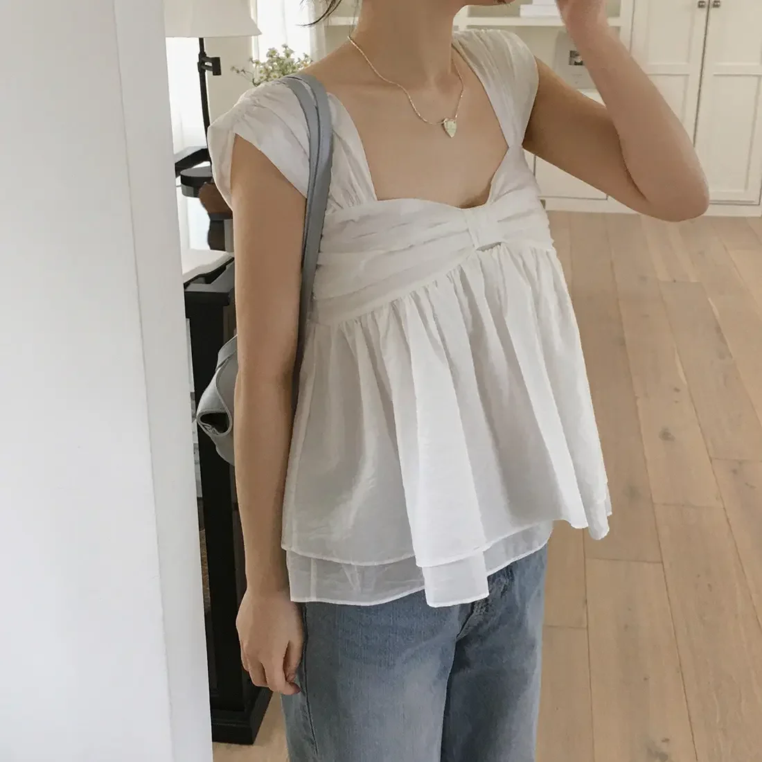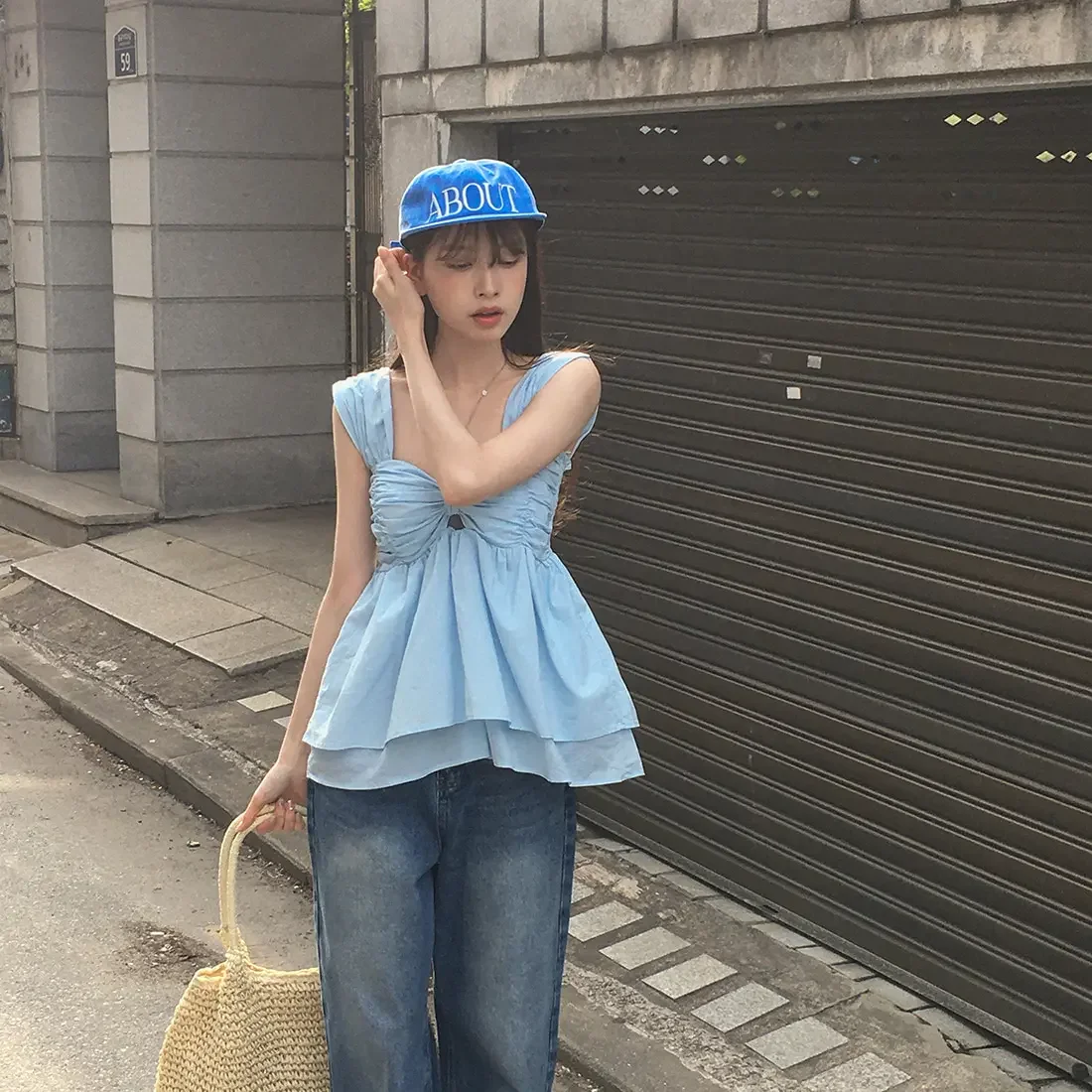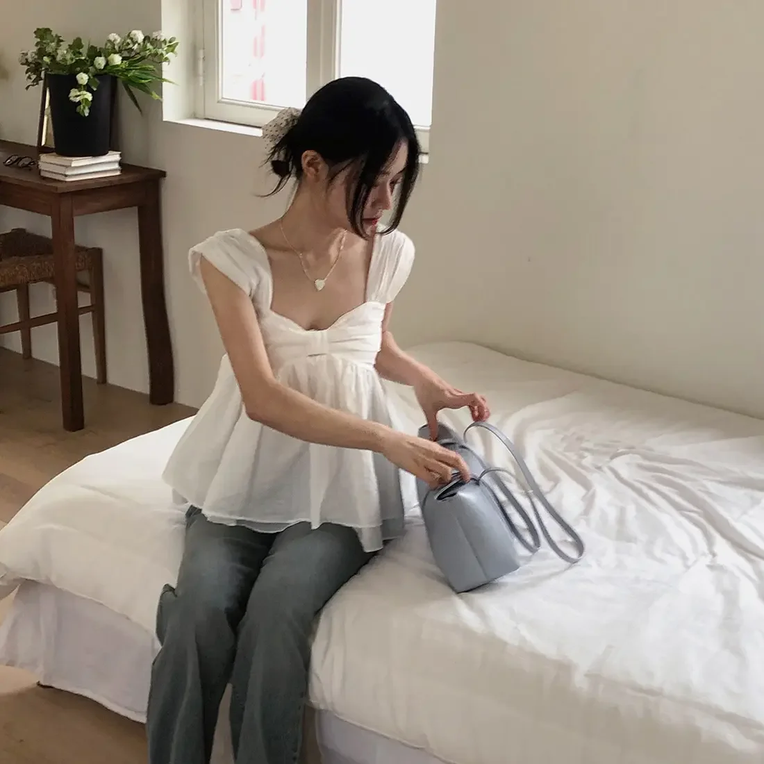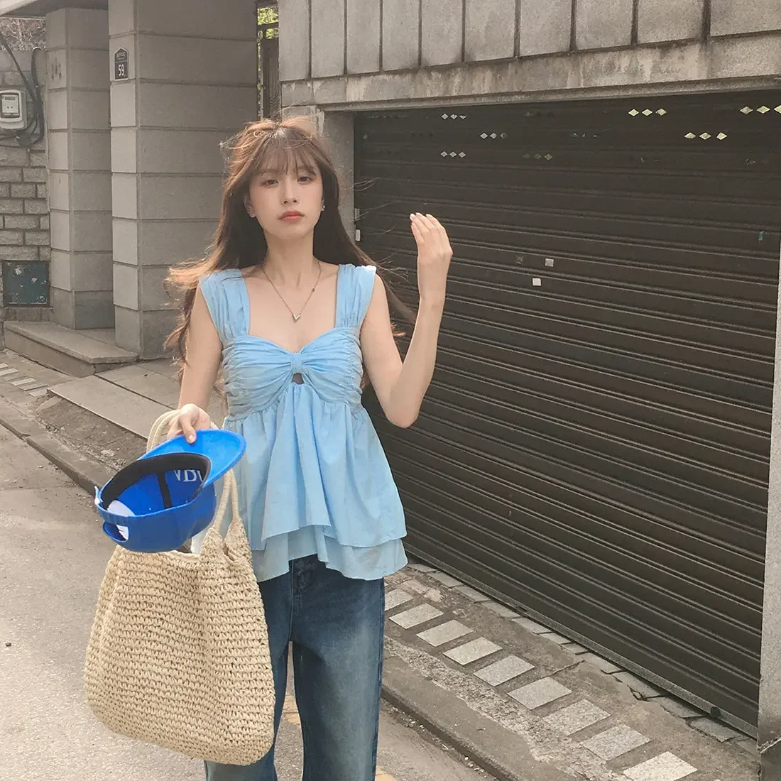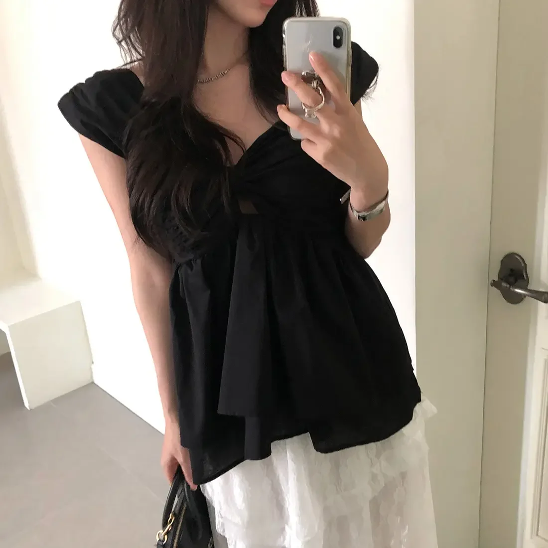 Purpdrank Summer Korean Cute Strapless Women's Bow Blouses 2025 New Sleeveless V-neck Ruffles Sexy Short Shirts Tank Top Female