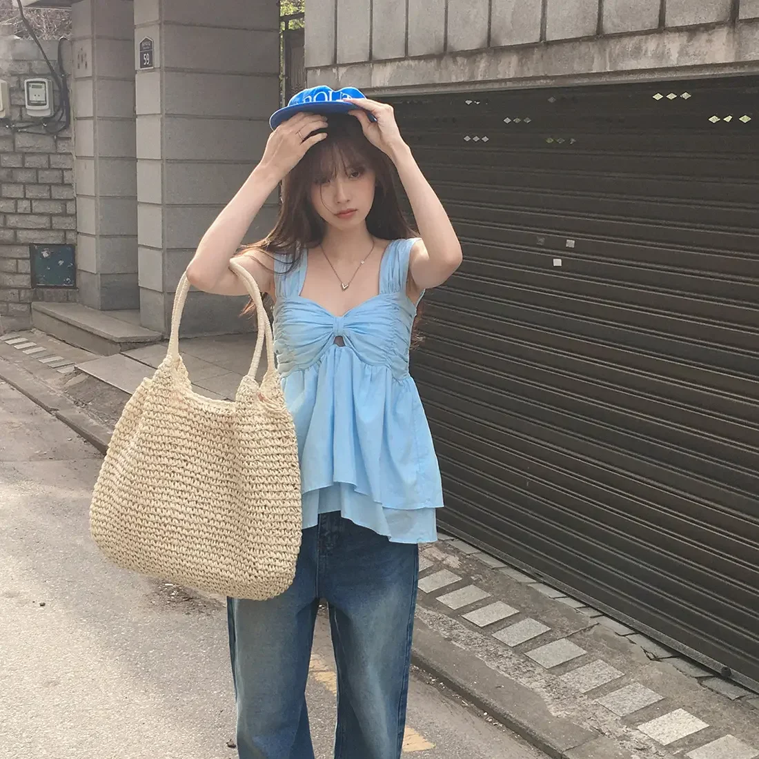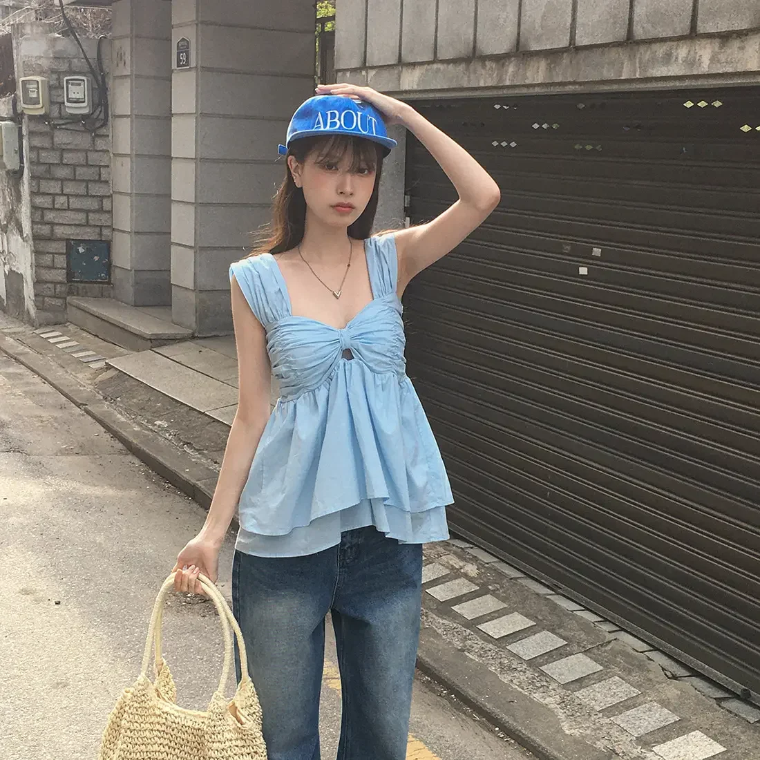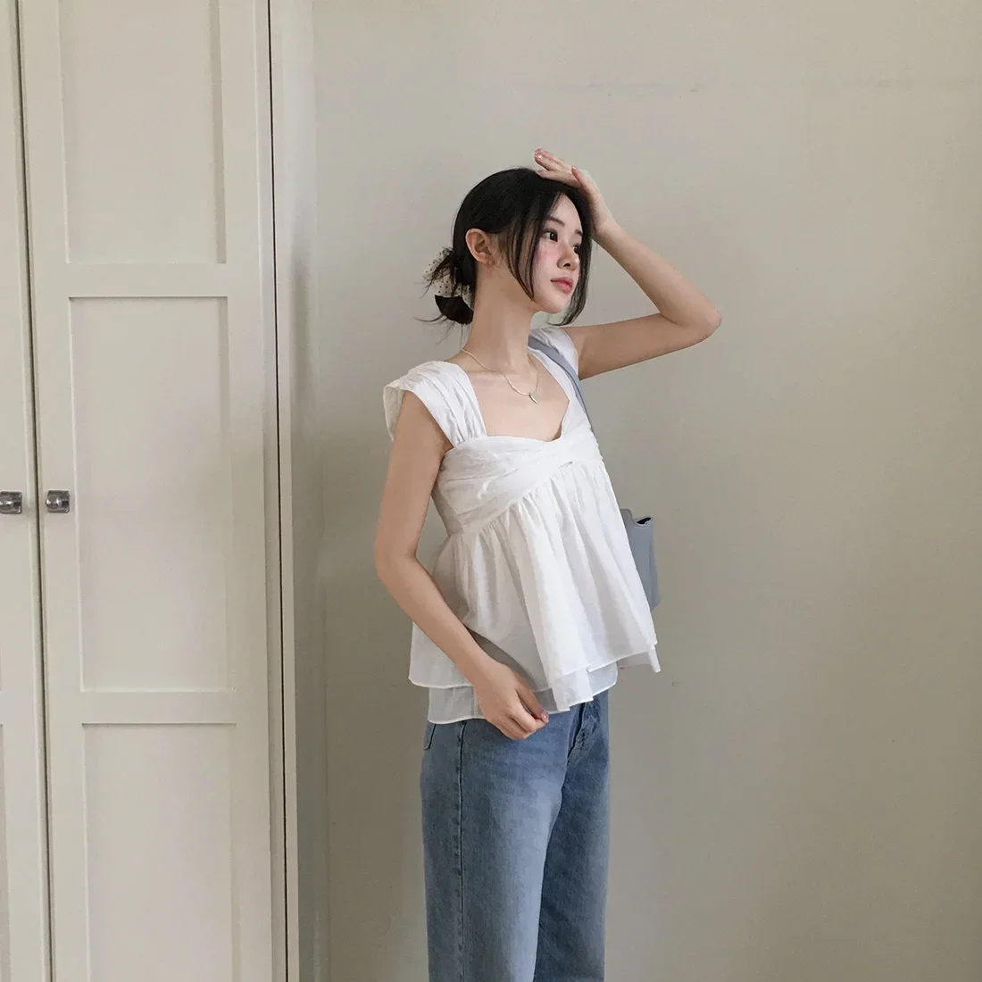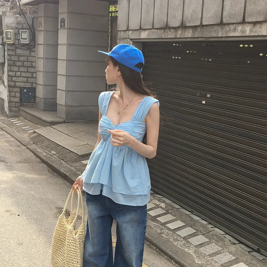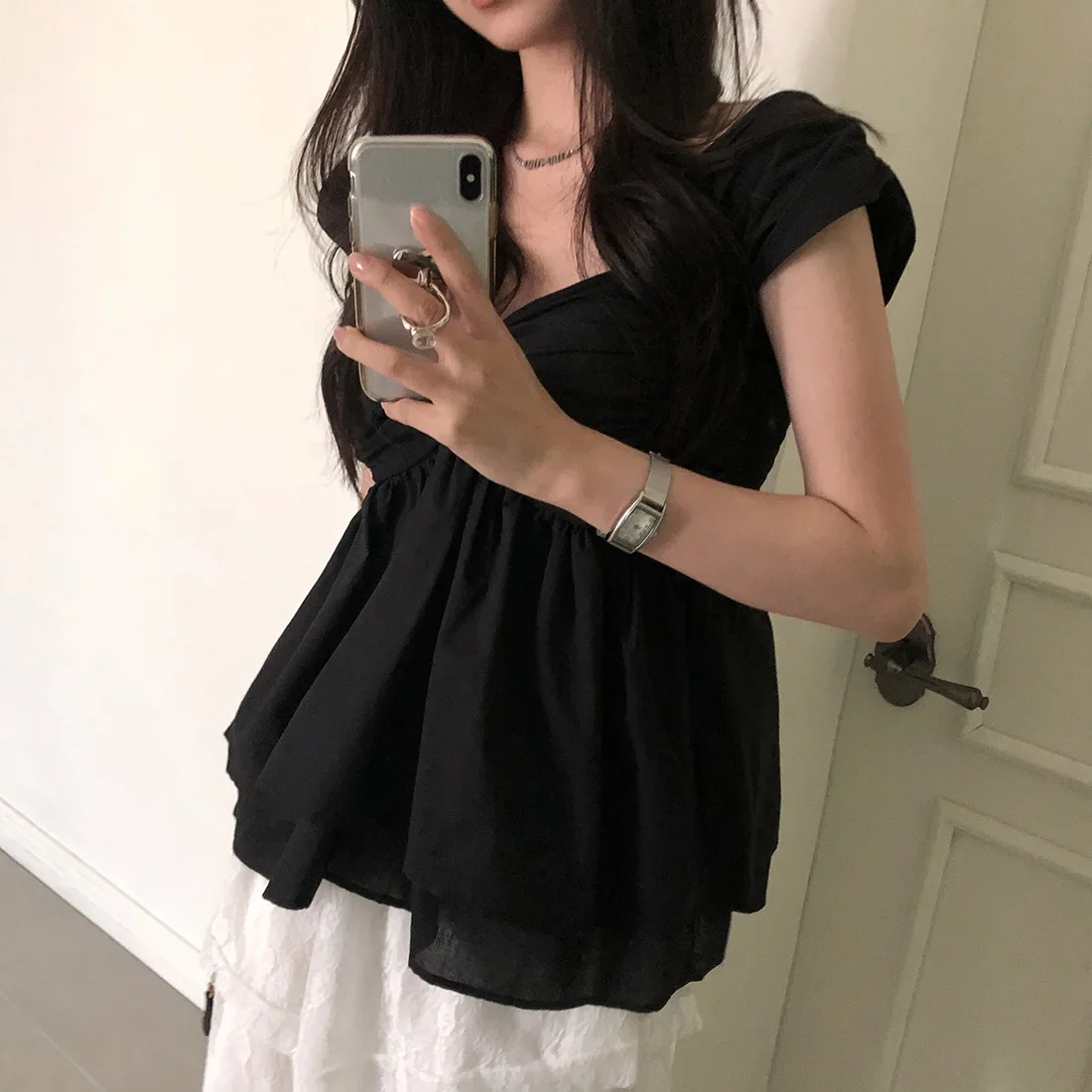 Purpdrank Summer Korean Cute Strapless Women's Bow Blouses 2025 New Sleeveless V-neck Ruffles Sexy Short Shirts Tank Top Female