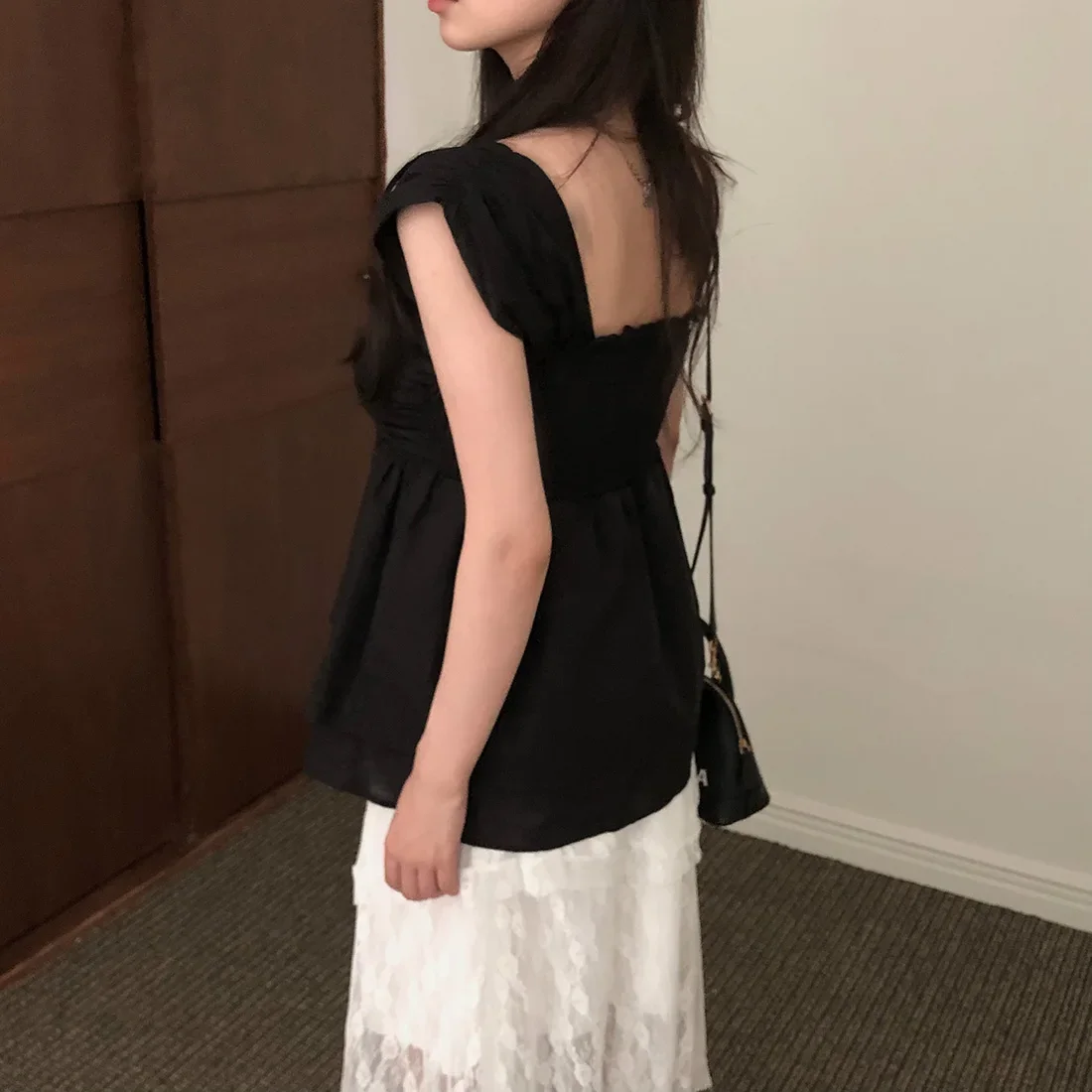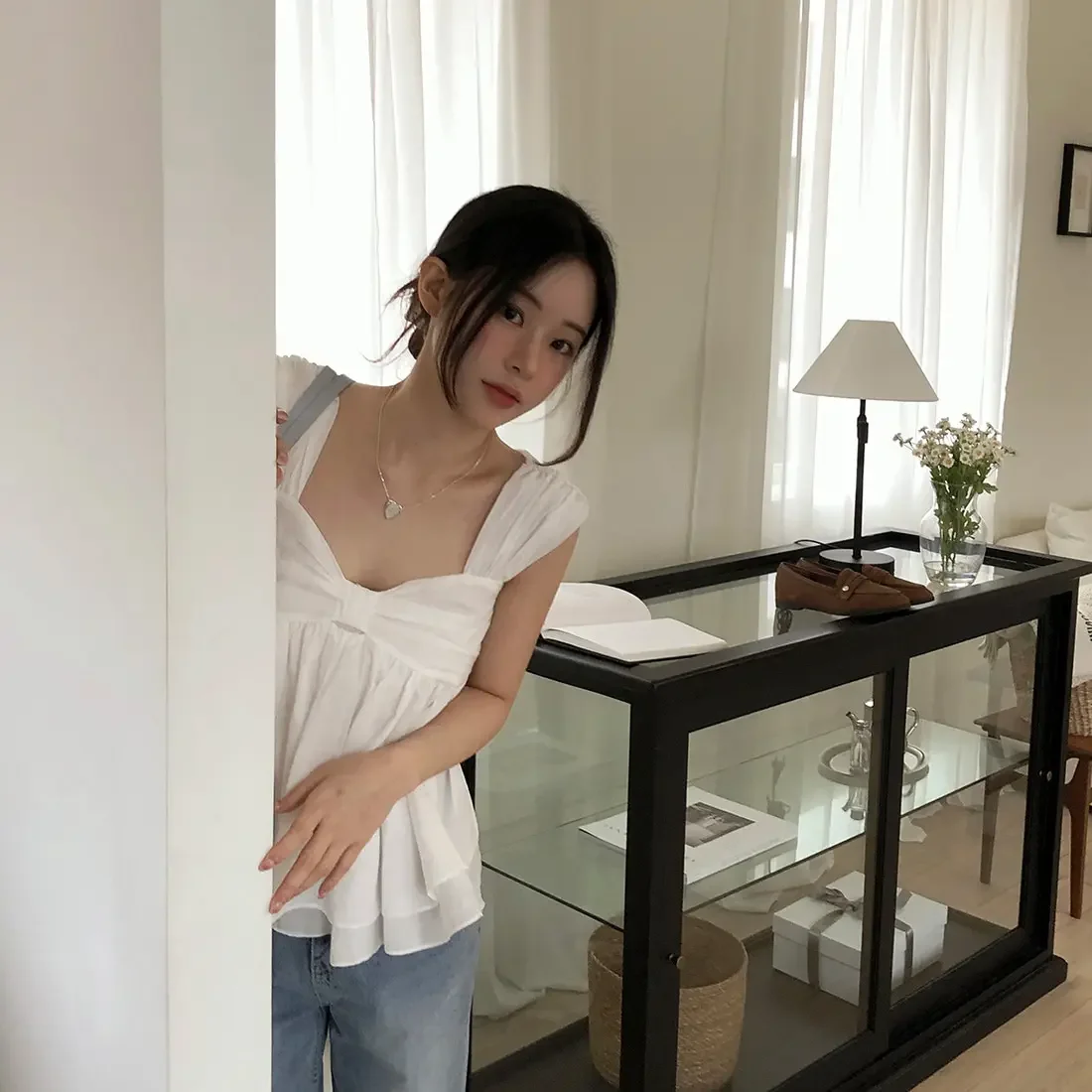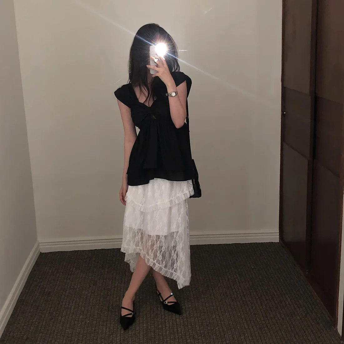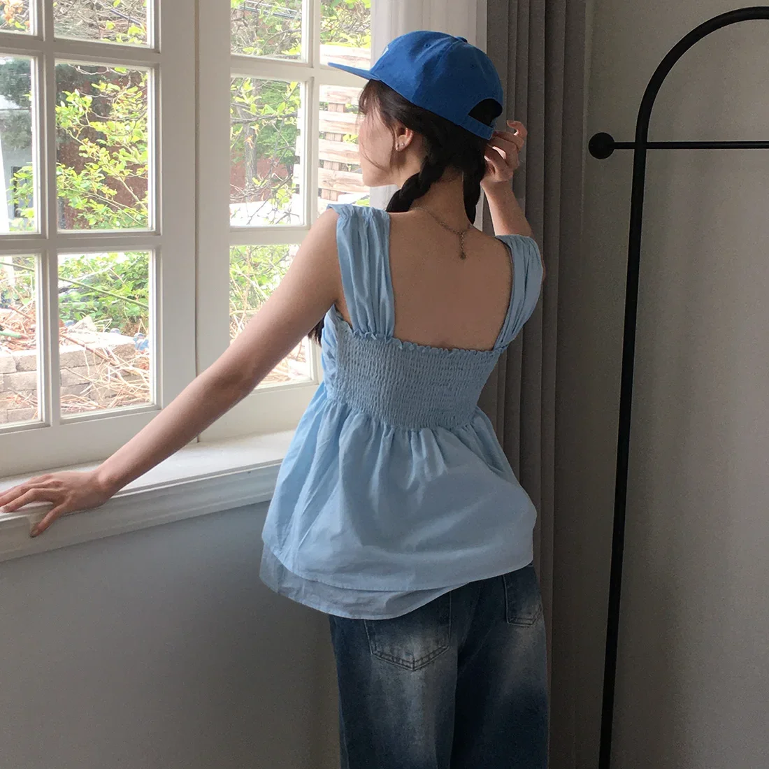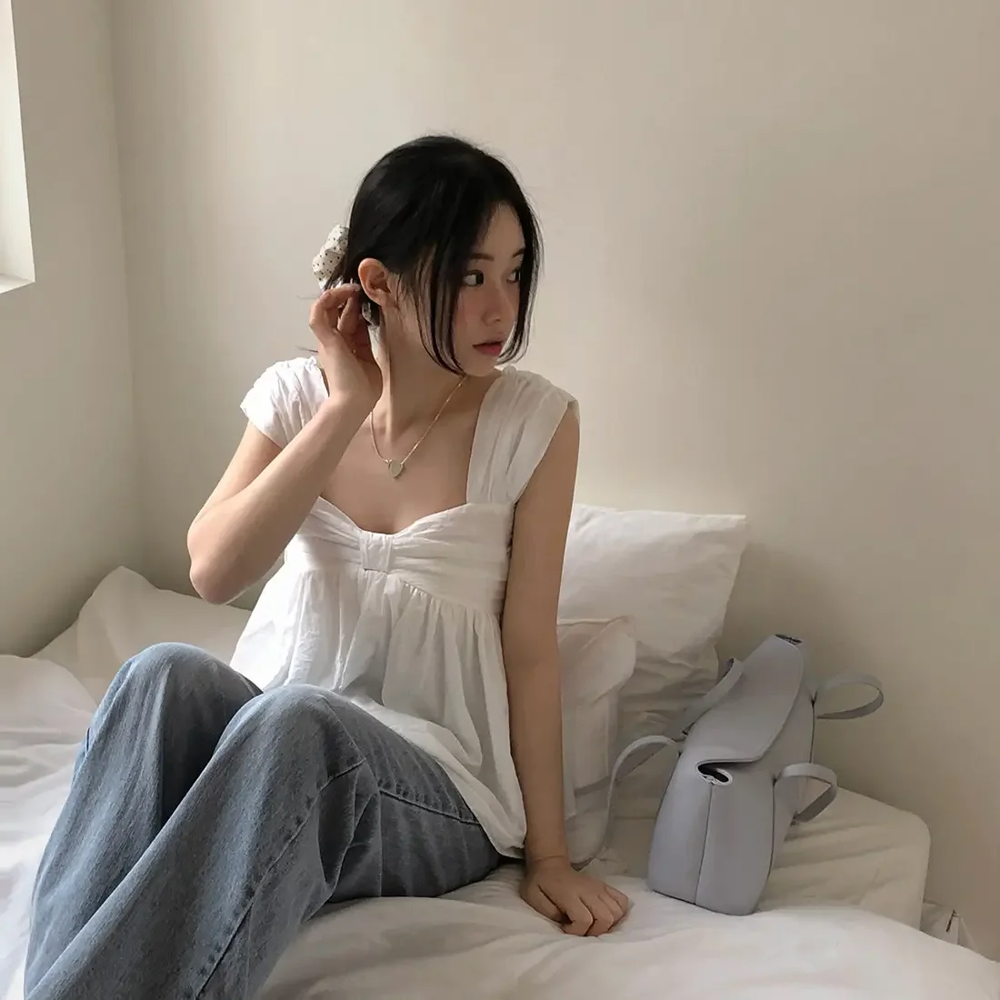 Purpdrank Summer Korean Cute Strapless Women's Bow Blouses 2025 New Sleeveless V-neck Ruffles Sexy Short Shirts Tank Top Female