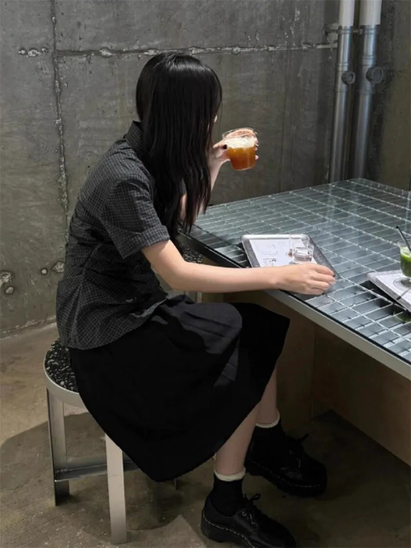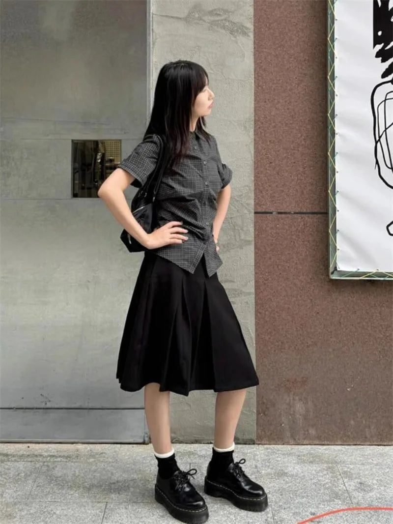 Purpdrank Vintage Japan Fashion Popular All Match Plaid Blouse Punk American Pleated Y2k Aesthetic Shirts Streetwear Subcultural Clothes