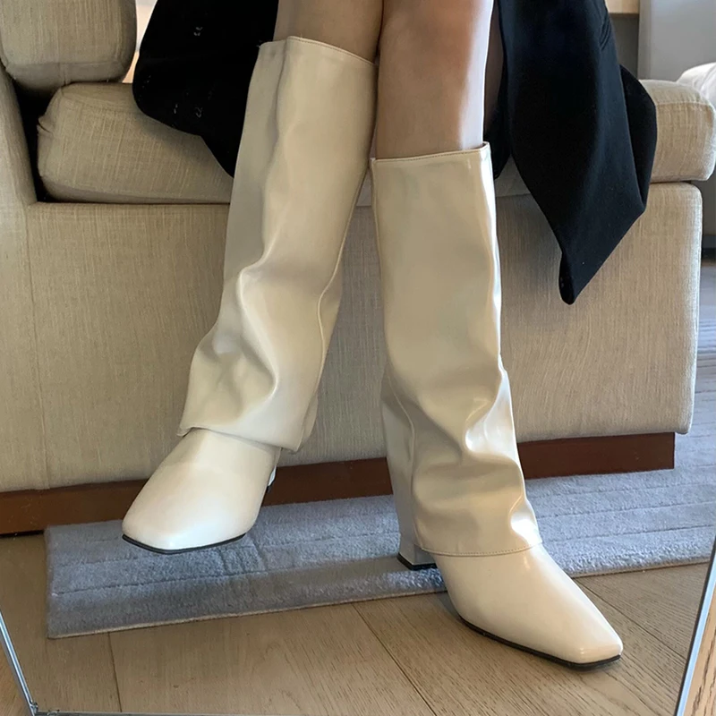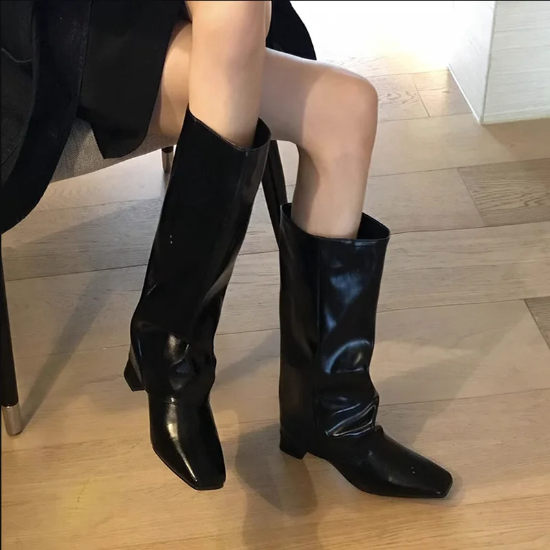 Purpdrank - 2023 Winter New Brand Women Long Boot Fashion Zippers Ladies Elegant Knight Boots Shoes Square Heel Knee-high Boot