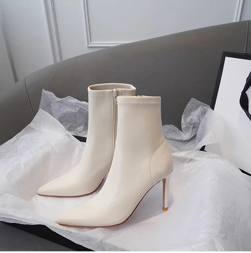 Purpdrank - 2023 Winter New Women Ankle Boots Fashion Pointed Toe Side Zipper Ladies Elegant Chelsea Boots Thin High Short Boots