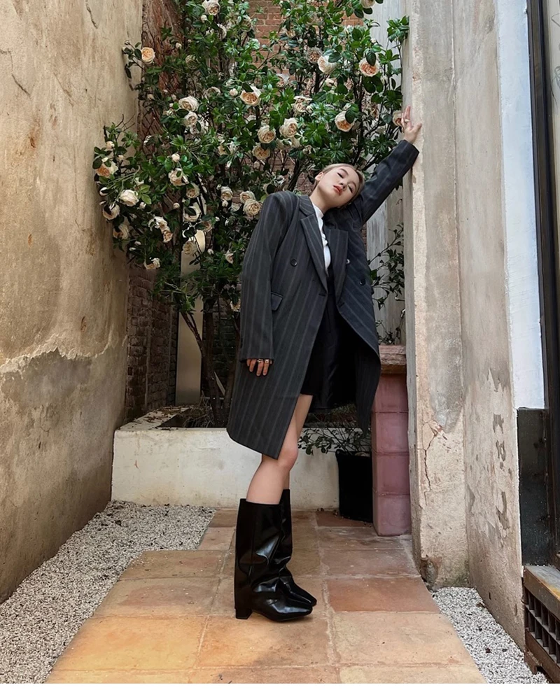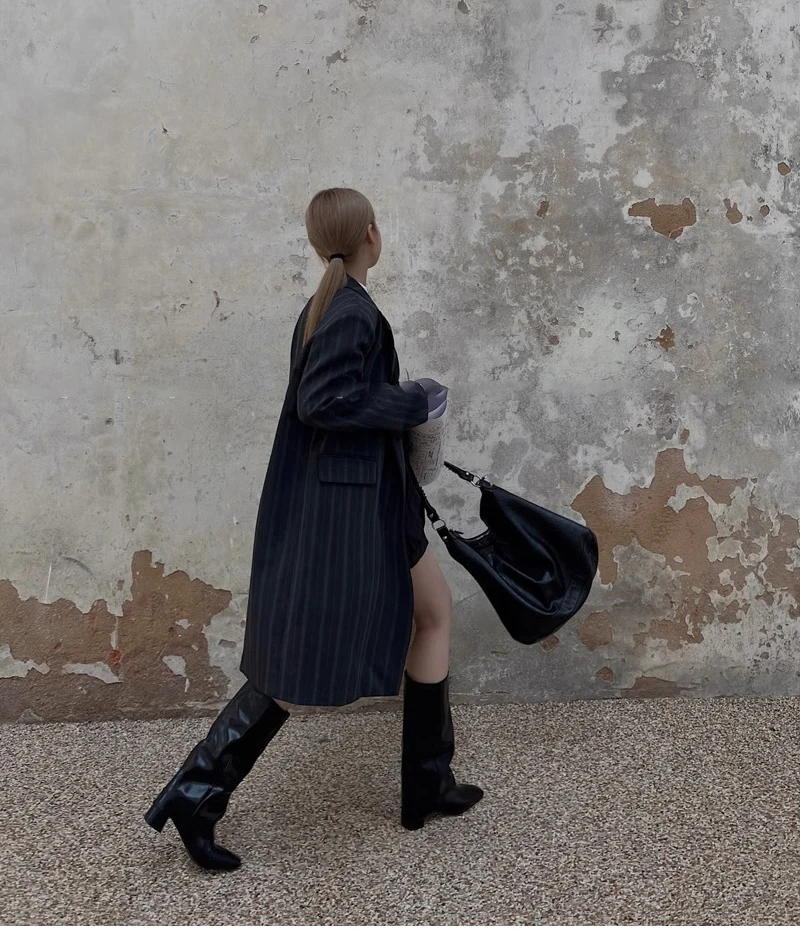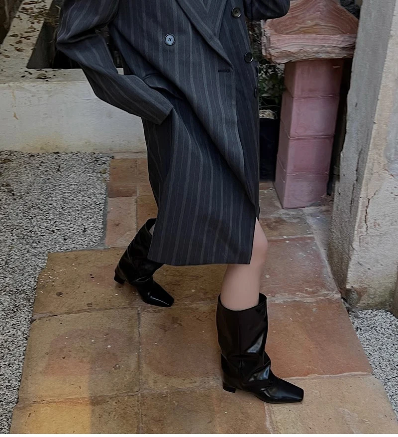 Purpdrank - 2023 Winter Women High Boots Fashion Back Zippers Ladies Elegant Long Pipe Boot Square Heel Knee High Botas