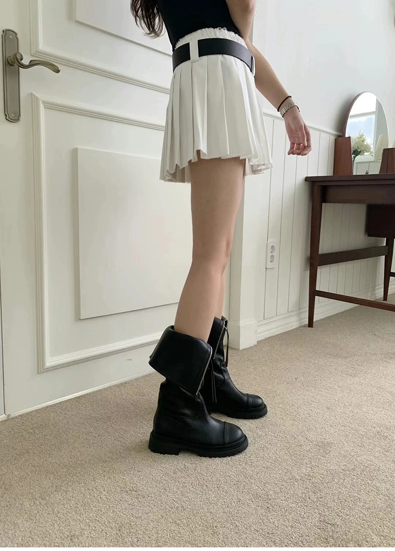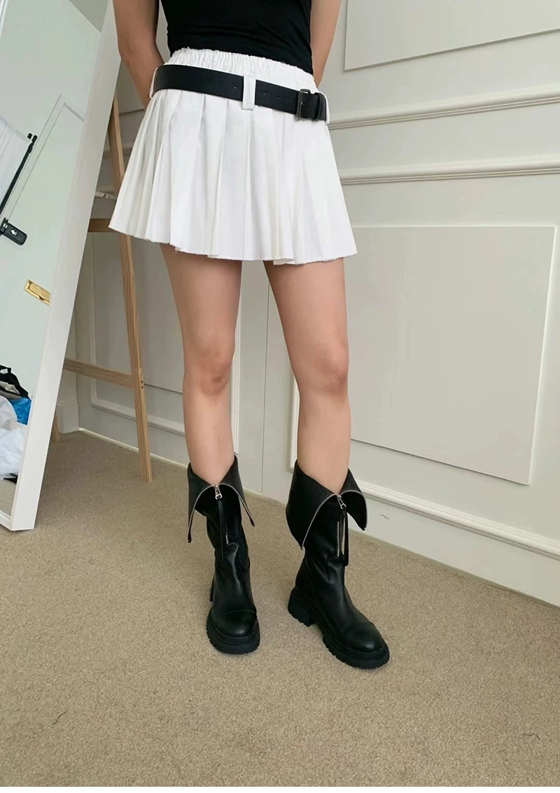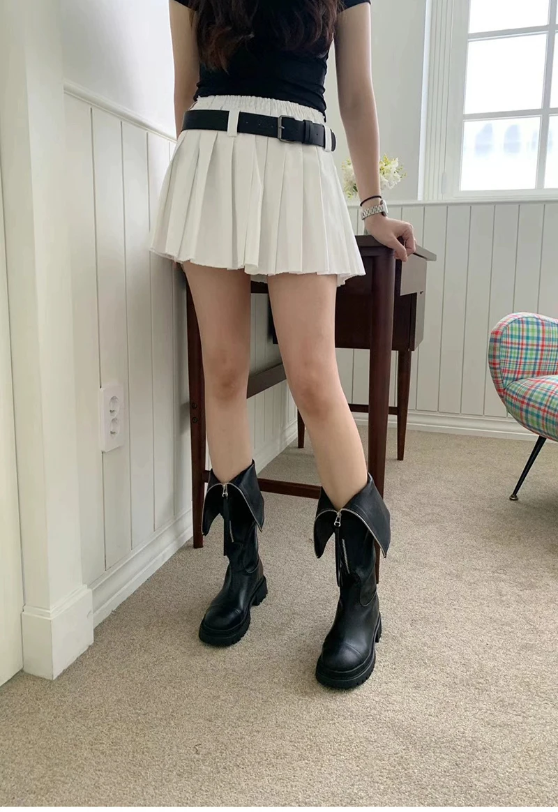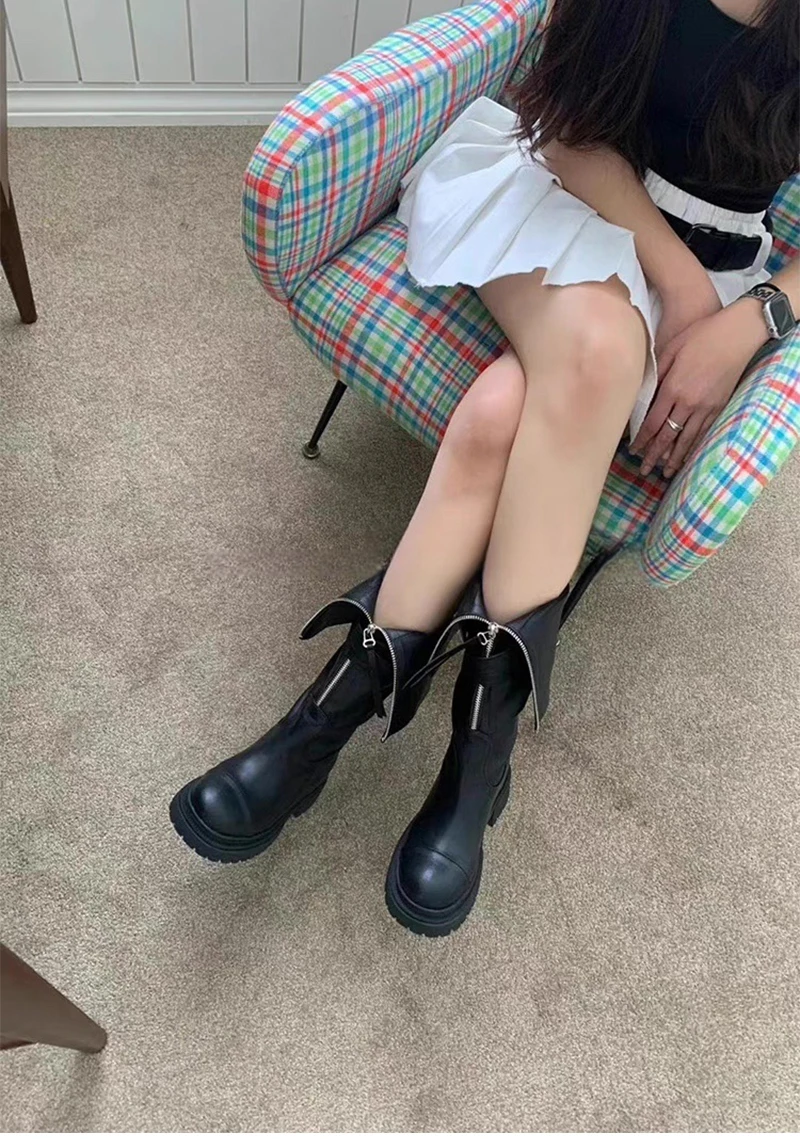 Purpdrank - 2023 Winter Women High Boots Fashion Zippers Ladies Elegant Long Black Boot Casual Flats Knee High Botas