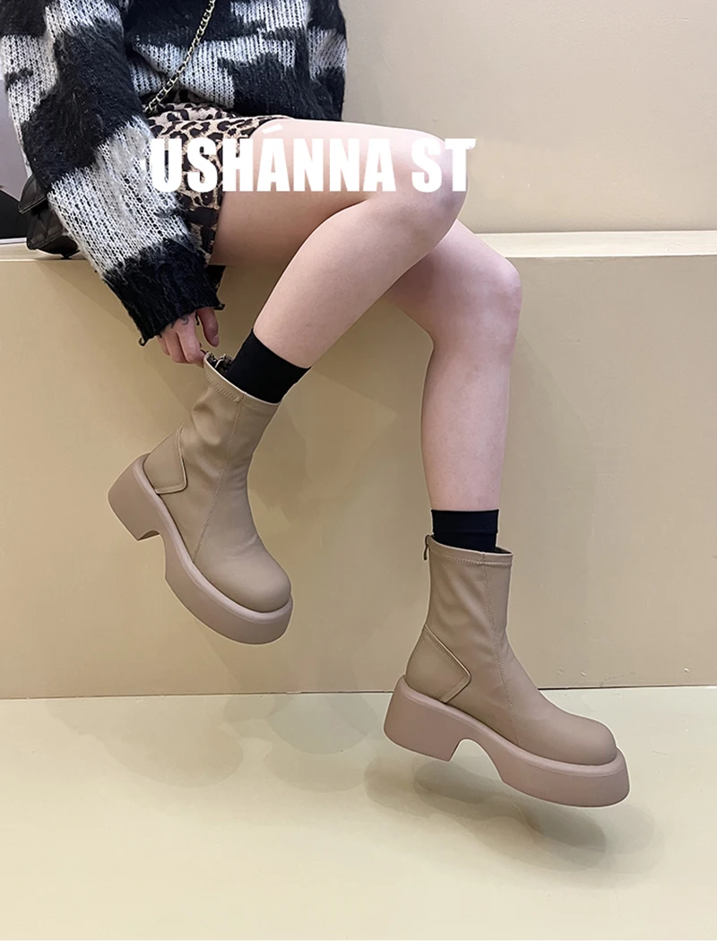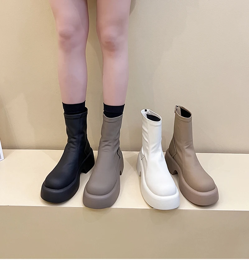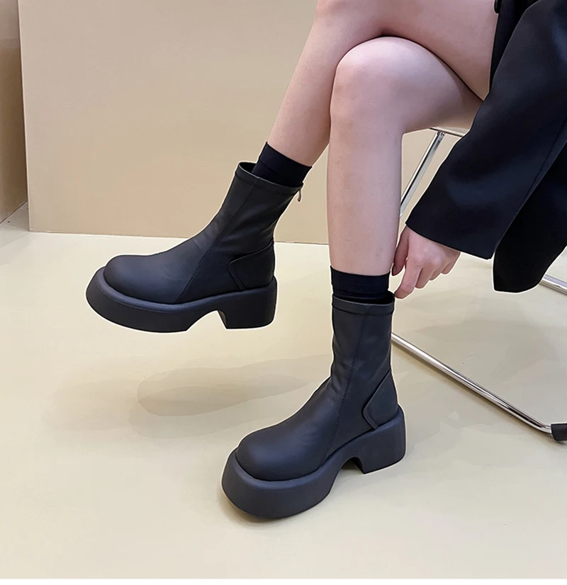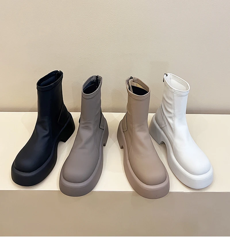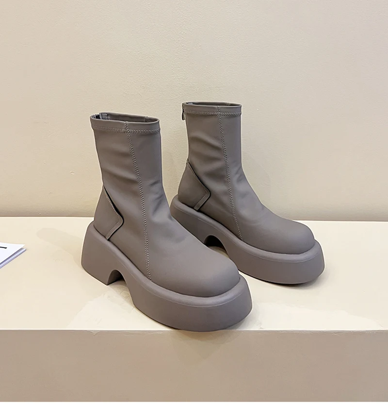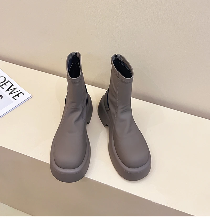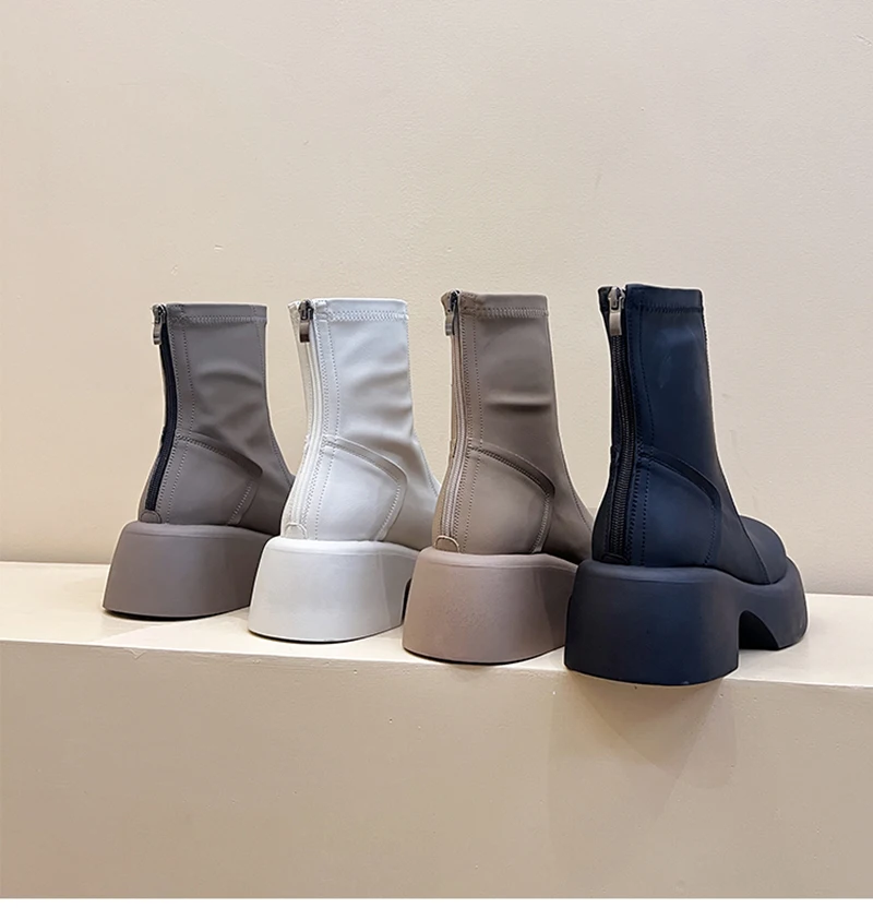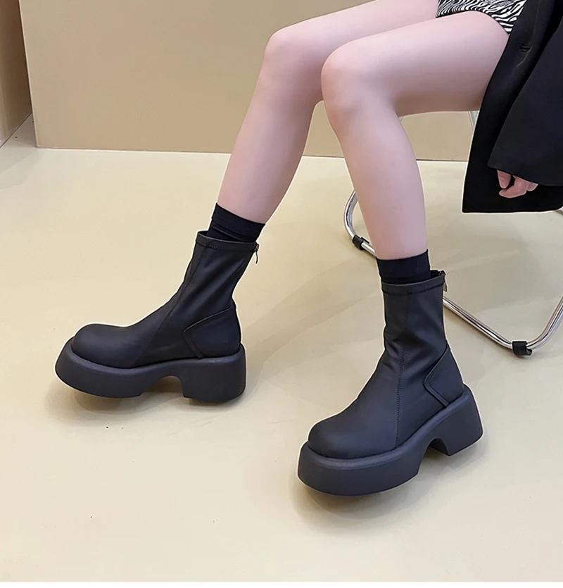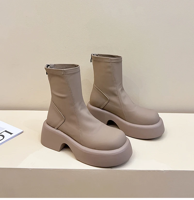 Purpdrank - Platform Ankle Boots Women Shoes Fashion Back Zippers Thick Bottom Boats Ladies Elegant Short Bootties