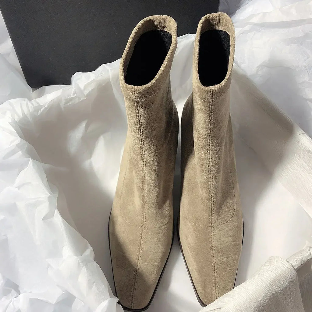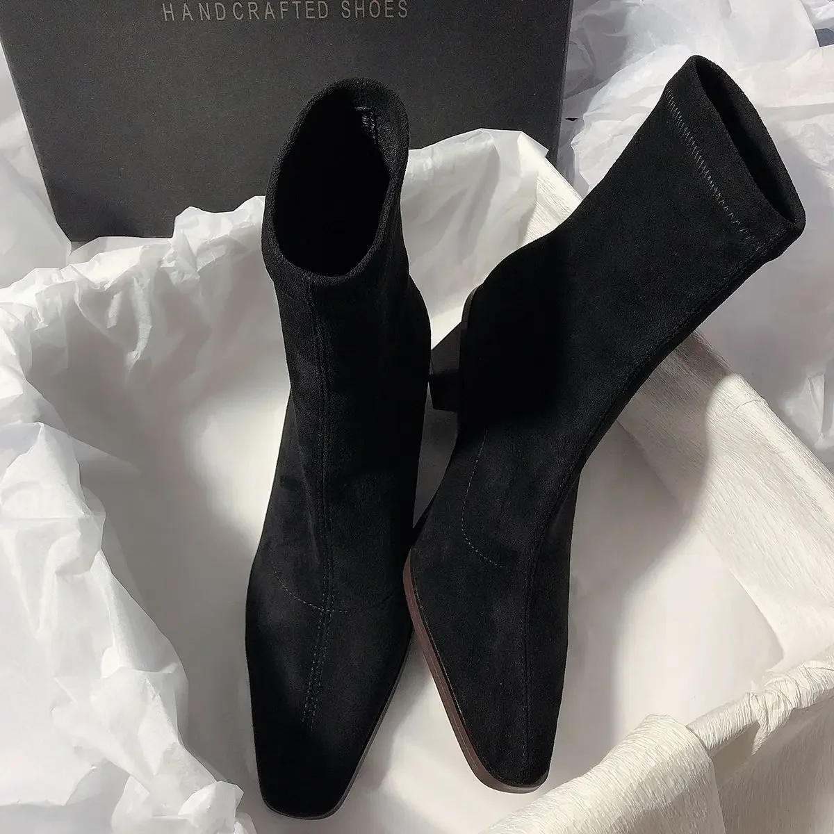 Purpdrank Women's Short High Heel Boots Autumn Winter New Style Versatile Sharp Pointed Toe Sock Boots Thick Heel Elastic Slim Boots