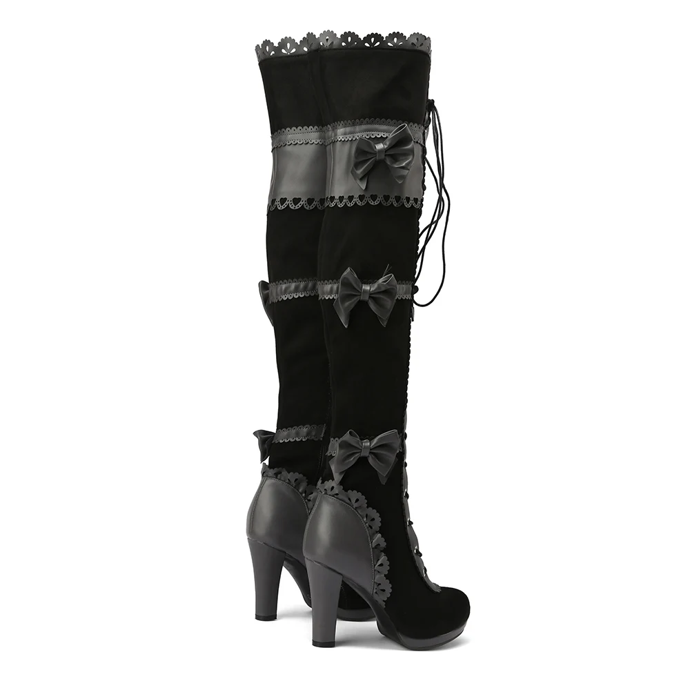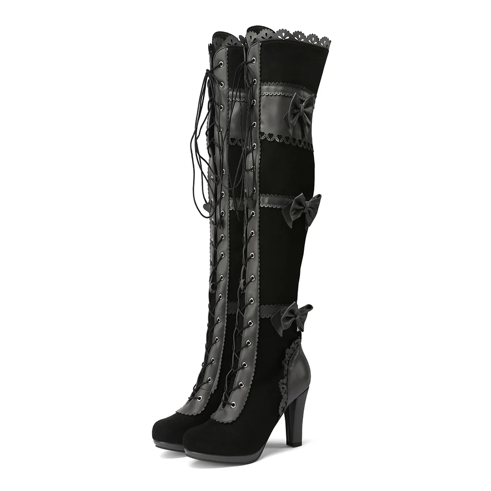 Purpdrank - Steampunk Victorian Women High Heel BootsTall Thigh Pirate Bottes Over Knee Bowk Lolita Winter Riding Shoes Lace Up Cosplay Boot