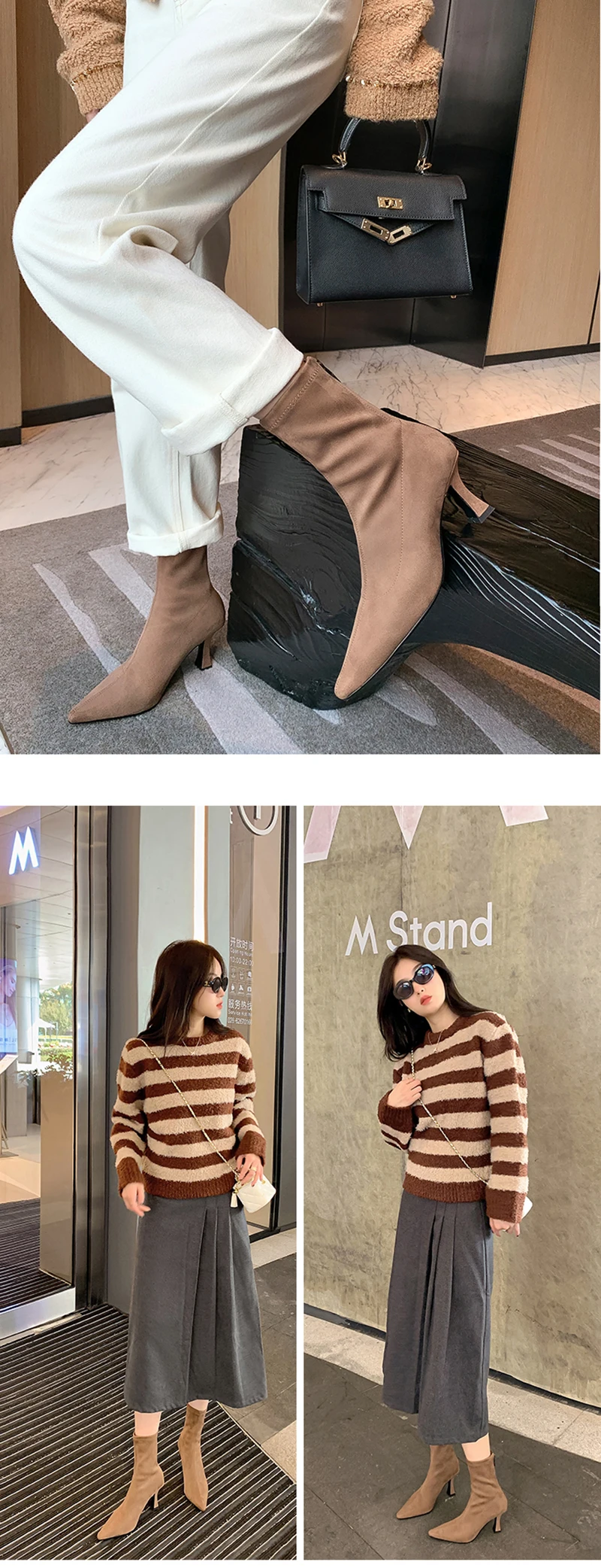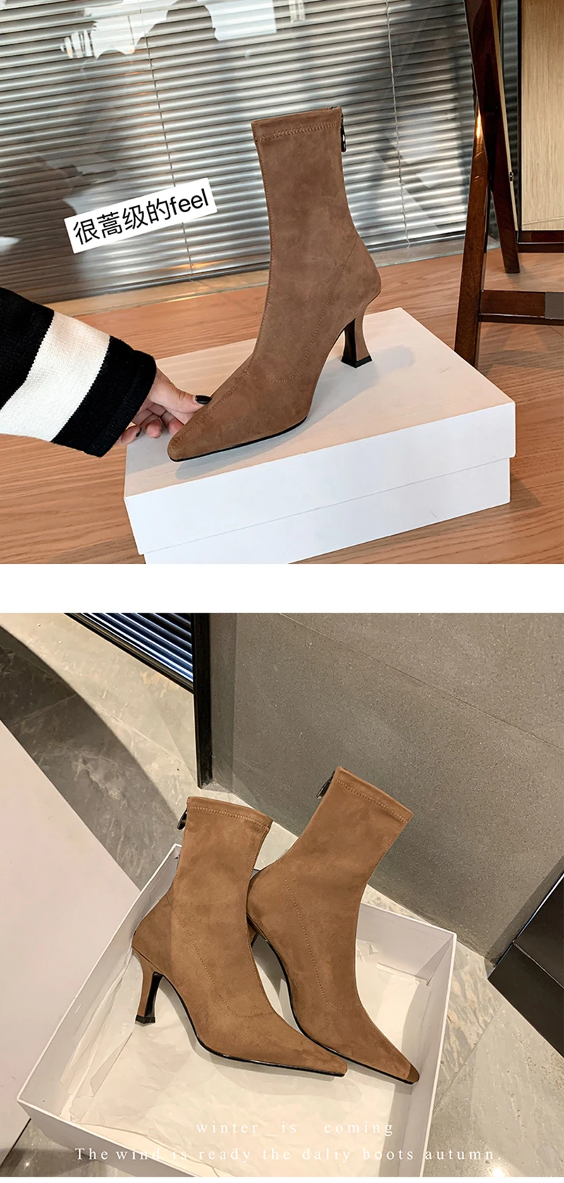 Purpdrank - Winter Women Stretch Cloth Ankle Boots Sexy Pointed Toe Short Booties Shoes Fashion Partys High Heel Socks Botas