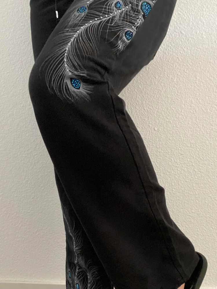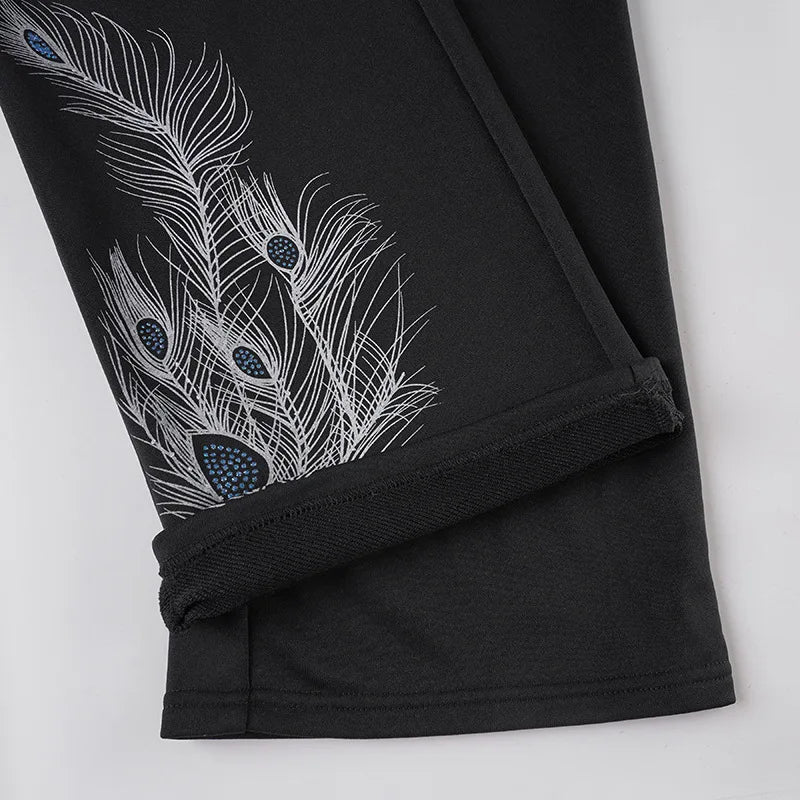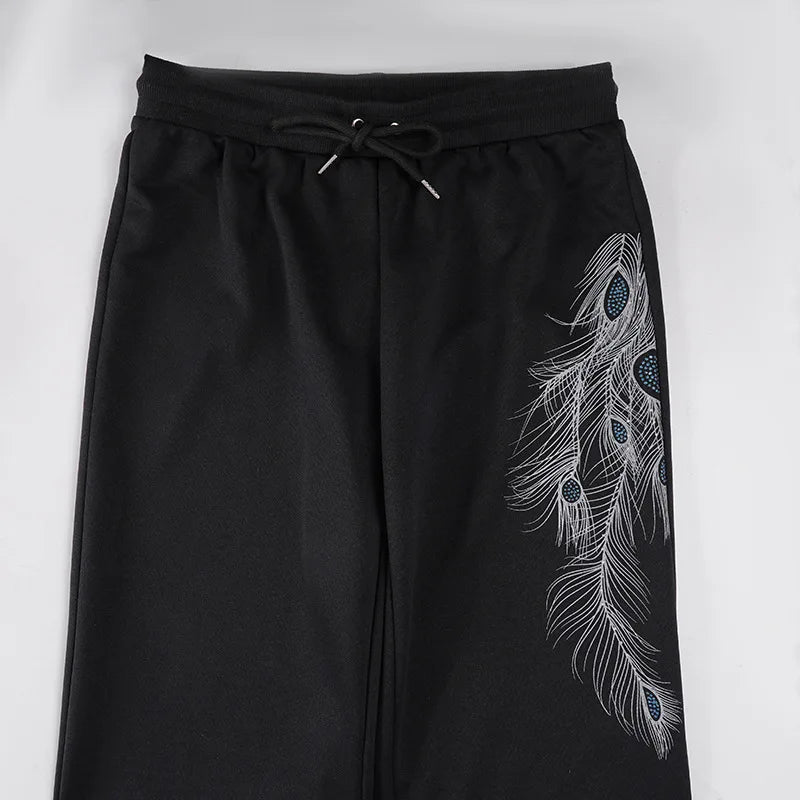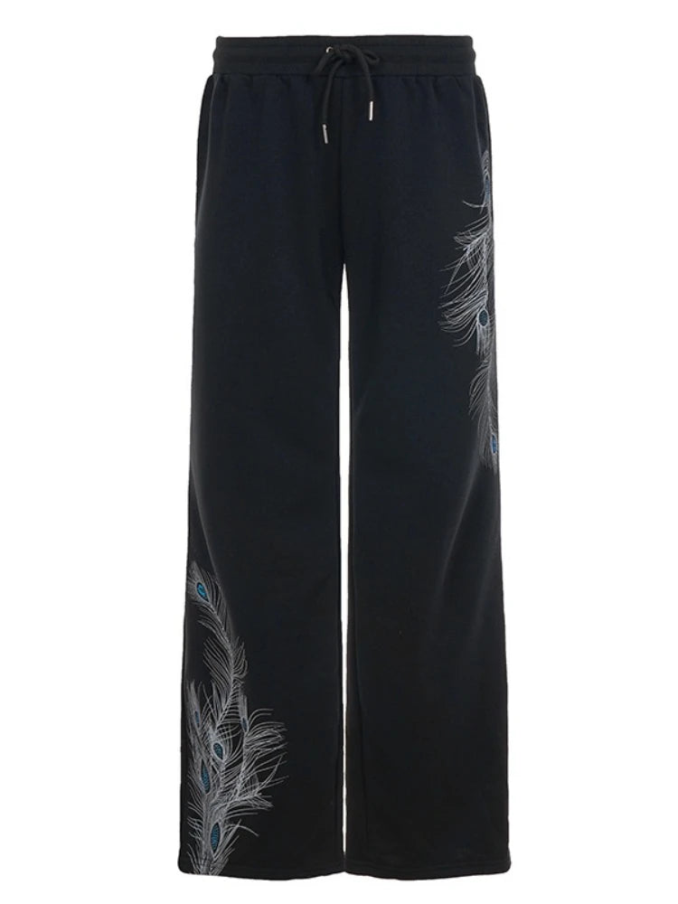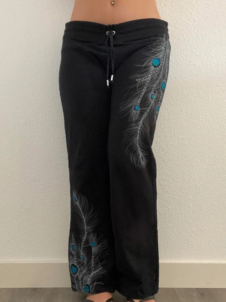 Purpdrank Autumn Casual All Match Slim Low Waist Print Slight Strech Drawstring Pants