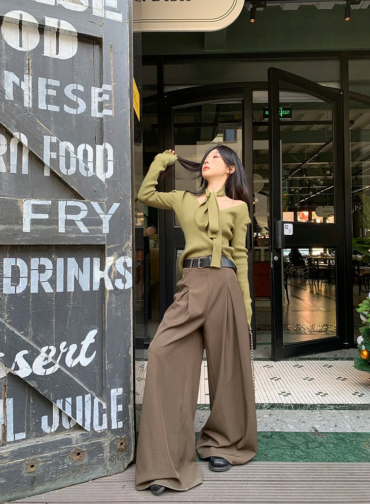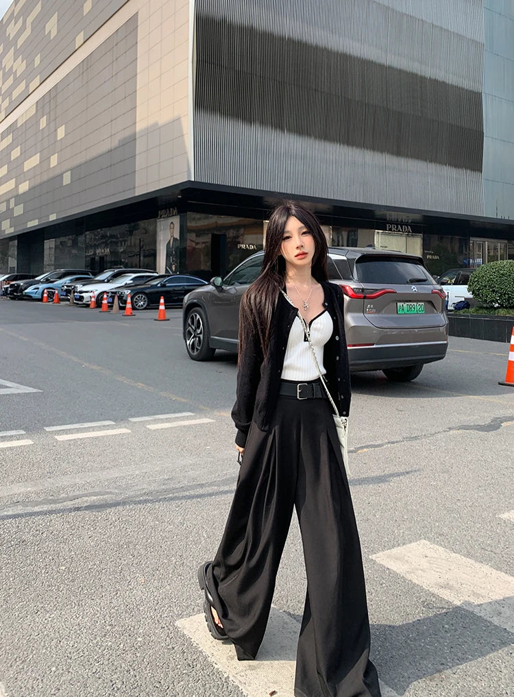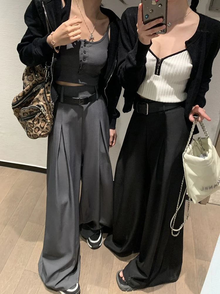 Purpdrank High Quality Suit Pants Women Casual High-waisted Wide-leg Pants Female Elegant Design Style Streetwear Trouser