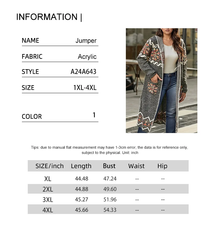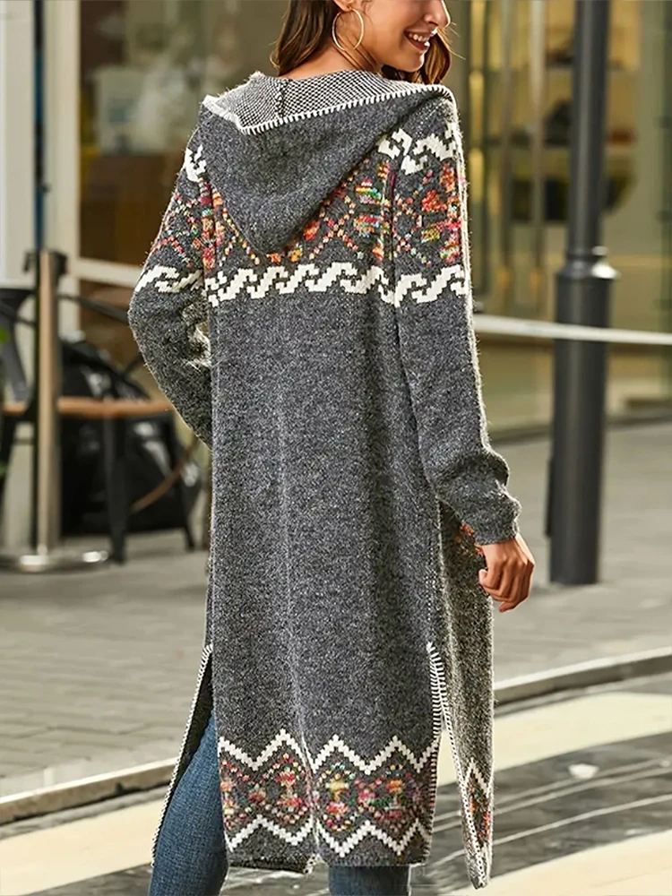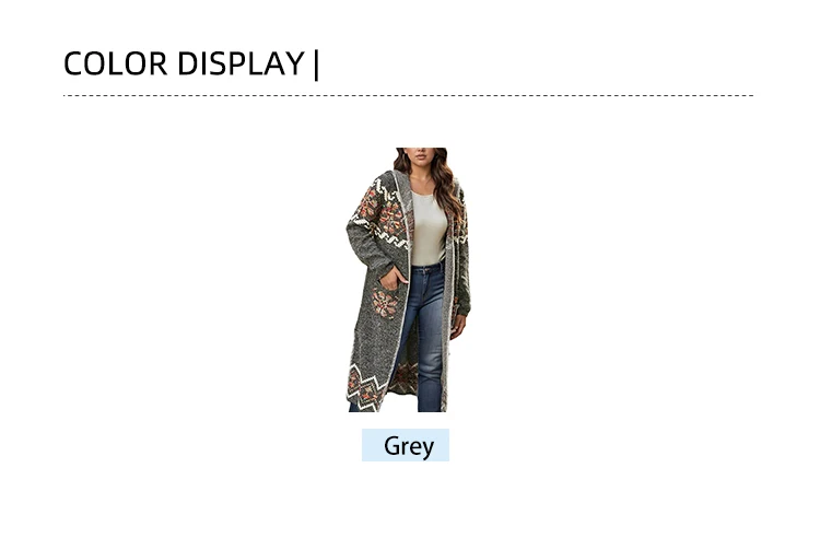 Purpdrank plus Size Printed Cardigan Jumper for Women Autumn Winter Hooded Long Section Warm Temperament Commuting Fashion Outerwear