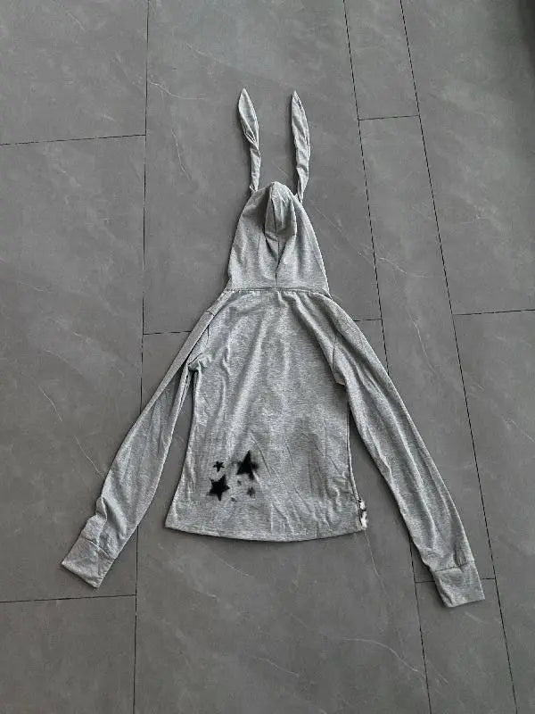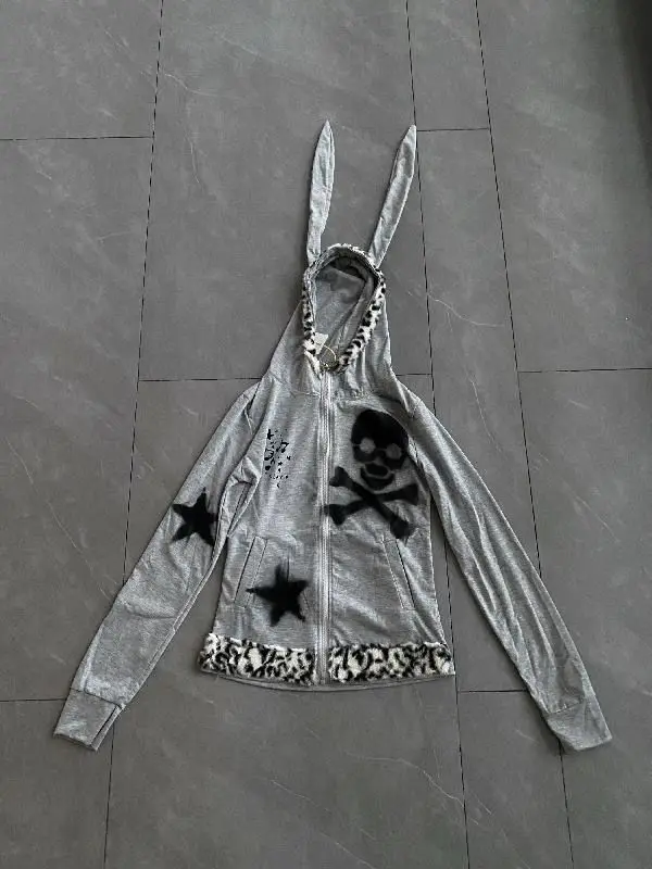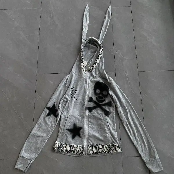 Purpdrank Skull Leopard Print Star Hoodie Women Rabbit Eared Zipper Cardigan Sweatshirt Spicy Girl Long Sleeved Jacket Harajuku