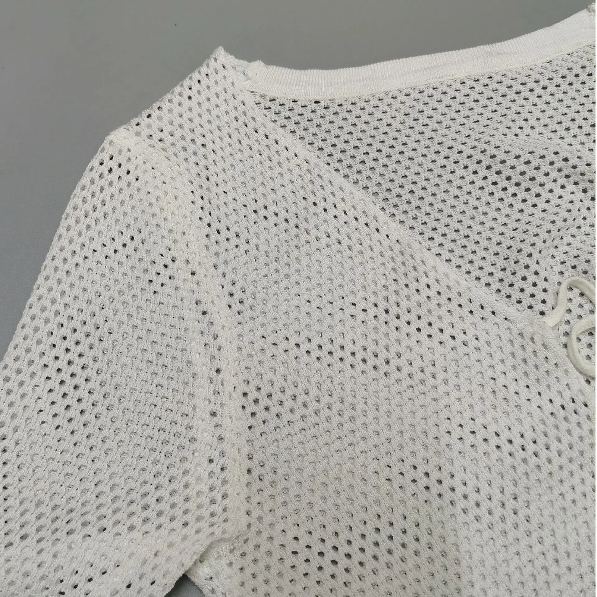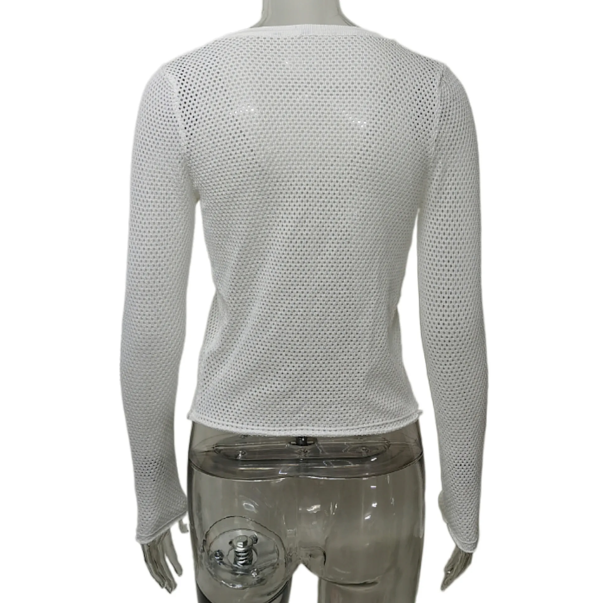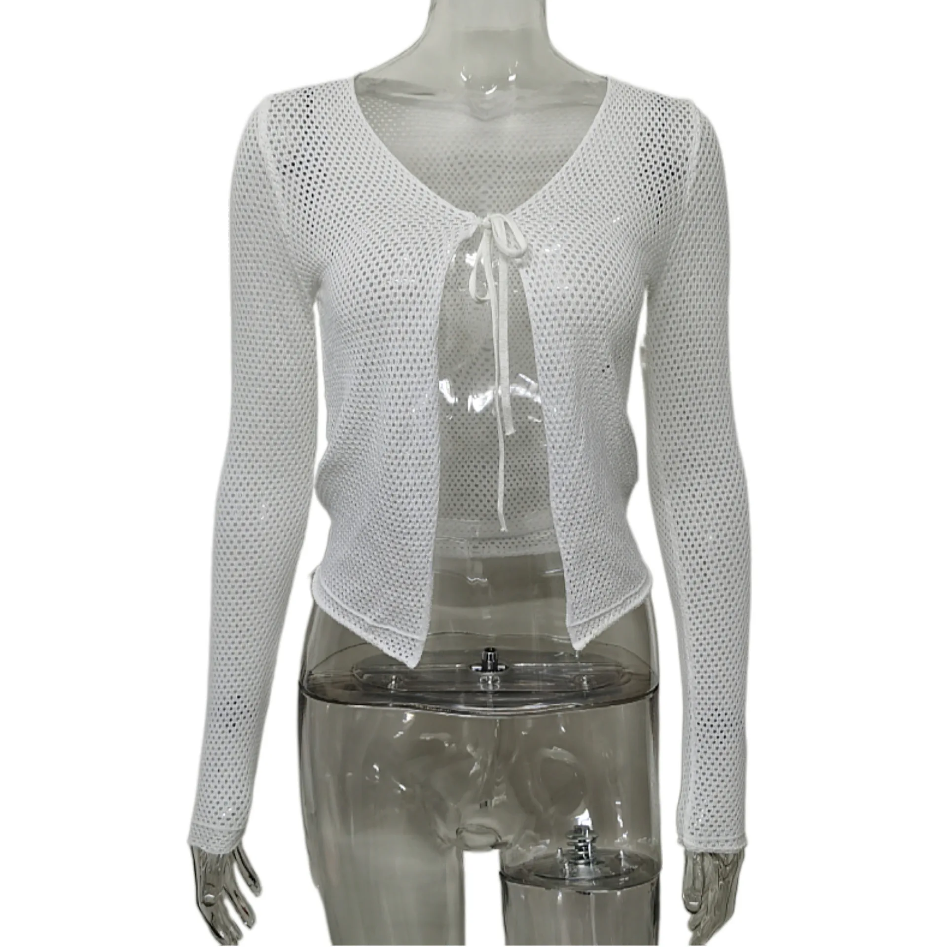 Purpdrank Sweater Cardigan Knitted U-neck Hollowed-out Solid Color Bow Tie and Long-sleeved Blouse