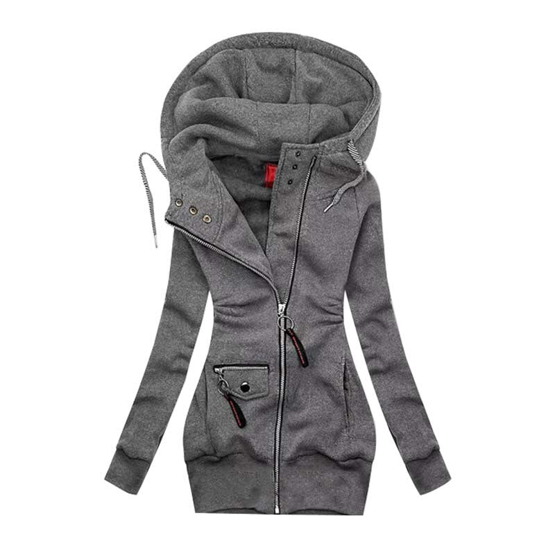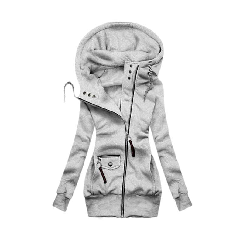 Purpdrank - Winter Women Solid Hoodies Sweatshirt Fashion Casual Slim Long Sleeve Hooded Coat Streetwear Zipper Jacket Tops Femme