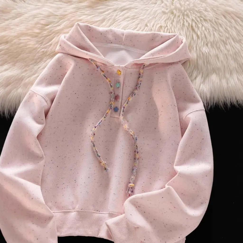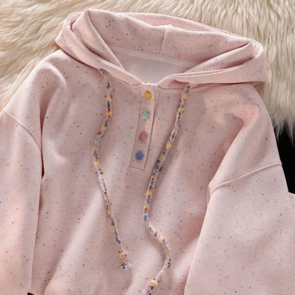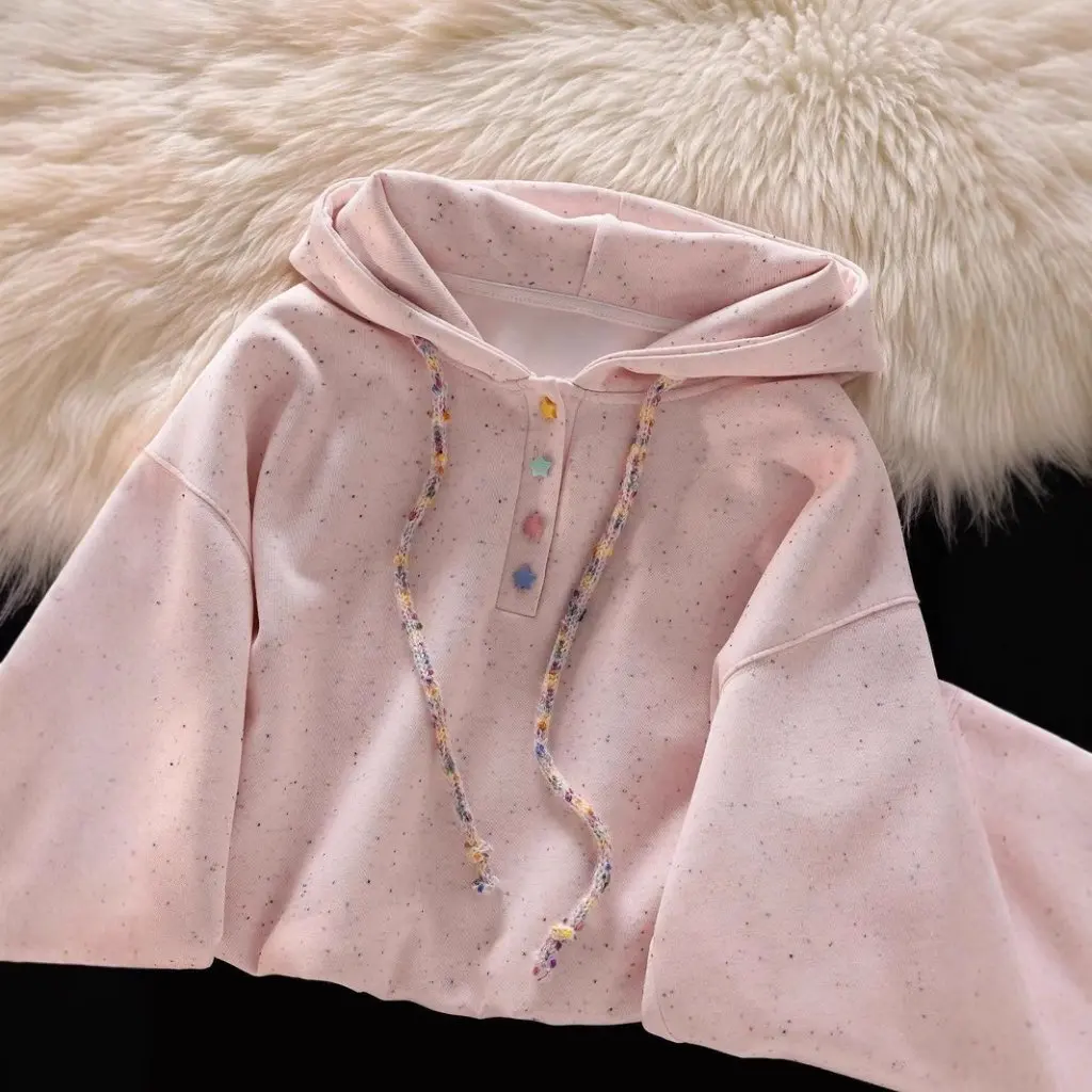 Purpdrank Pink White Colorful Hooded Sweatshirt for Women Chic Loose Top High-End Fashionable Style