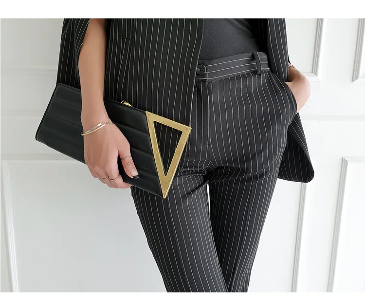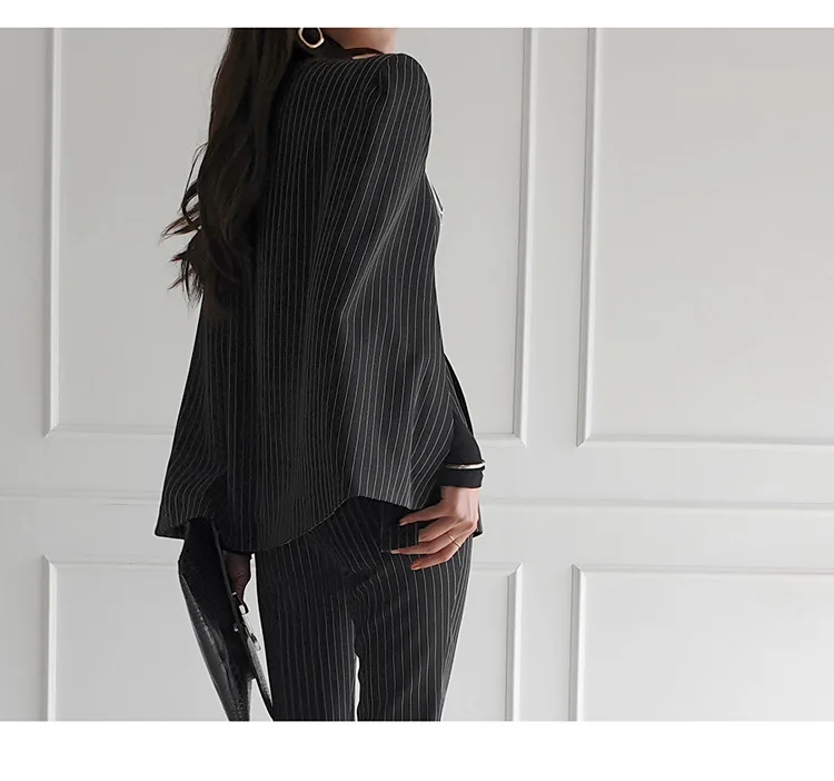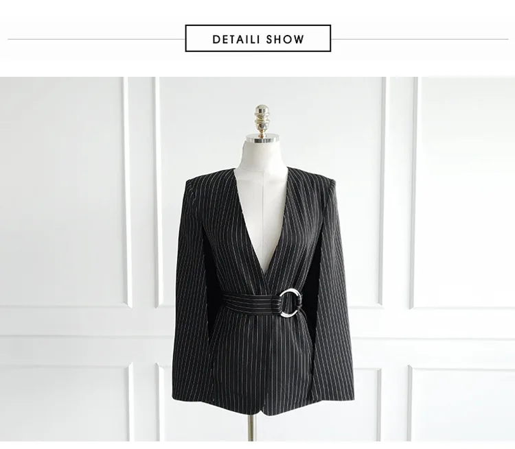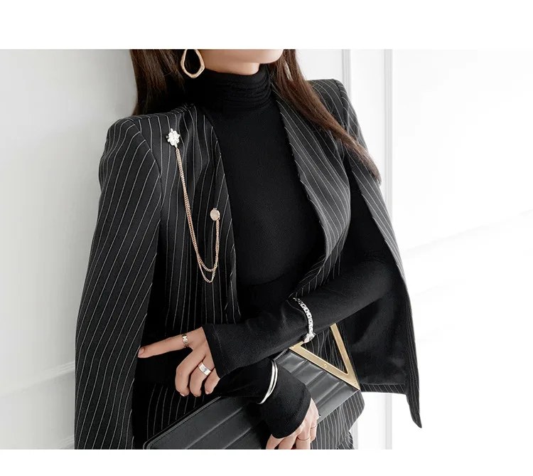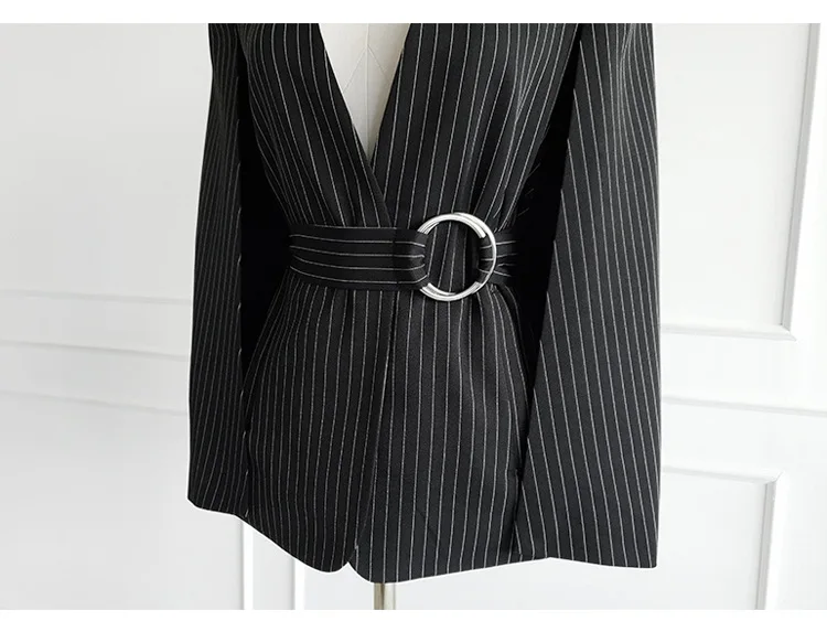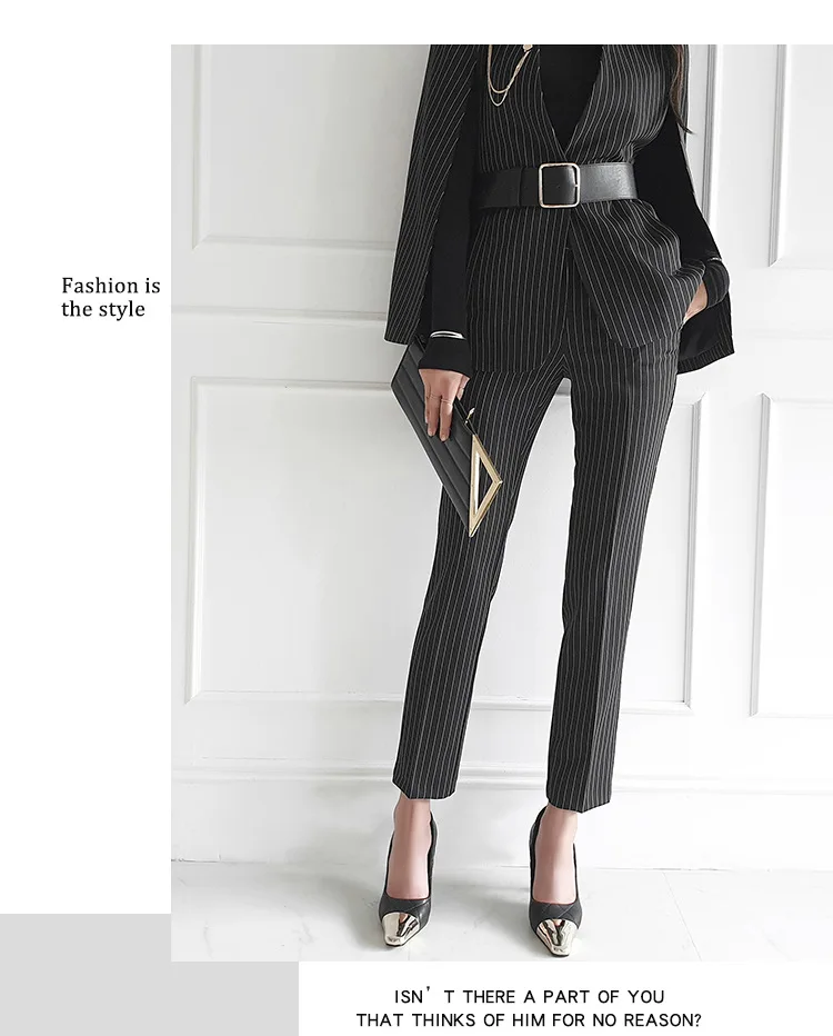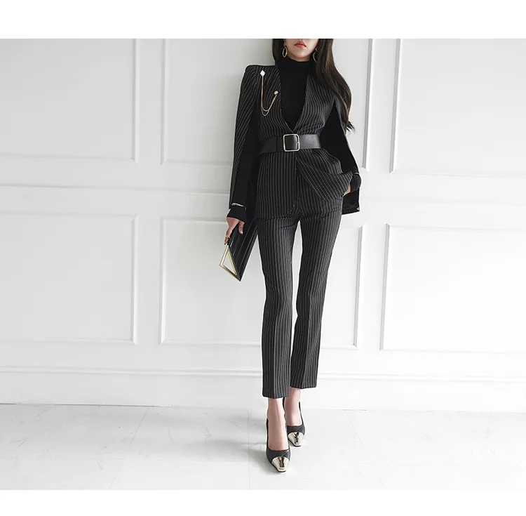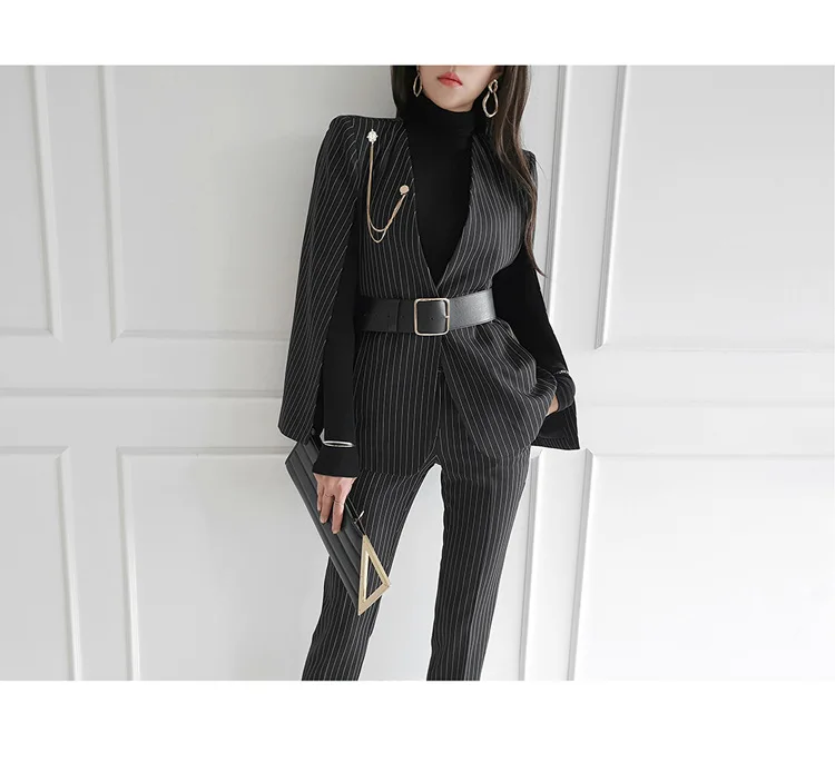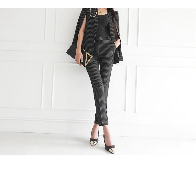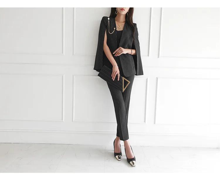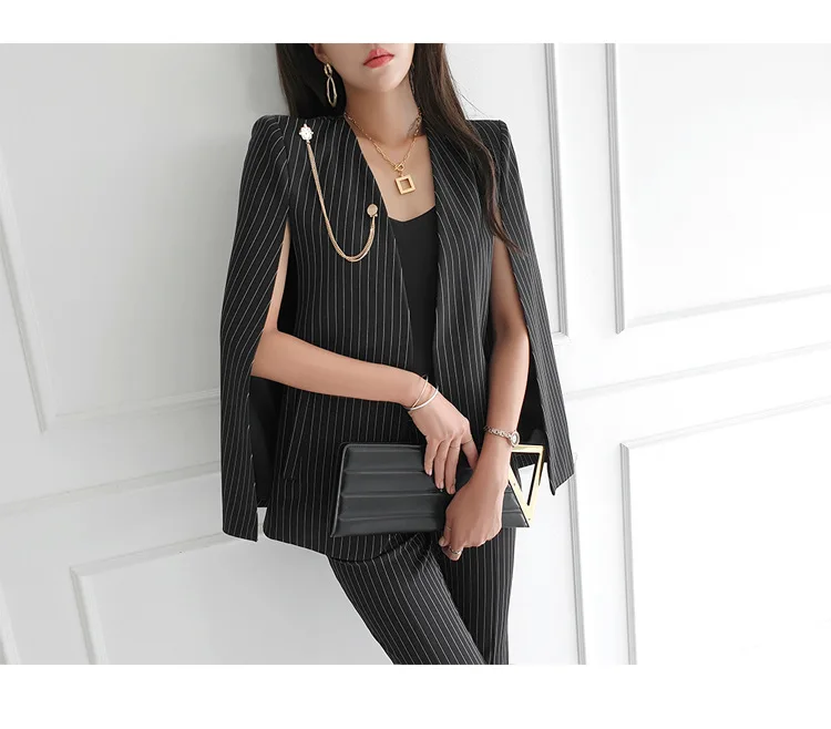 Purpdrank - Women 2023 Spring New Temperament V Neck Striped Thin Cape Blazer Jacket Suit Slim Fit Trousers Office Lady Two Piece Suit