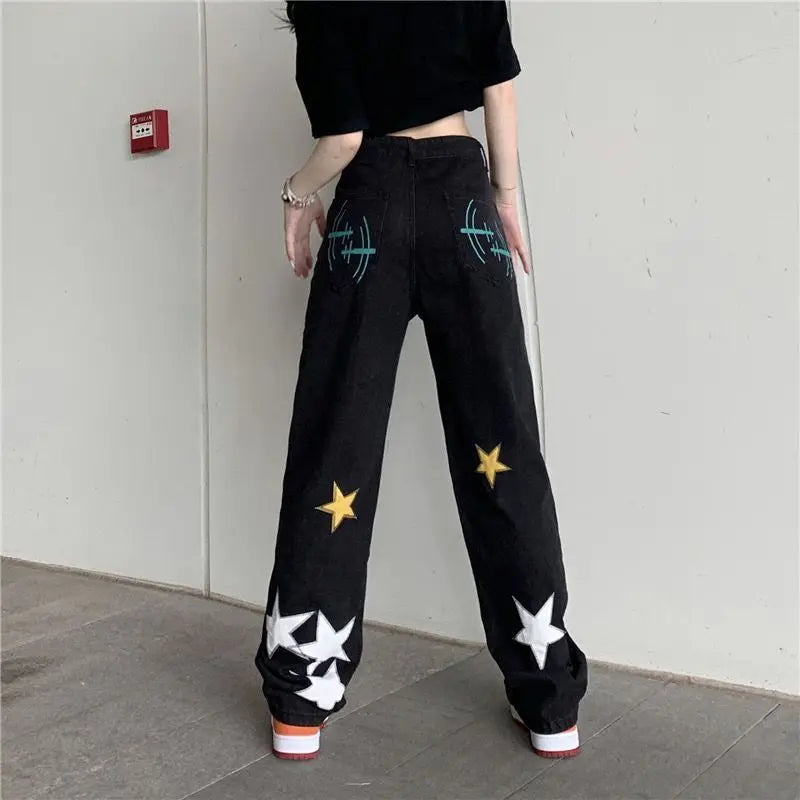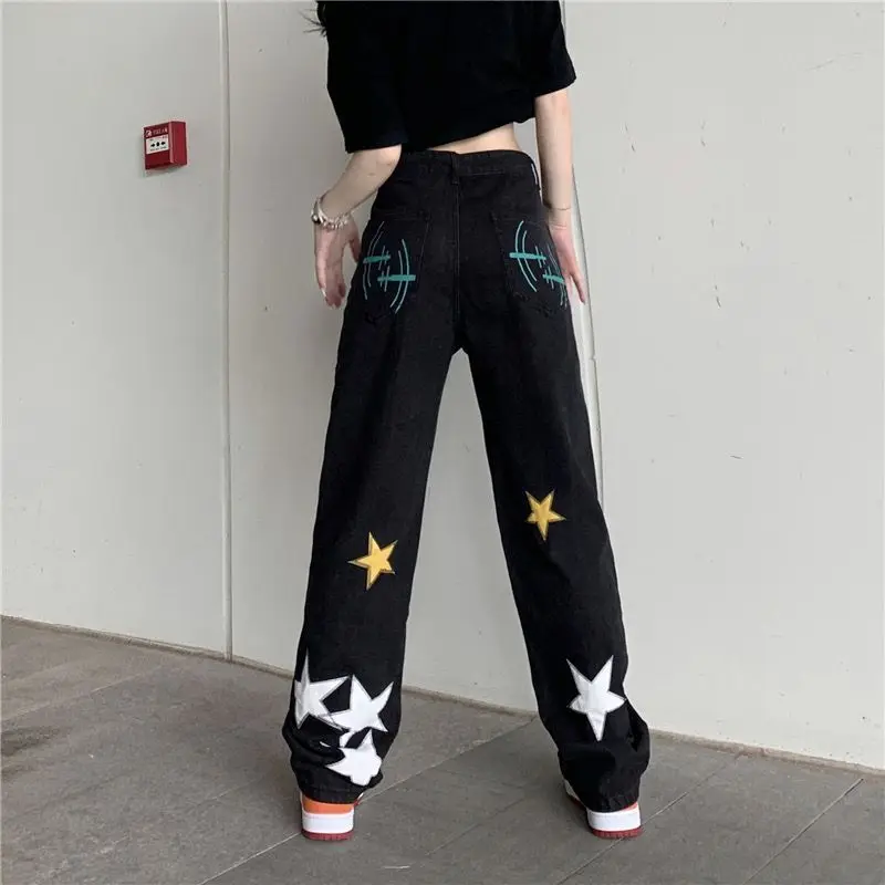 Purpdrank Hip Hop Vintage Women Jeans Spring Autumn New Star High Waist Harajuku Streetwear Fashion Casual Loose Wide Leg Denim Trousers