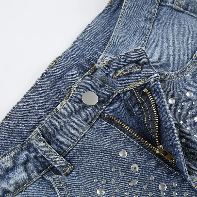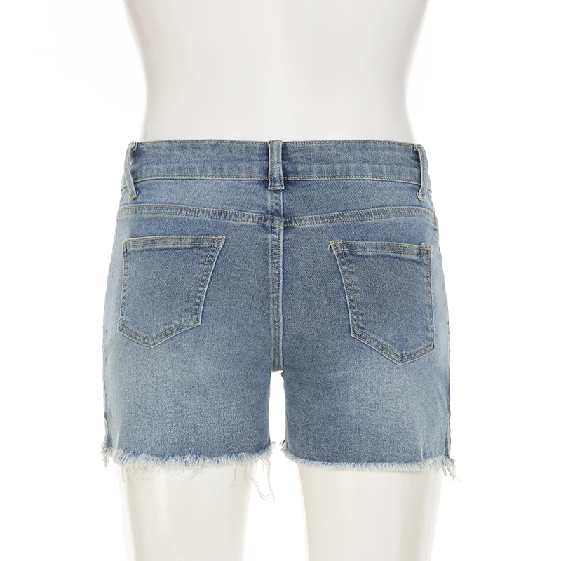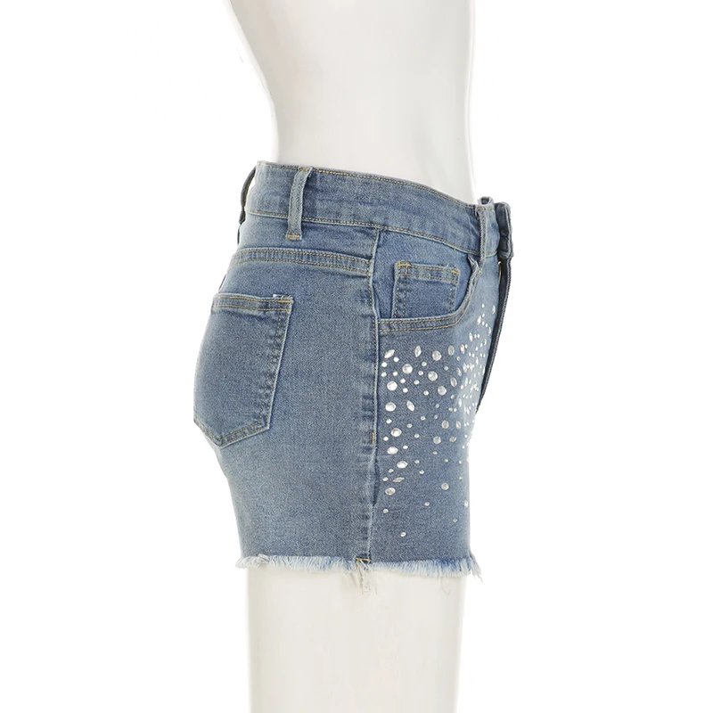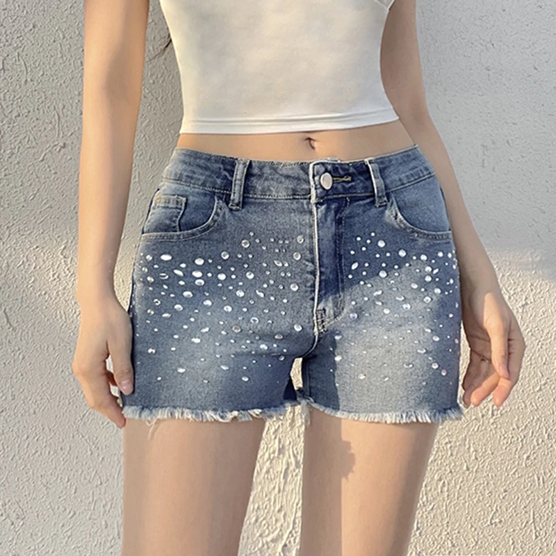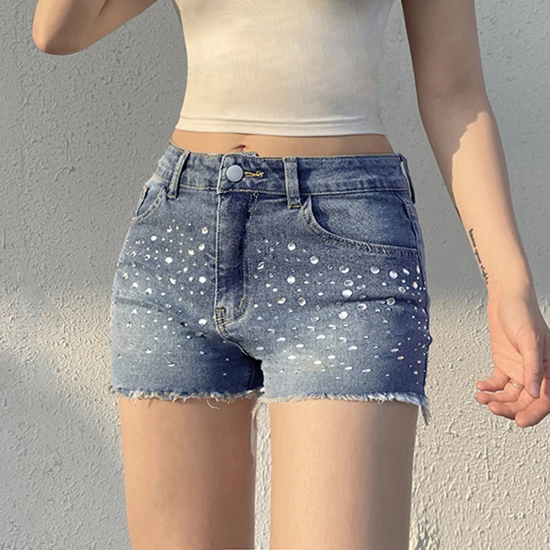 Purpdrank y2k Rhinestone Denim Shorts Summer Casual Low Rise Skinny Short Jeans for Women Streetwear All-match Shorts Harajuku 90s