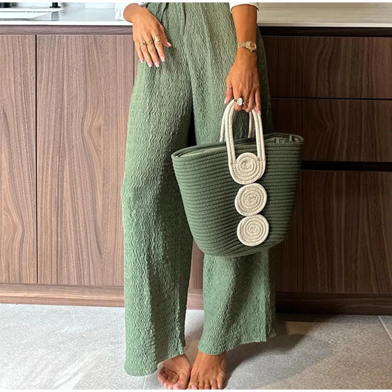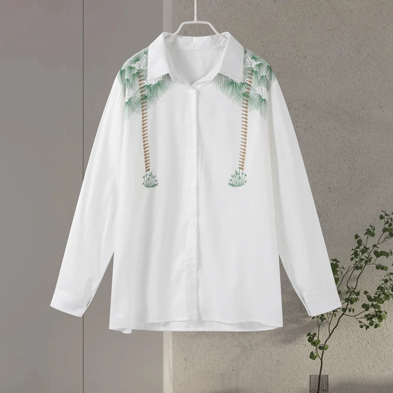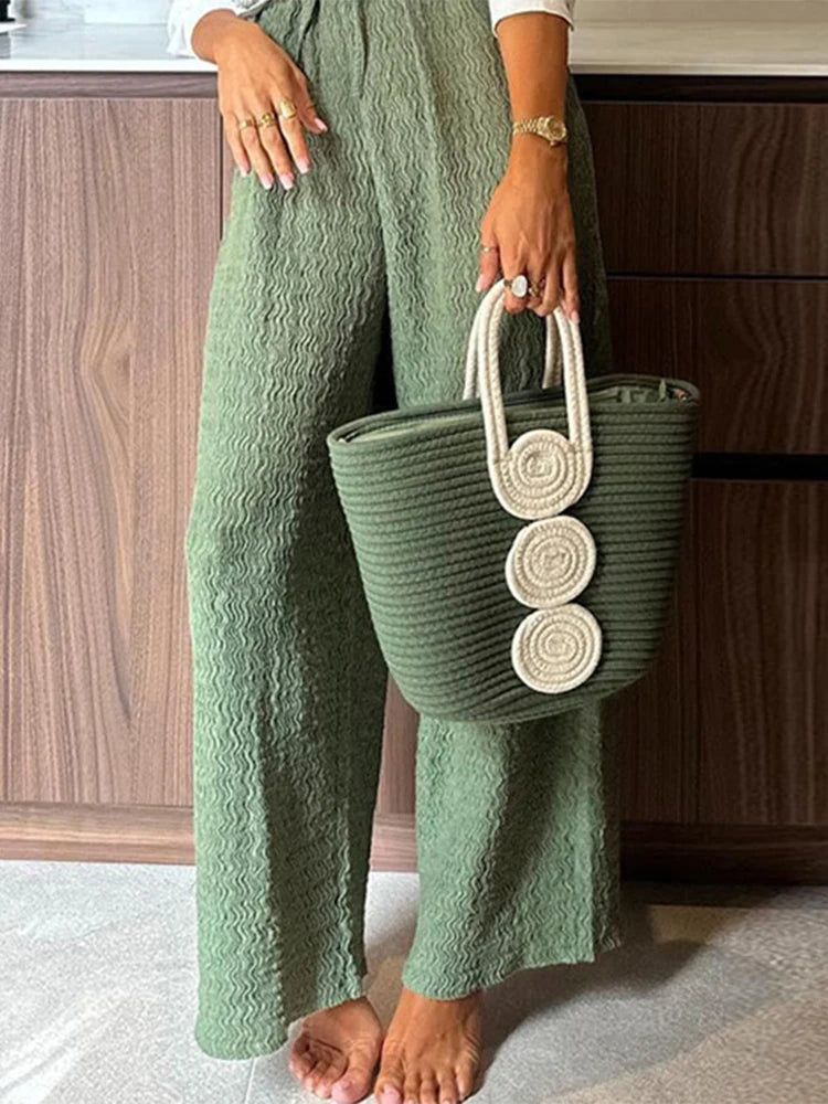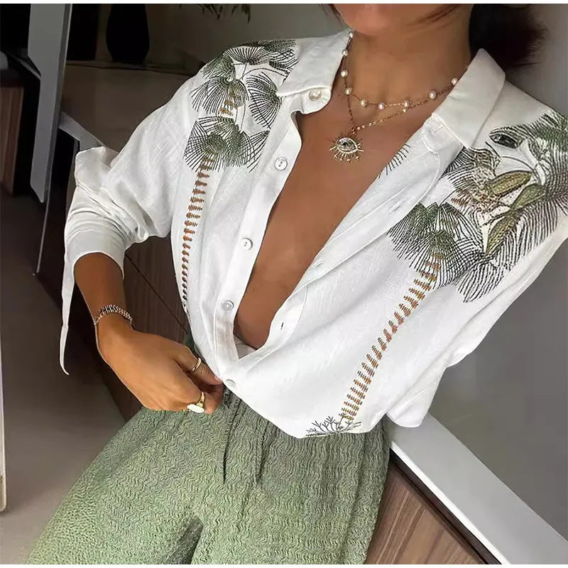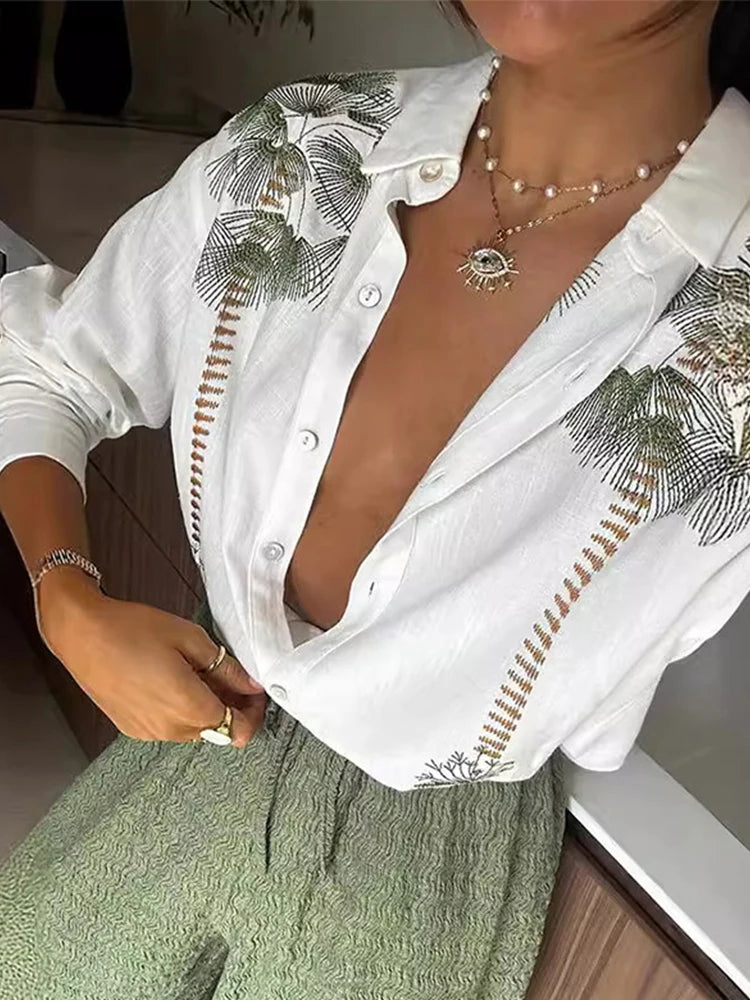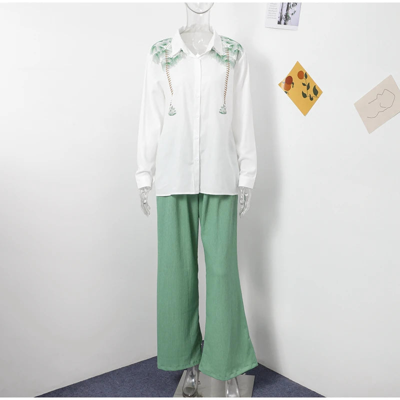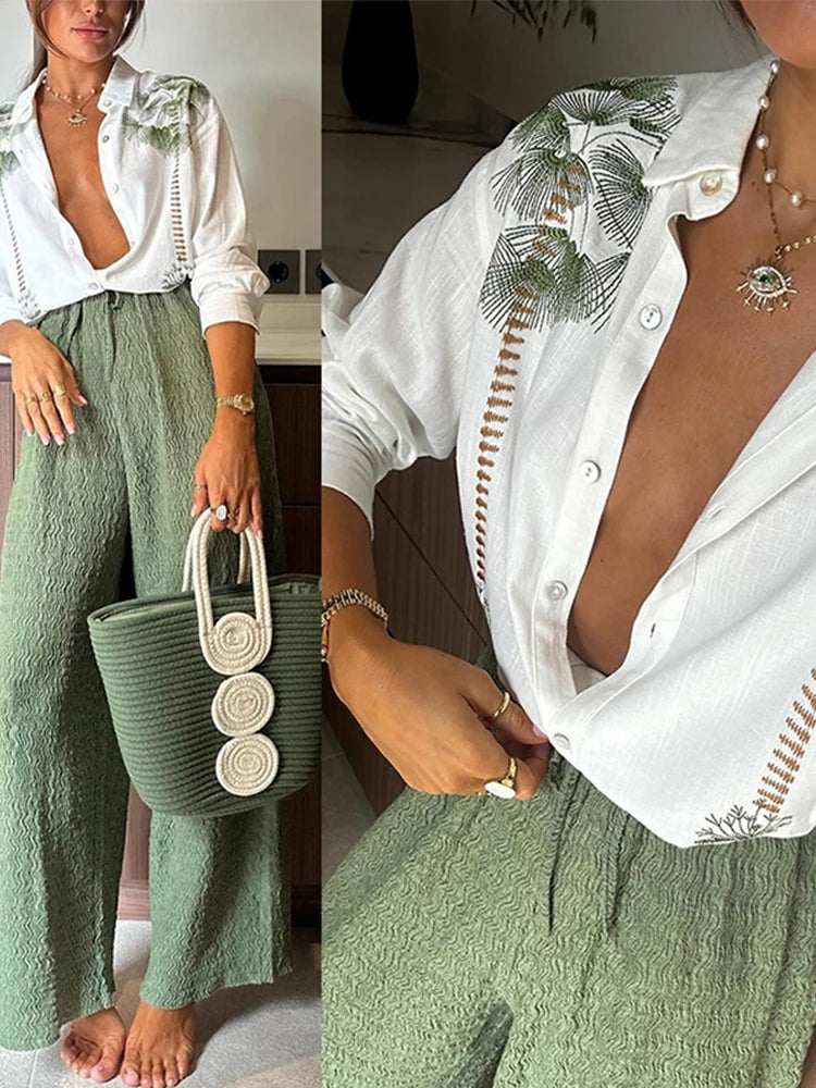 Purpdrank Casual Print Pants Sets Women Loose Lapel Single Breasted Long Sleeve Shirts Solid Wide Leg Pant 2025 Summer Lady Elegant Outfit