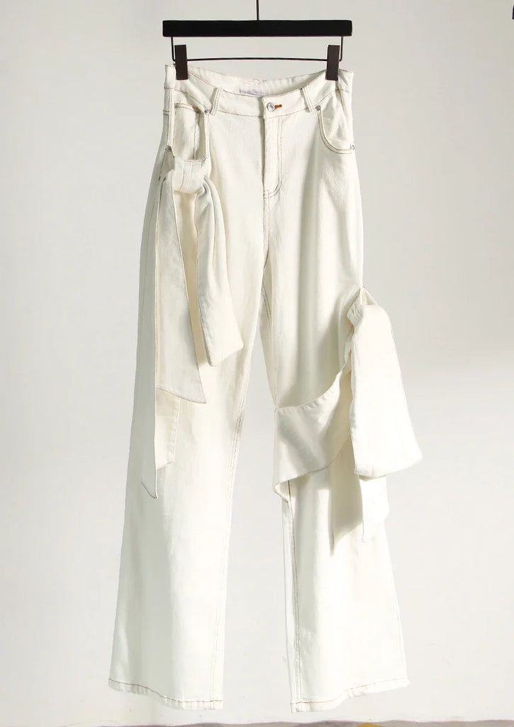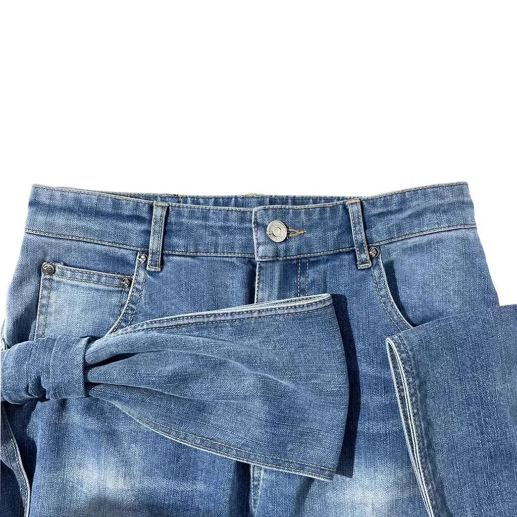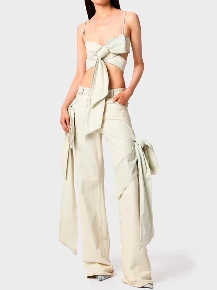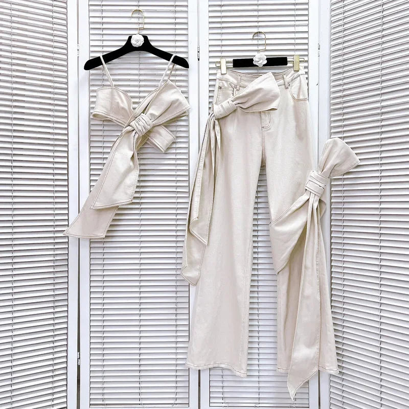 Purpdrank Sexy Bowknot Vintage Denim Two Piece Women Pants Outfit 2025 Fashion Strapless Cropped Top and Wige Leg Straight Jeans Pant Sets