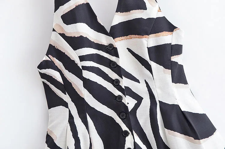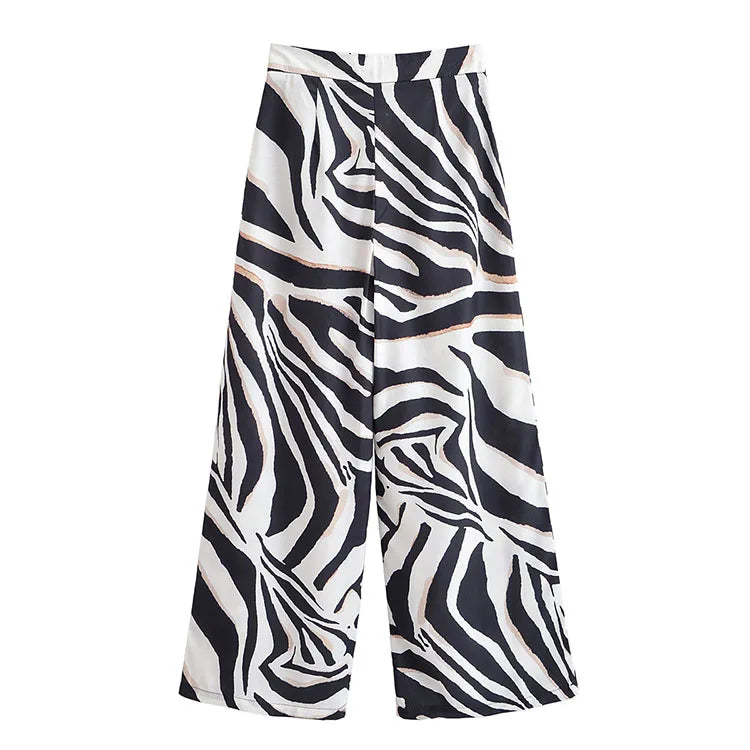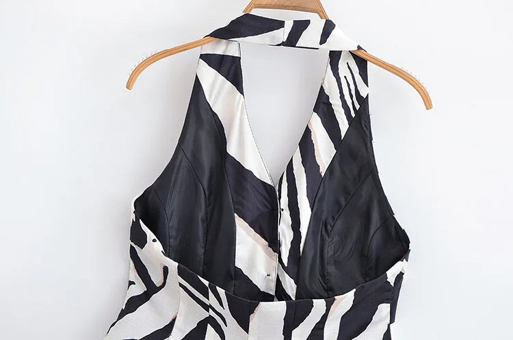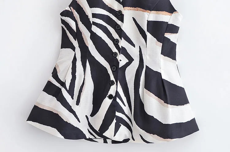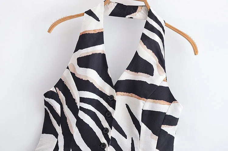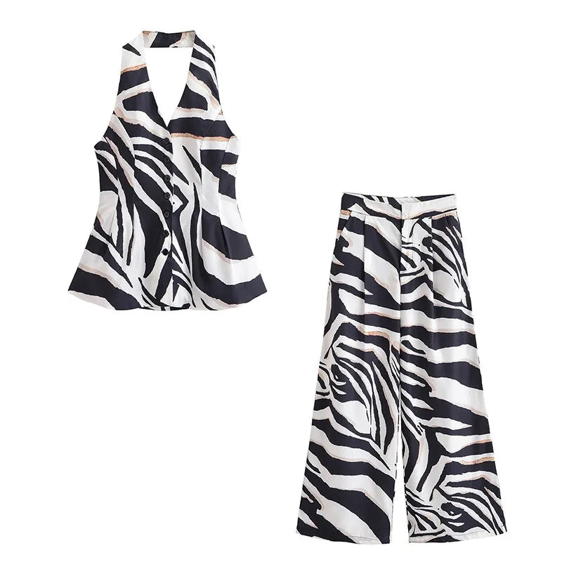Purpdrank Striped Prints Pants Set Women 2 Piece Spring BacklessWaistcoat With Button Wide Leg Casual Trousers Women Outfit