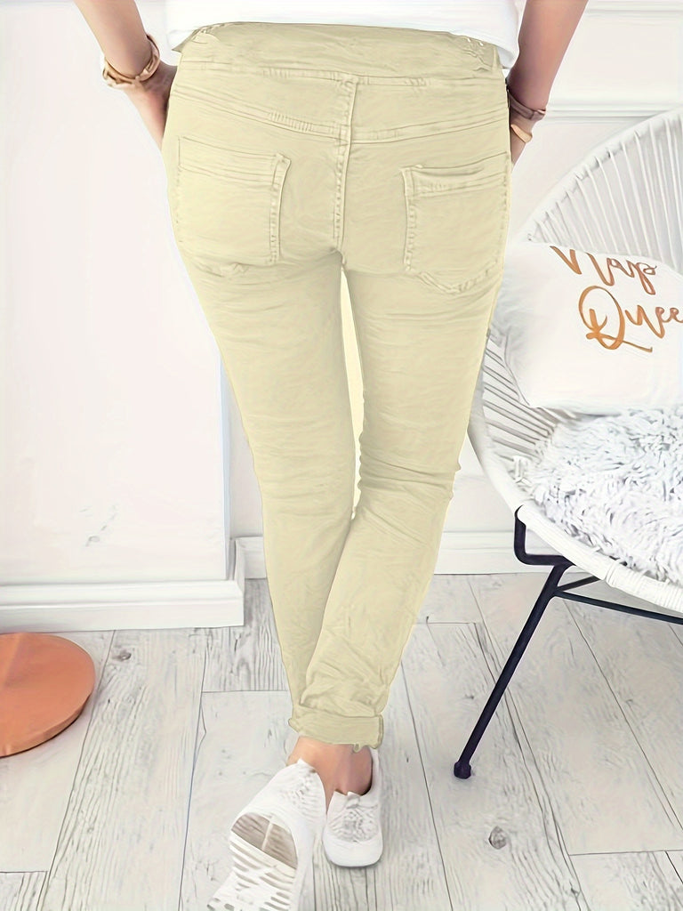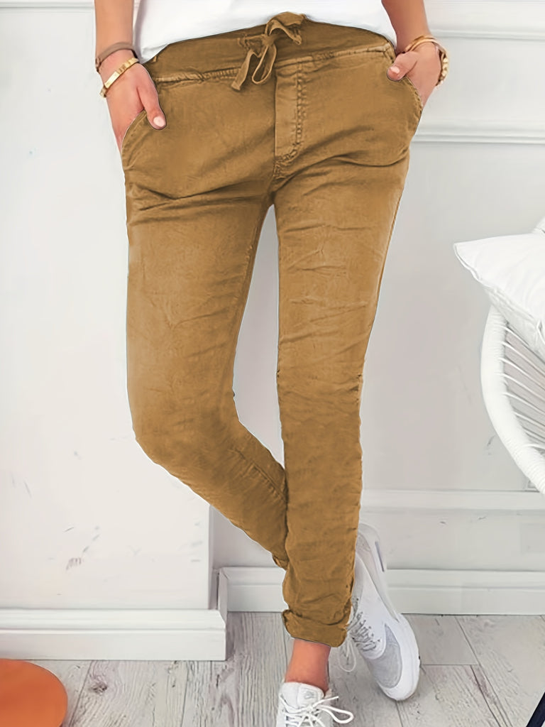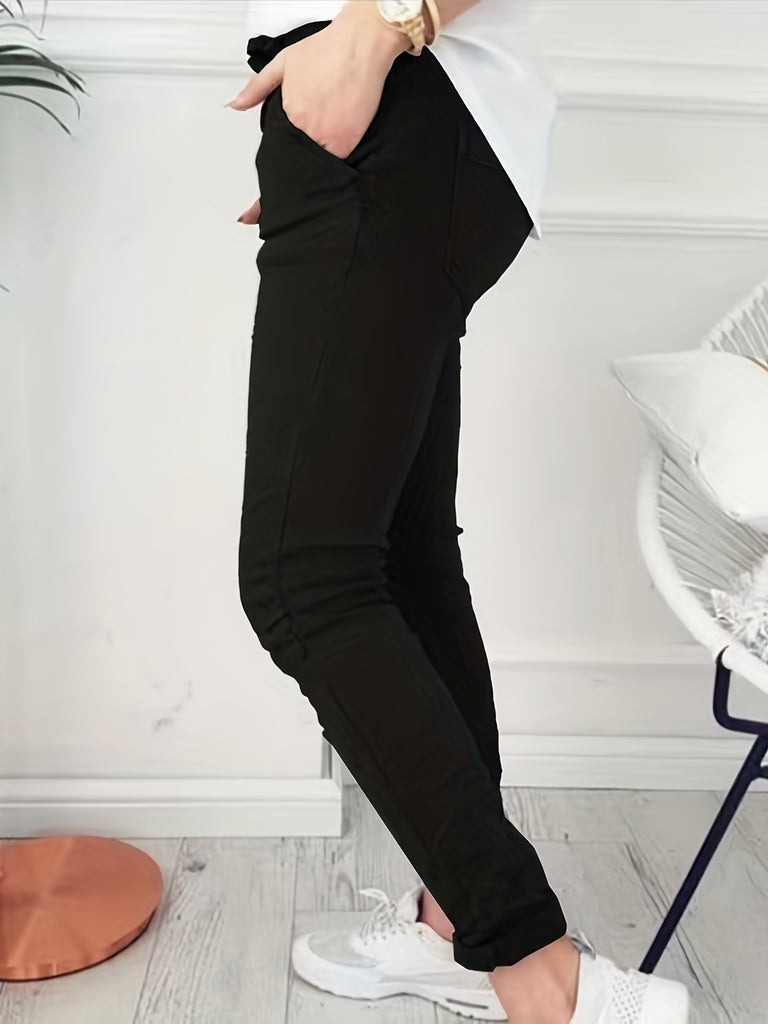 Long Length Drawstring Pants, Casual Solid Women's Clothing With Pockets