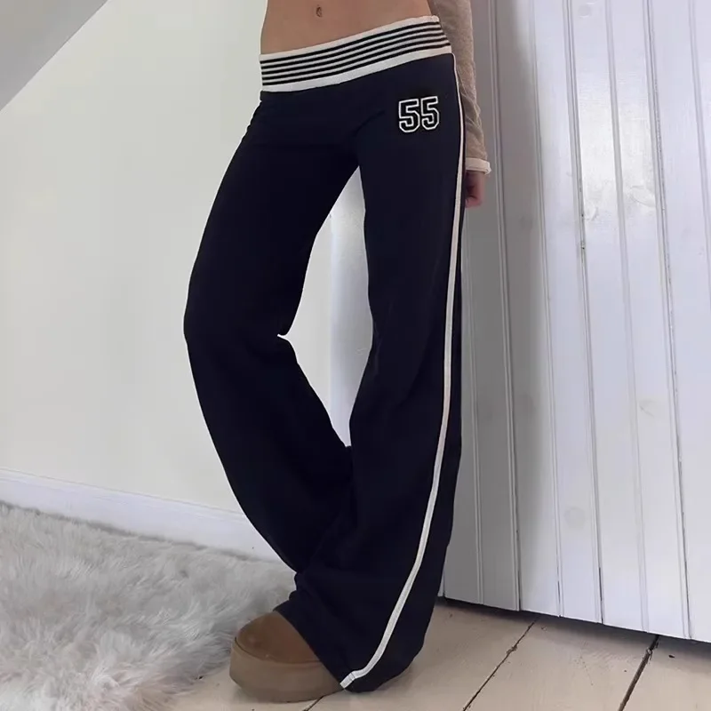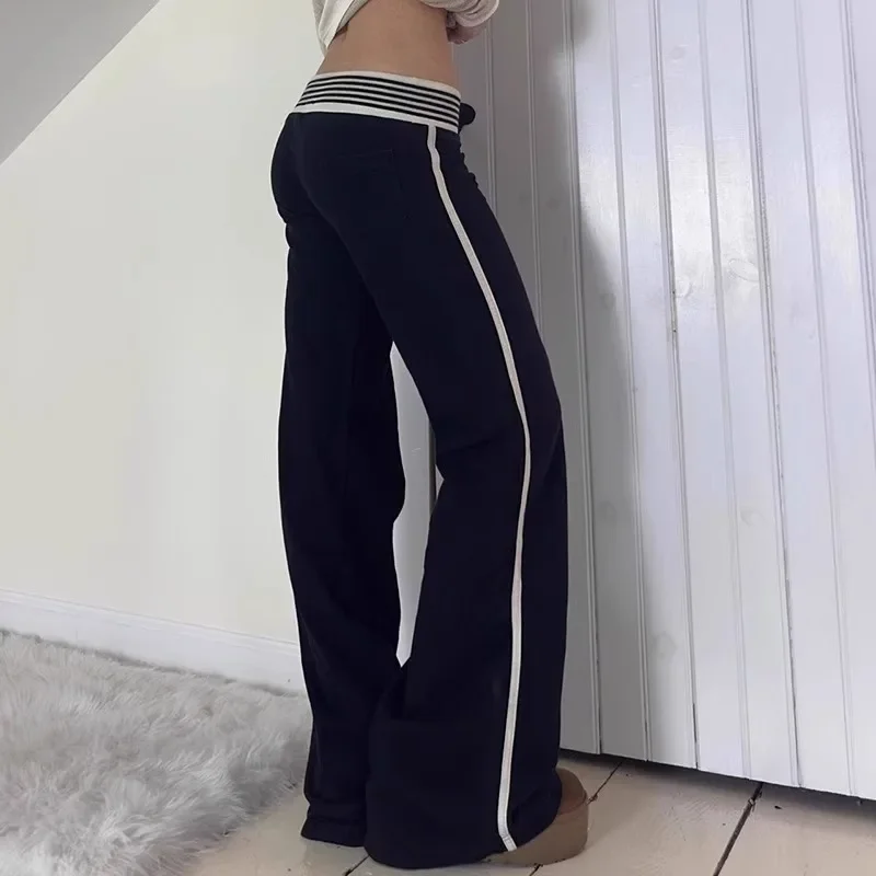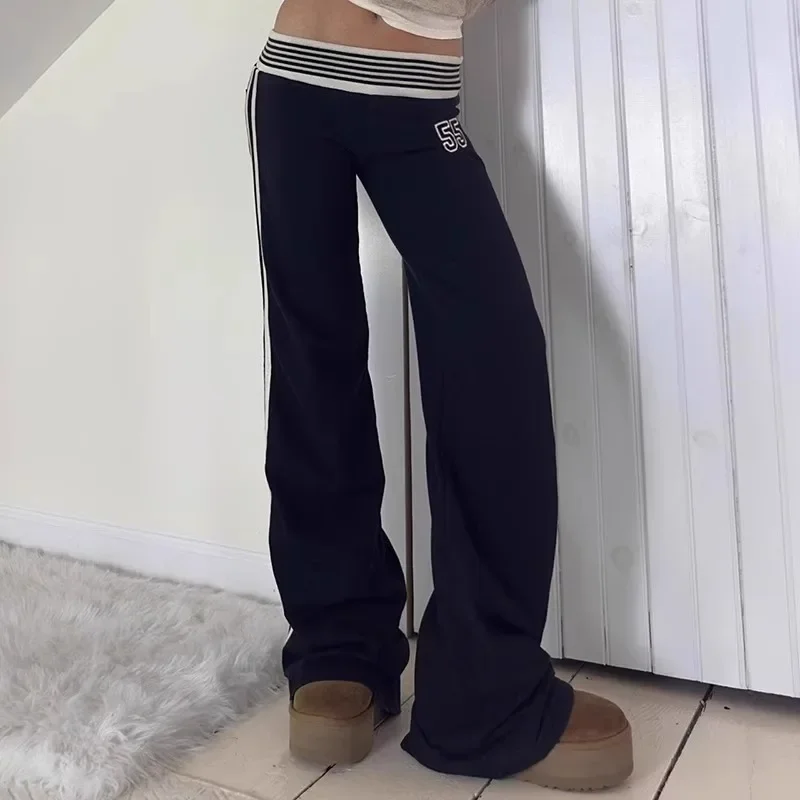 Purpdrank American Casual Striped Waist Knitted Pants Straight Leg Sports Versatile Slimming Digital Print Sweatpants for Women