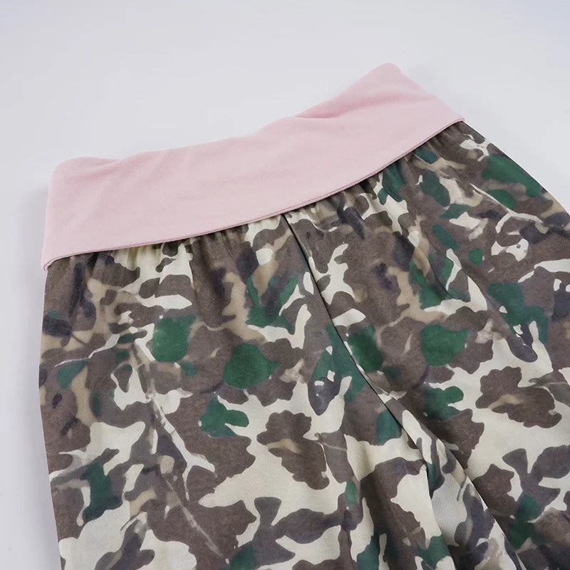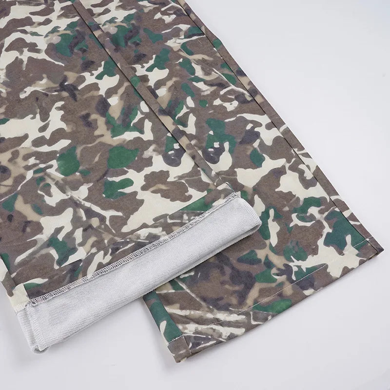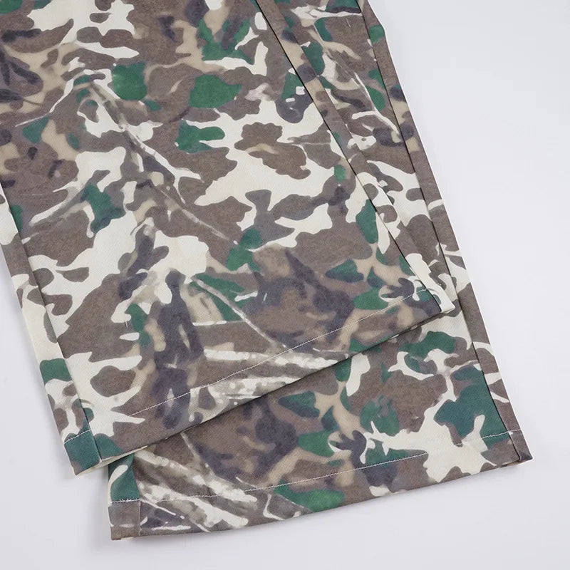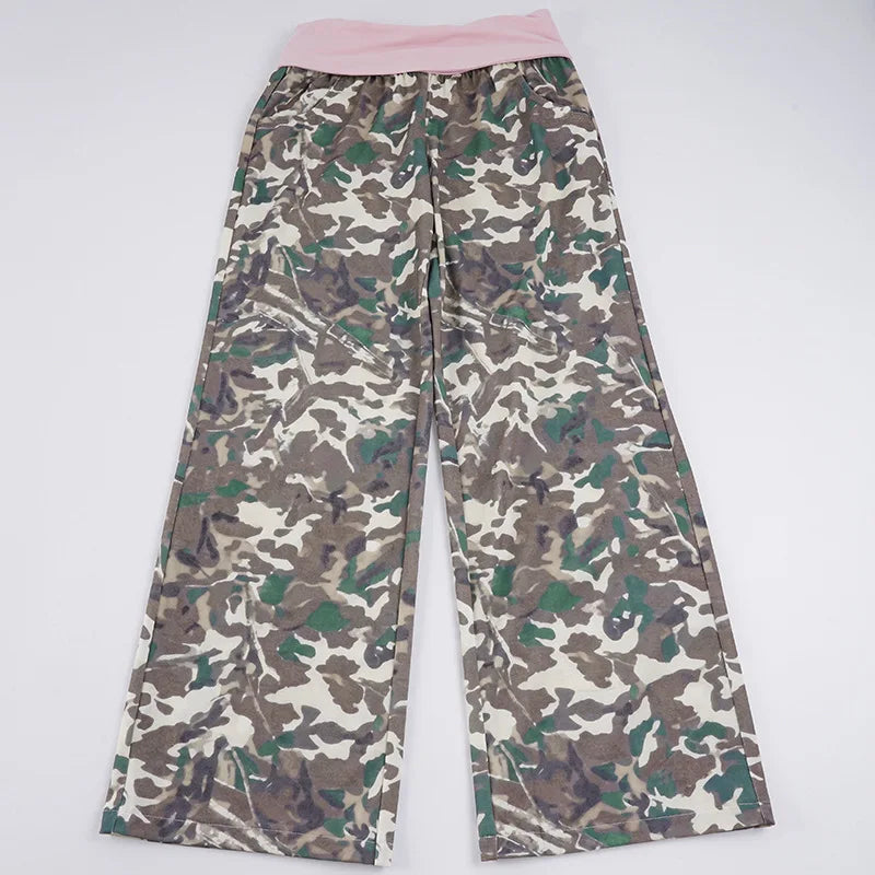 Purpdrank  American Retro Camouflage Print Wide Leg Pants Women's Color Match Loose Straight Casual Streetwear Trousers with Pockets
