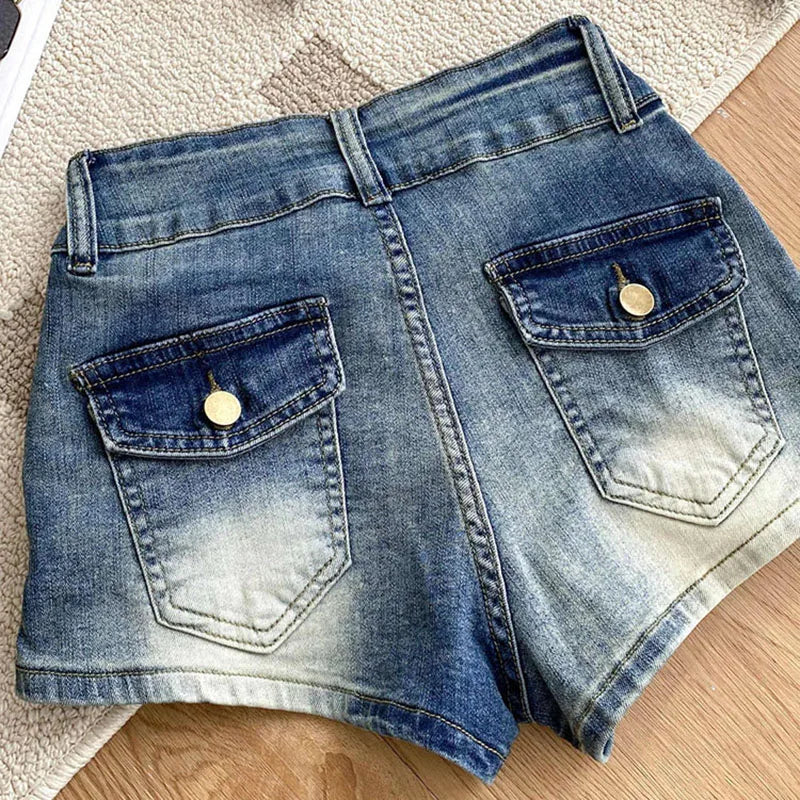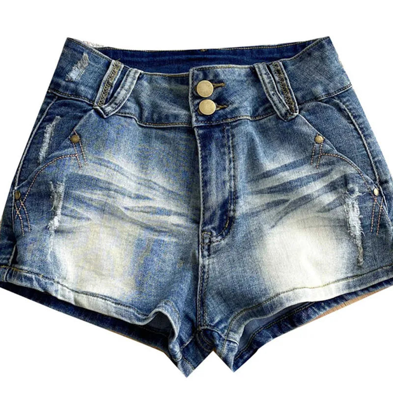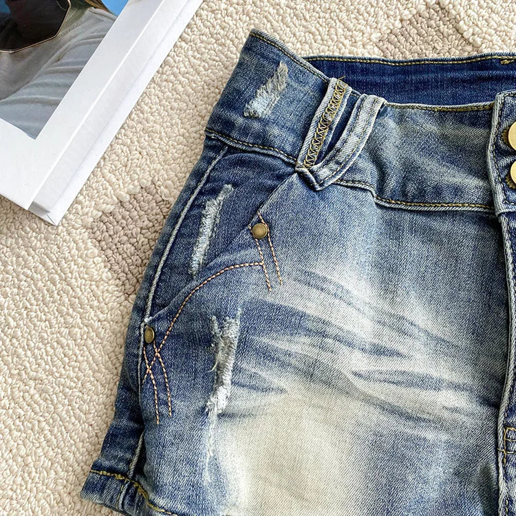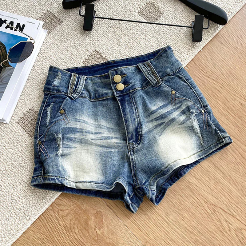 Purpdrank American Retro Denim Shorts For Women Summer New Casual Ripped Tight Hot Pants Fashion Washed Distressed Hot Girls Shorts