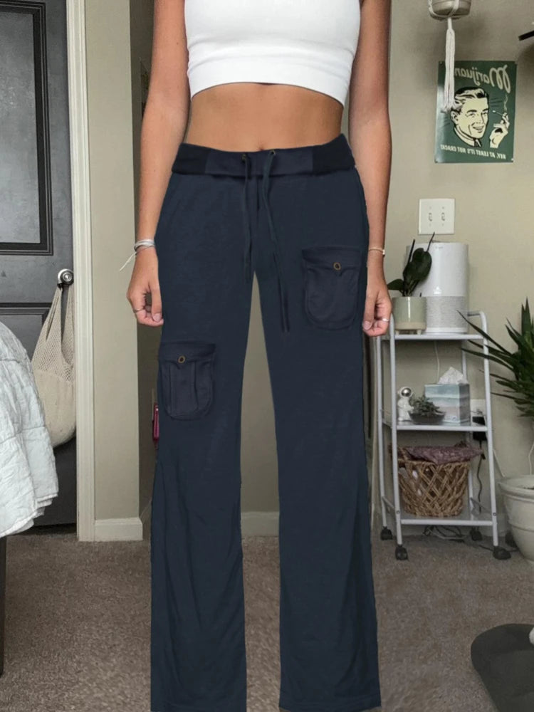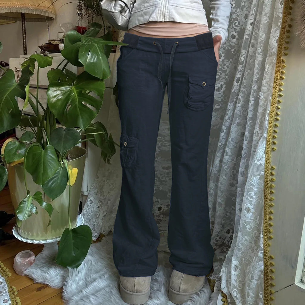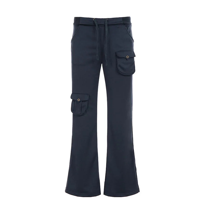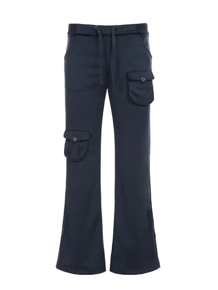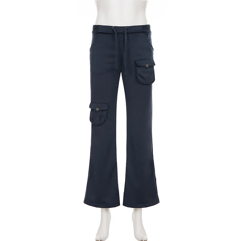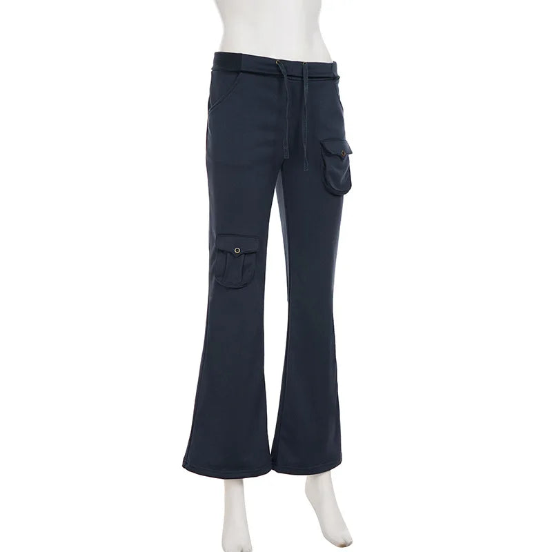 Purpdrank American Retro Slight Strech Low Waist Pockets Slim Solid FLARE PANTS