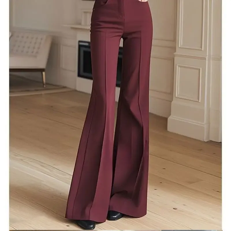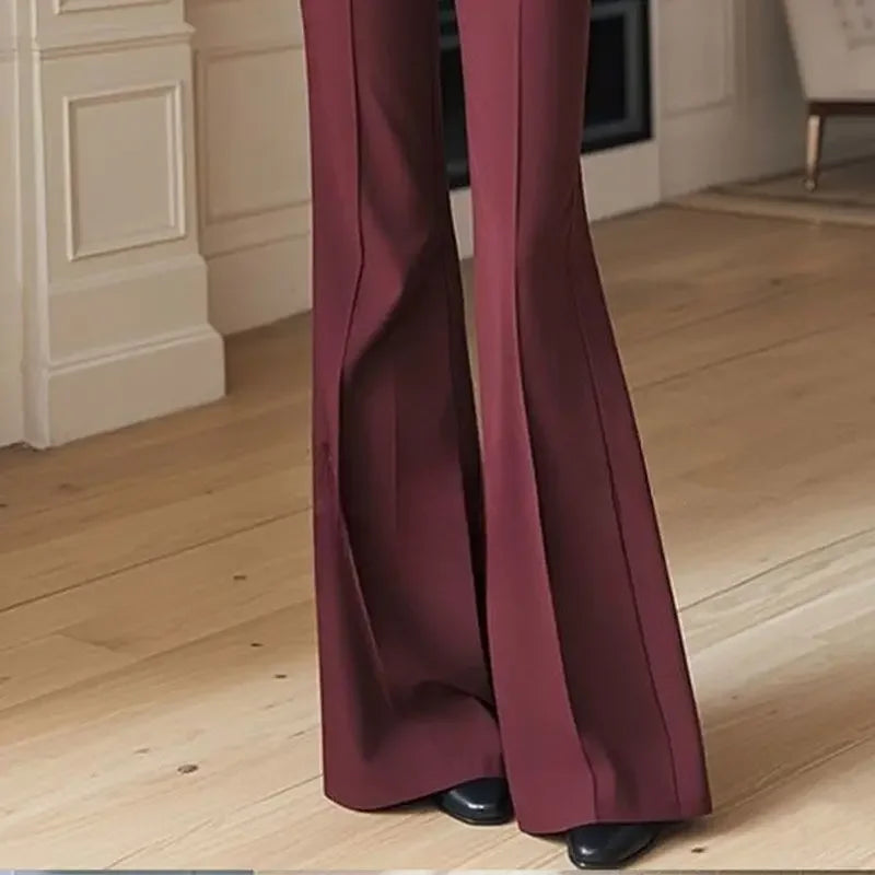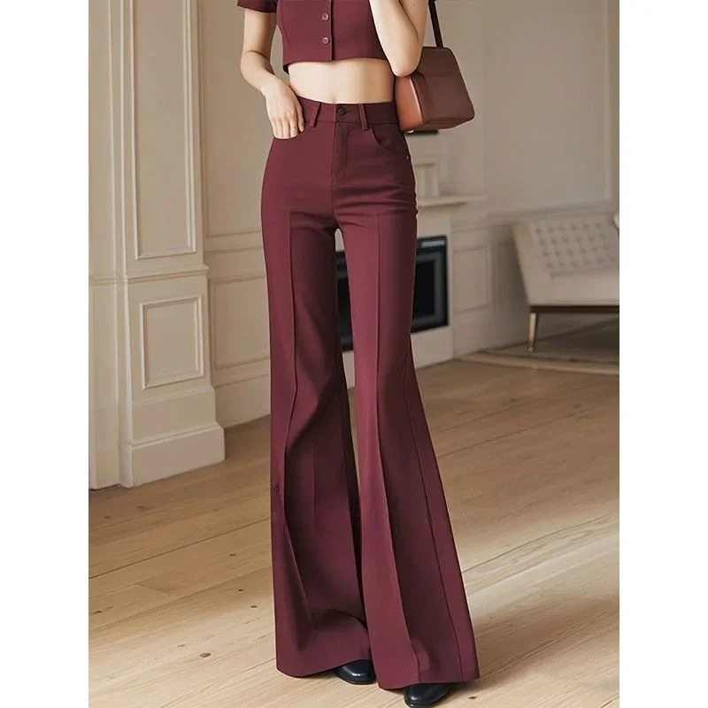 Purpdrank Ankela Red High Waist Wide Leg Pants Women's Loose Lazy Style Trousers Straight Cut Slimming Effect Autumn Fashion Long Pants