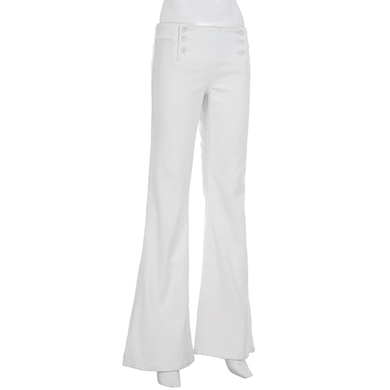 Purpdrank Basic Slim-Fitting Flare Jeans Elastic Stretch Solid Button Low-Waisted Pants Women Autumn Spring Fashion Streetwear Ladies