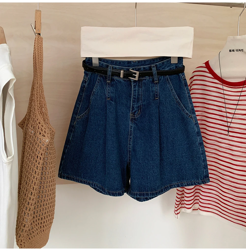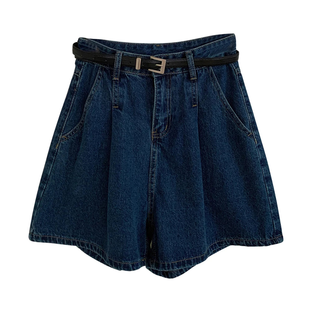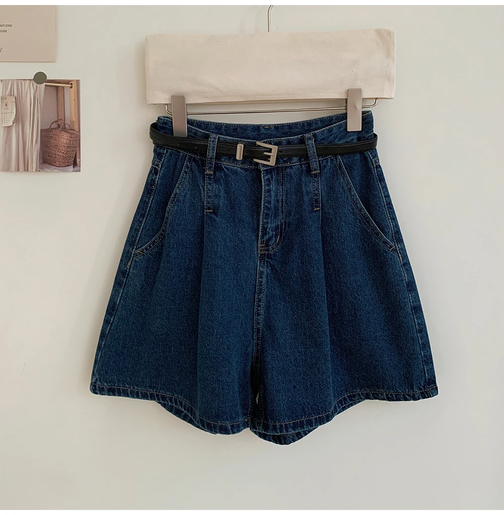 Purpdrank Dark Blue Pleated Denim Shorts for Women 2025 New Summer High Waist Thin Wide Leg Jeans Shorts Casual Loose A-line Hot Pants