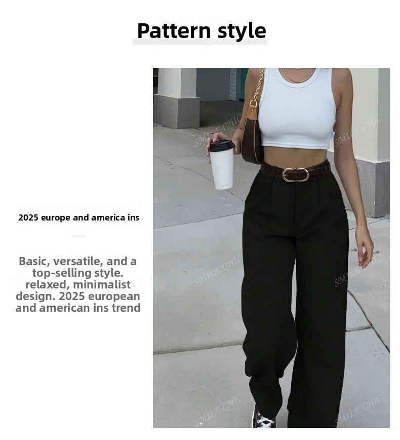 Purpdrank High Waist Wide Leg Pants Slimming Suit Drape Comfortable Casual Trousers Polyester Fiber High Waist Long Pants Comfortable