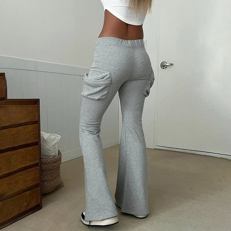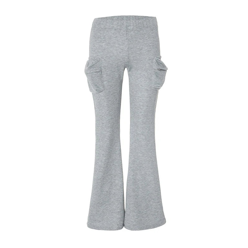 Purpdrank Hottie Girl Gray Casual Chic Pockets With Zipper Patchwork Elastic Waisted Skinny Flare Pants High Street Outfit Sweatpants