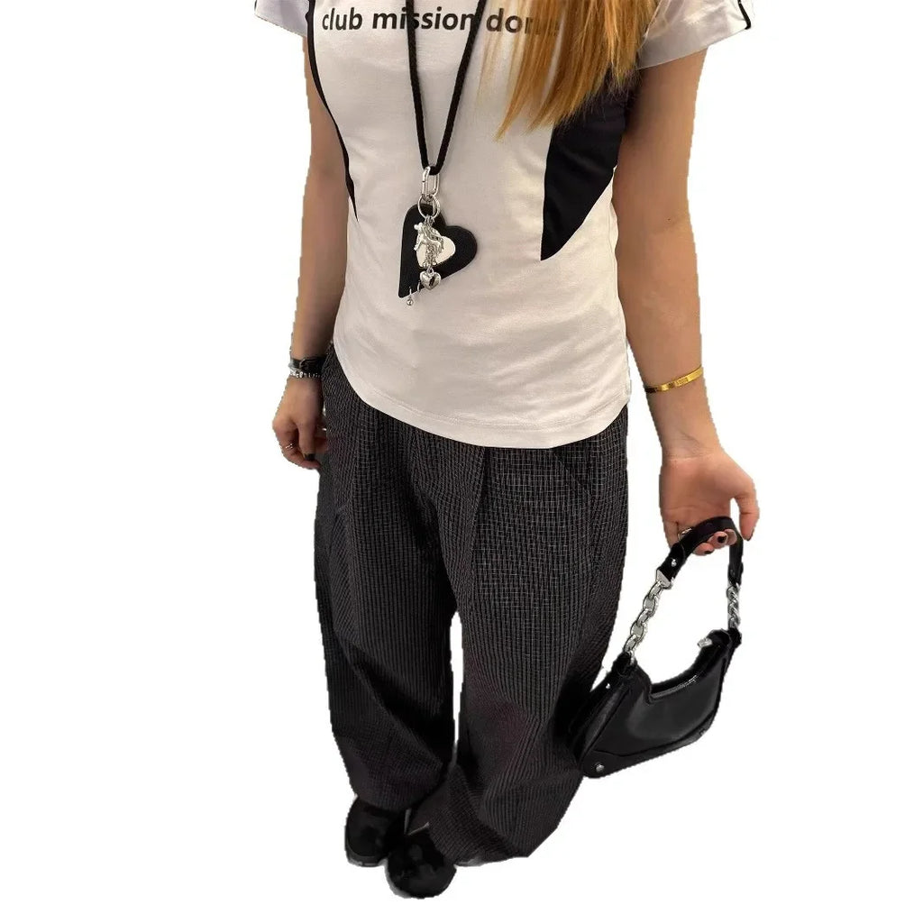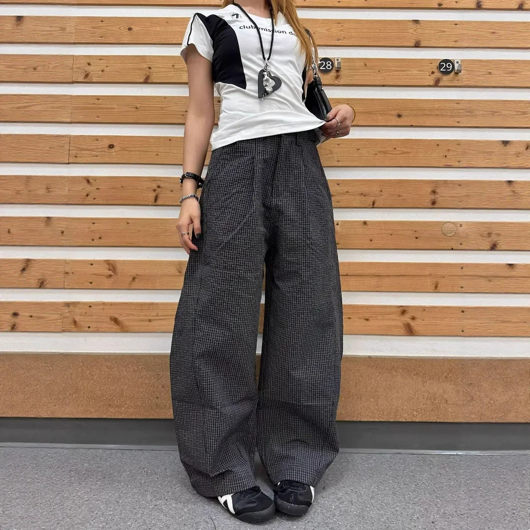 Purpdrank Lightweight Plaid Wide Leg Pants Women's Bubble Cloth Pants Summer Casual Trousers Cleanfit Knife Edge Patterned Trousers