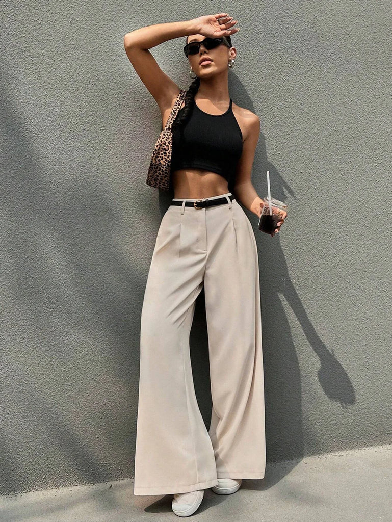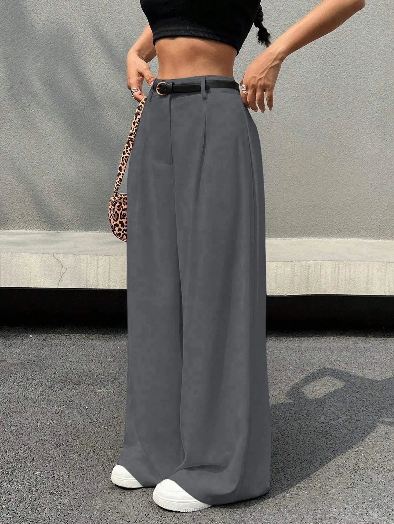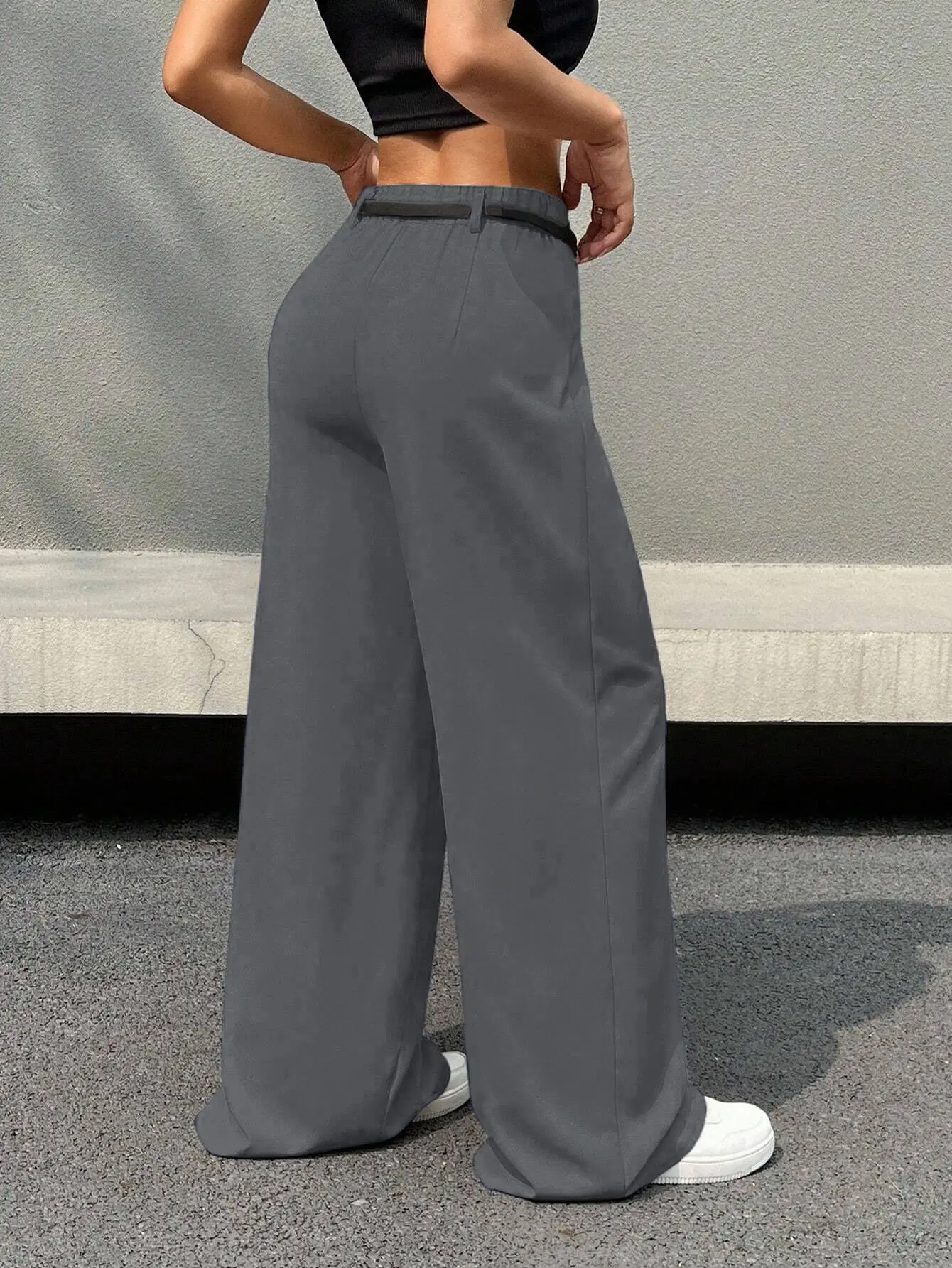 Purpdrank Low Waist Wide Leg Suit Pants for Women American Loose Style Autumn Slimming Straight Casual Trousers Polyester Fabric