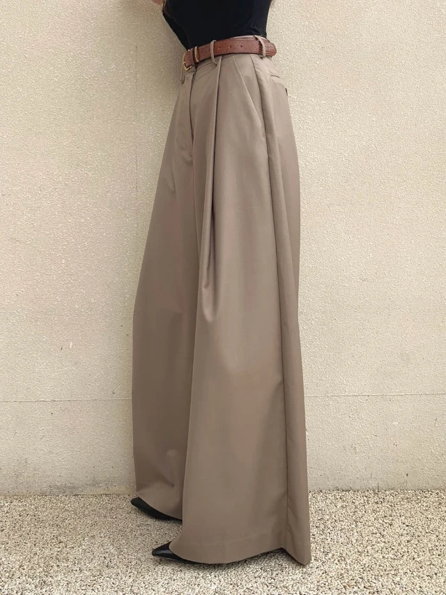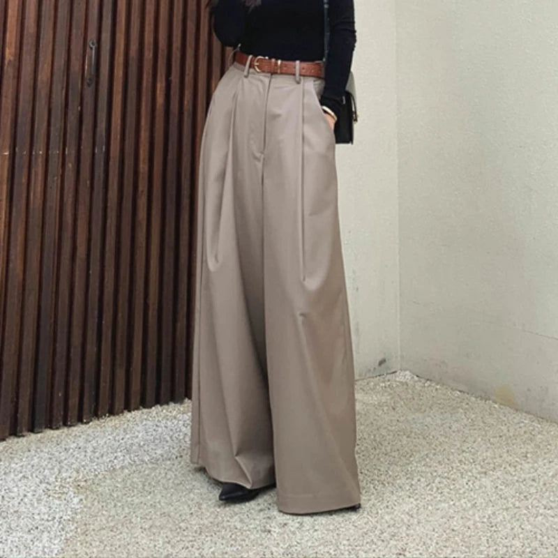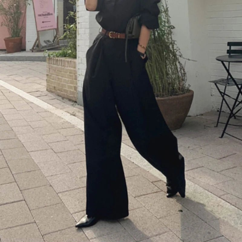 Purpdrank Spring Elegant Women's Wide Leg Pants 2025 New High Waist Solid Korean Casual Loose Trousers Pockets Female