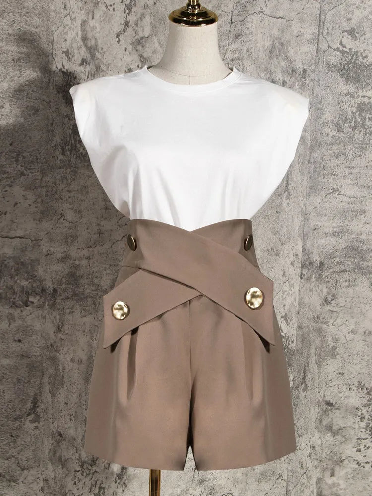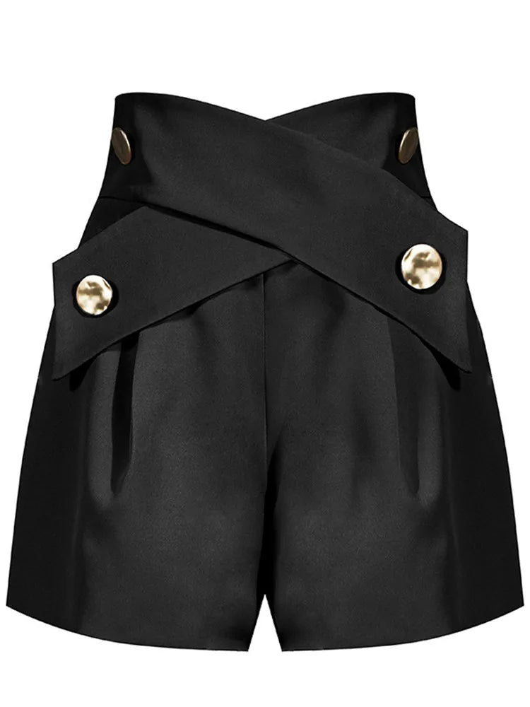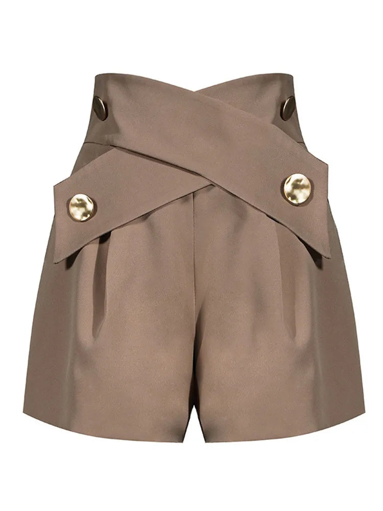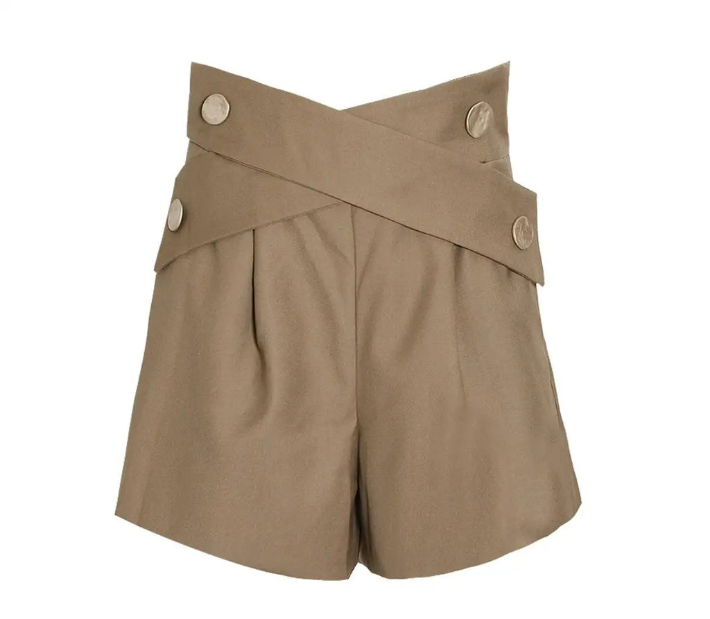 Purpdrank Summer High Waist Shorts Cross Bandage Buttons Decoration Loose Wide Leg Casual Short Pants Khaki